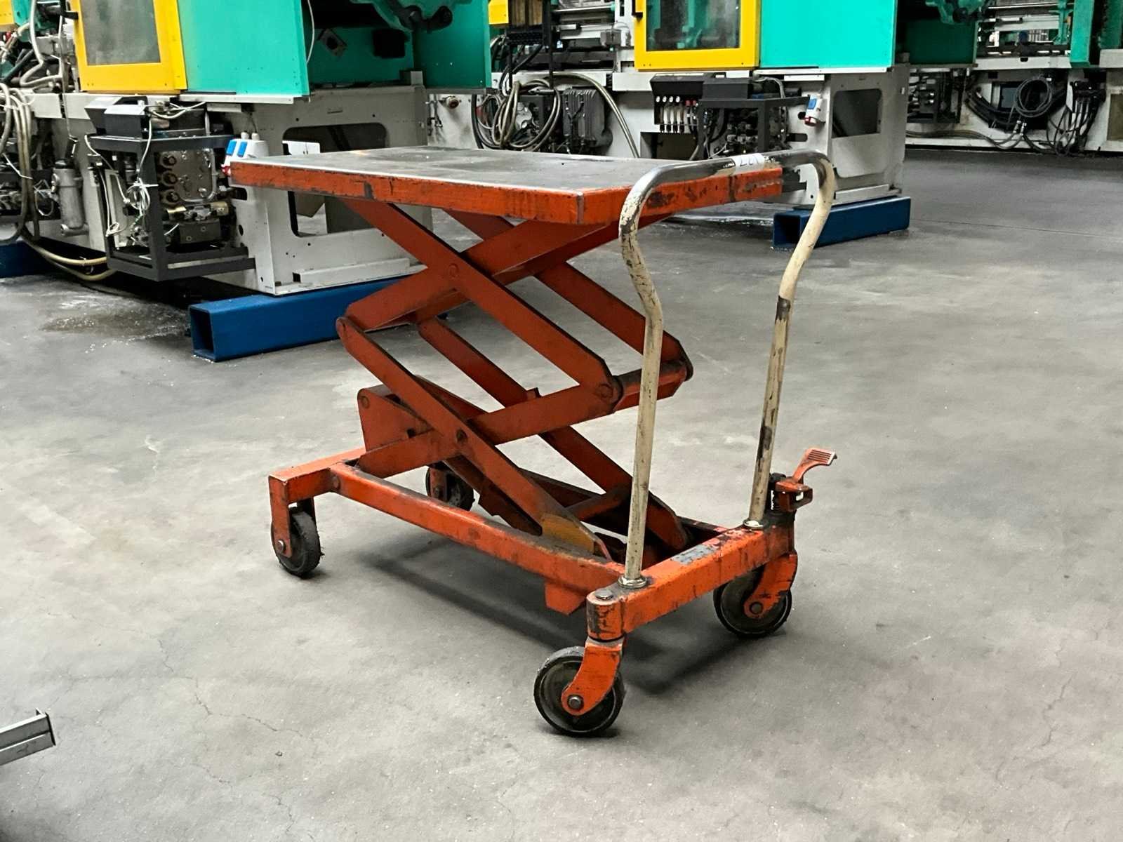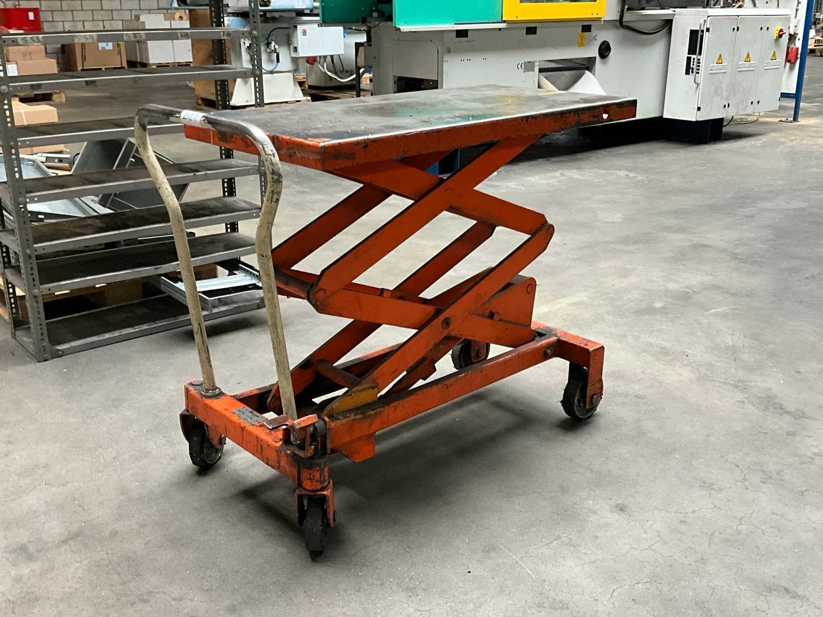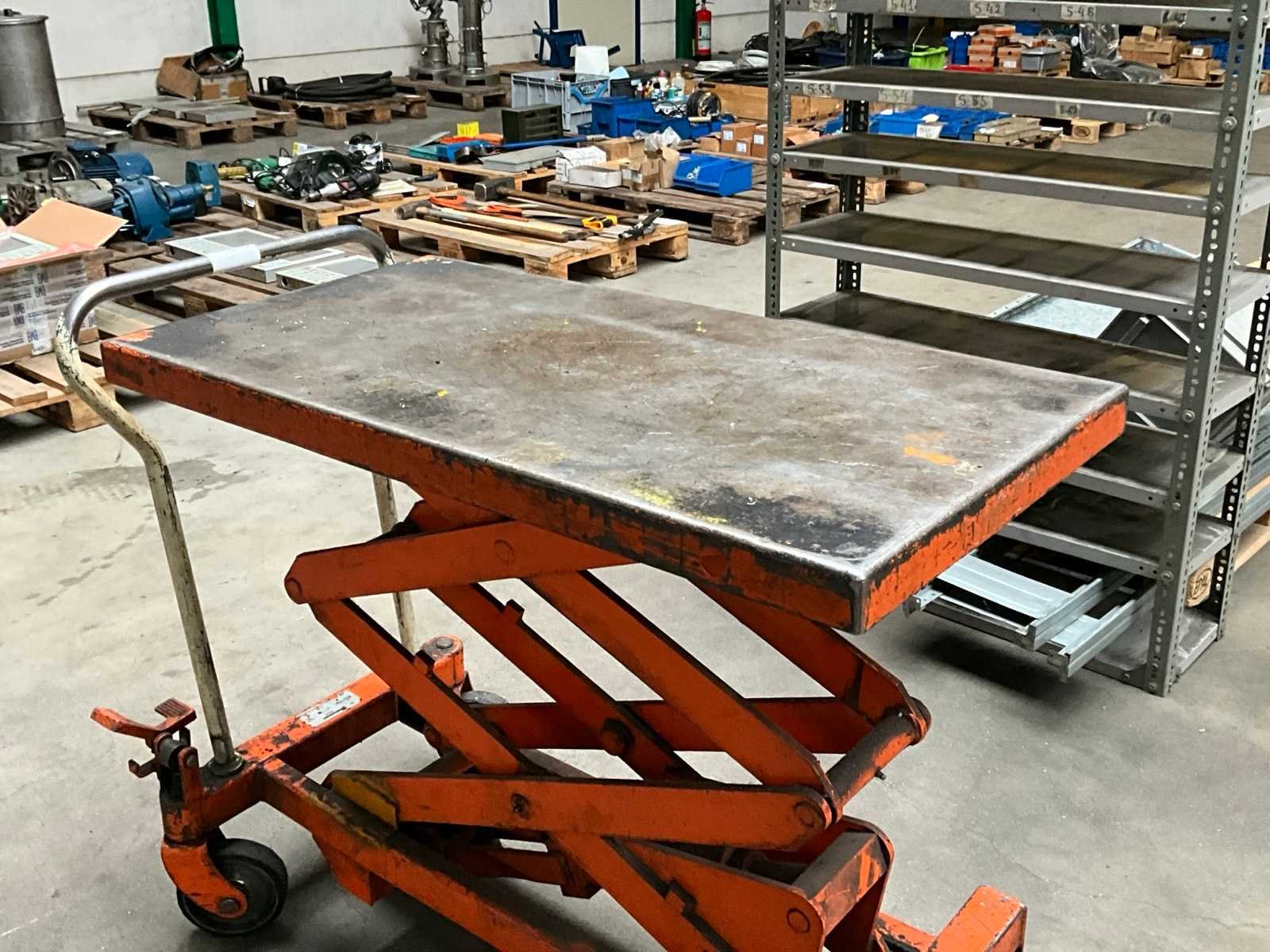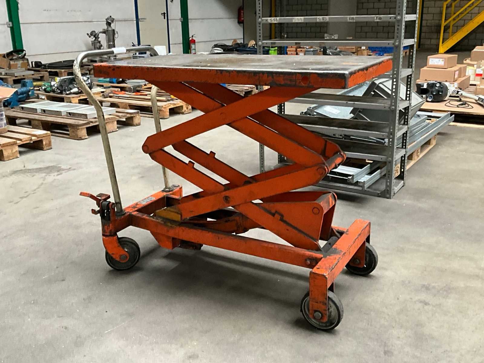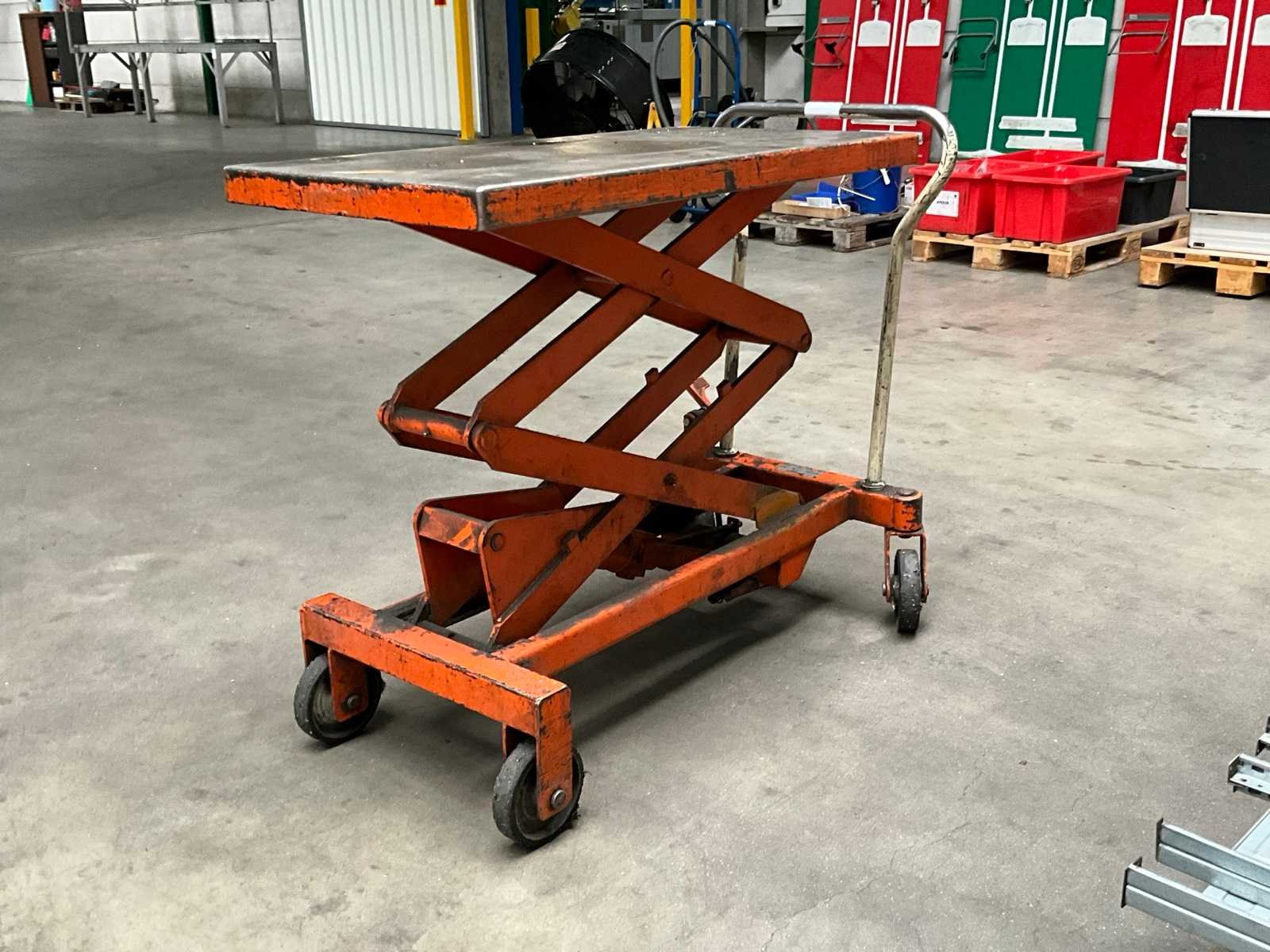 Verrijdbaar; tafel afmeting 1010x520 mm; maximale hefhoogte circa 900 mm; voorzien van duwbeugel; Merk: Bishamon Type: BX20S Bouwjaar: 2004 Hijsvermogen: 300kg