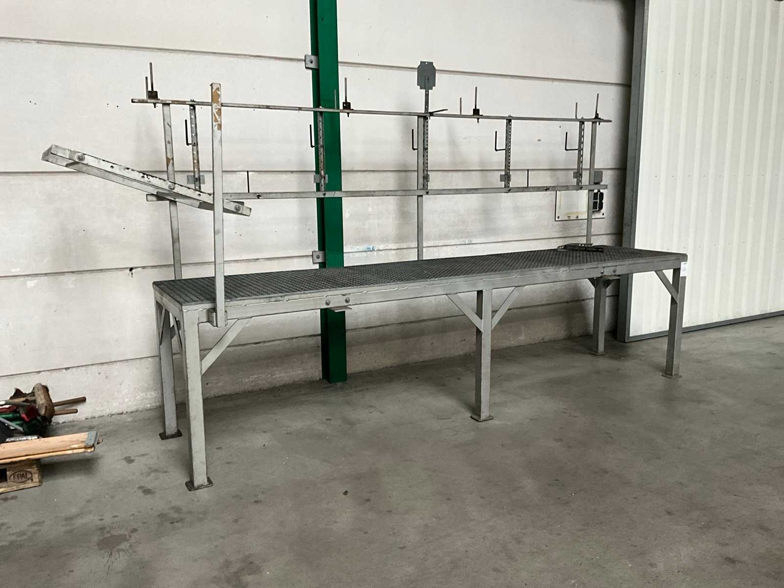 Profielstaal onderstel; gegalvaniseerd staal roostervloer; opstaande achterwand / leuning; Totale afmeting L: 4000mm Totale afmeting Breedte: 1000mm Totale afmeting Hoogte: 2350mm