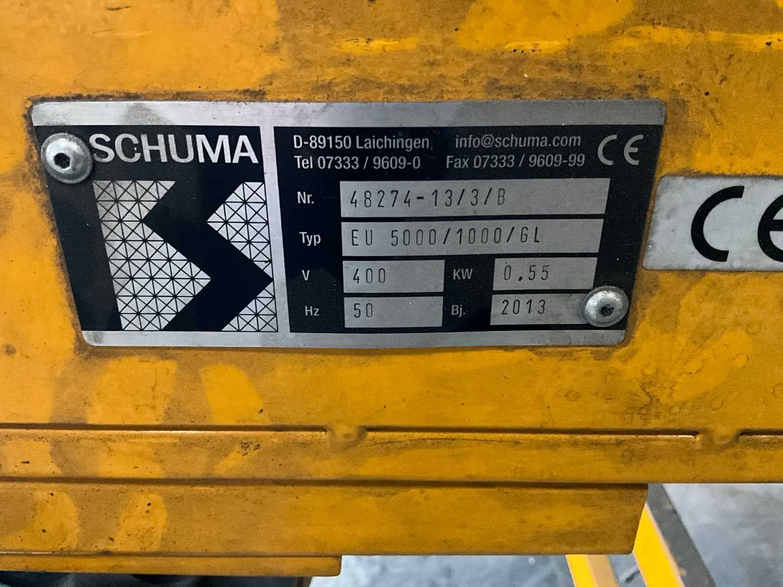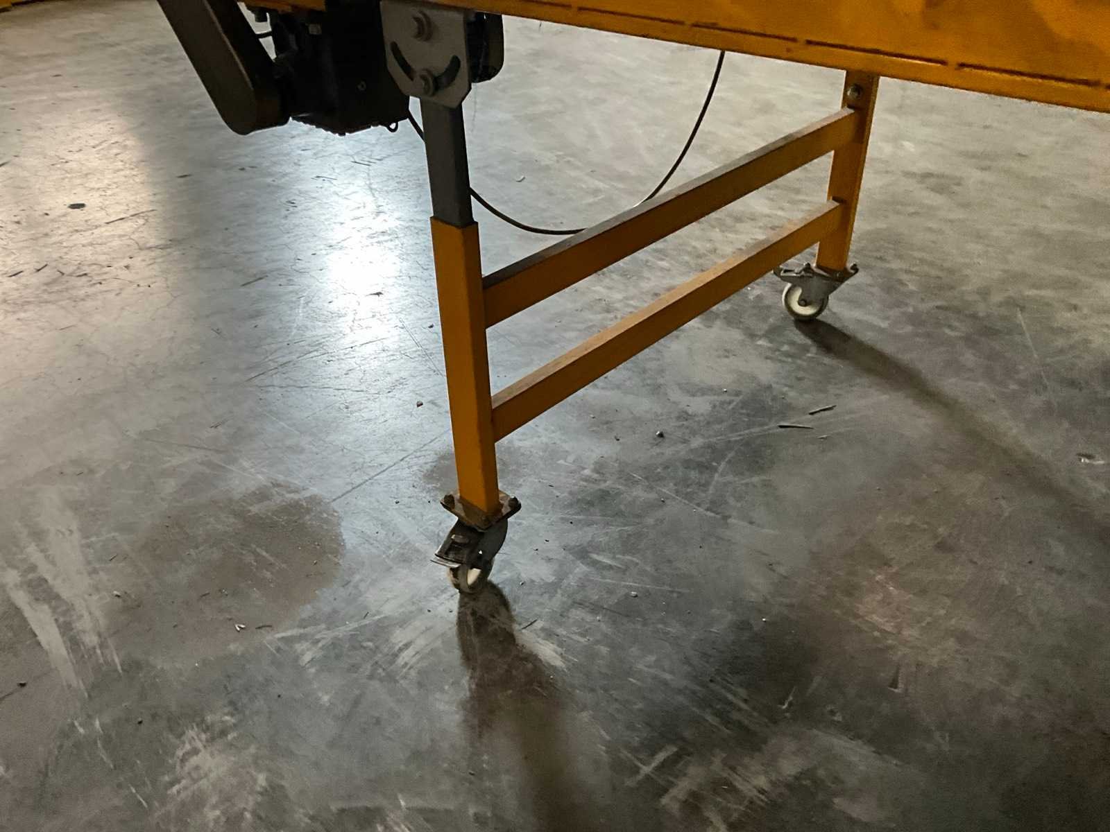 Voorzien van zwenkwielen, hoogte verstelbaar Merk: Schuma Type: EU 5000/1000/GL Bouwjaar: 2013 Band afm. b: 1000mm Band afm. l: 5000mm Elektrisch aangedreven: true Aansluiting: 400V Totale afmeting Hoogte: 950mm