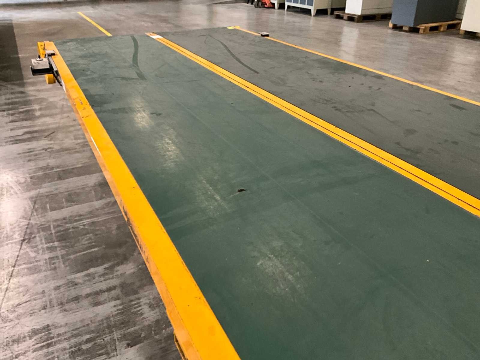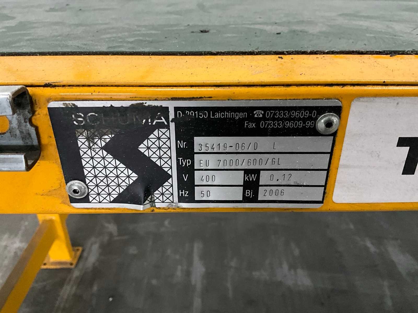 Voorzien van 2x spoor 7000x600 mm, Merk: Schuma Type: EU 7000/600/GL Bouwjaar: 2006 Band afm. b: 600mm Band afm. l: 7000mm Elektrisch aangedreven: true Aansluiting: 400V Totale afmeting Hoogte: 750mm