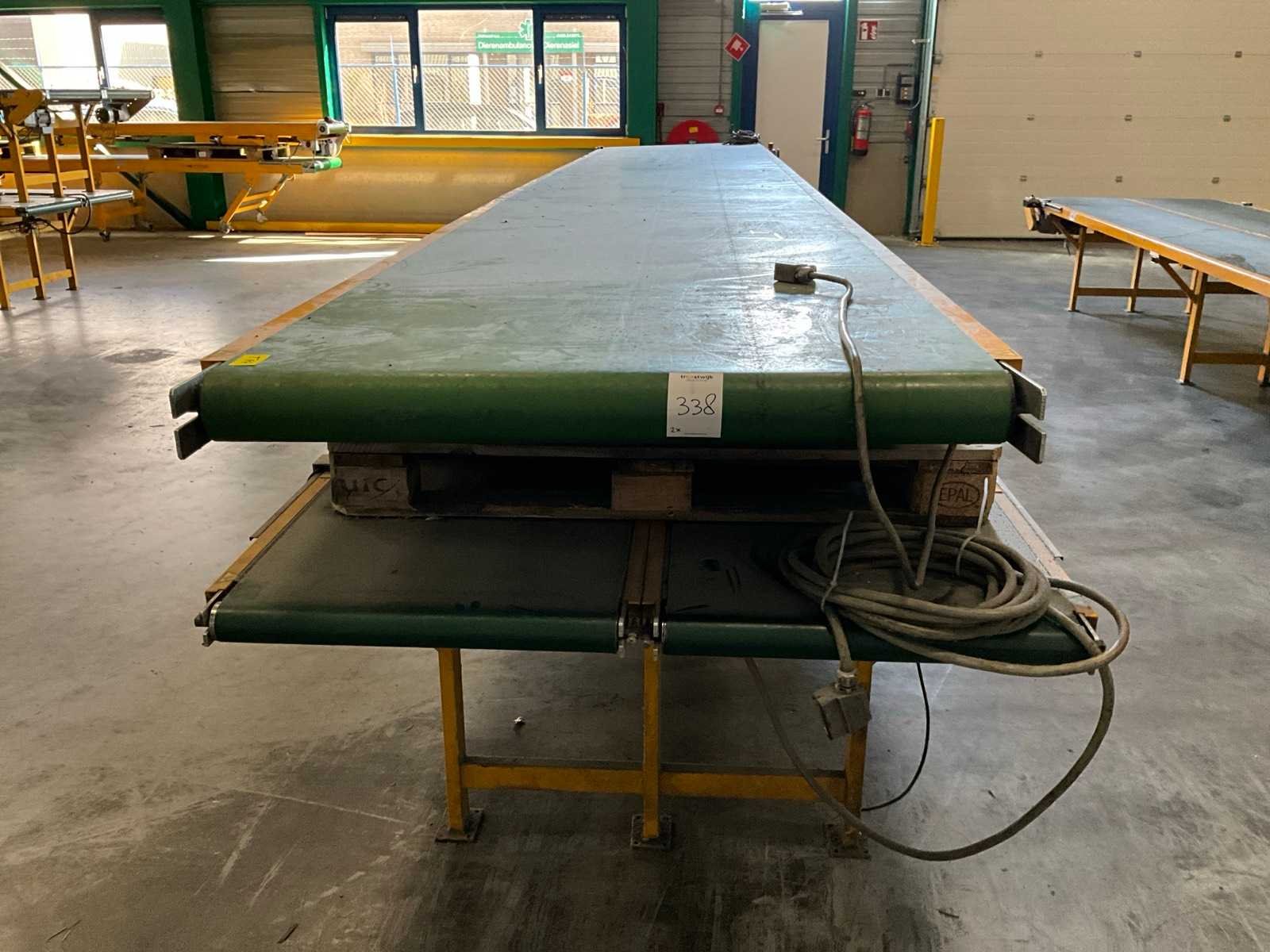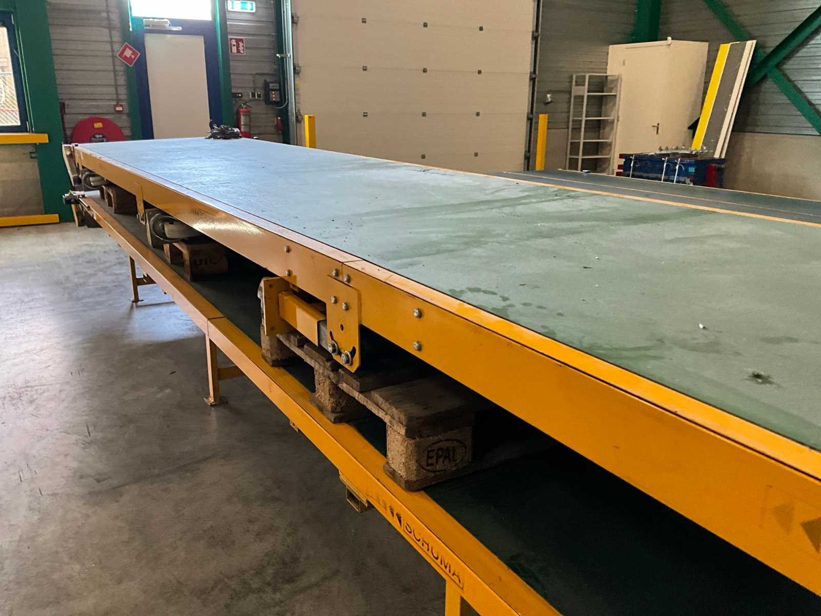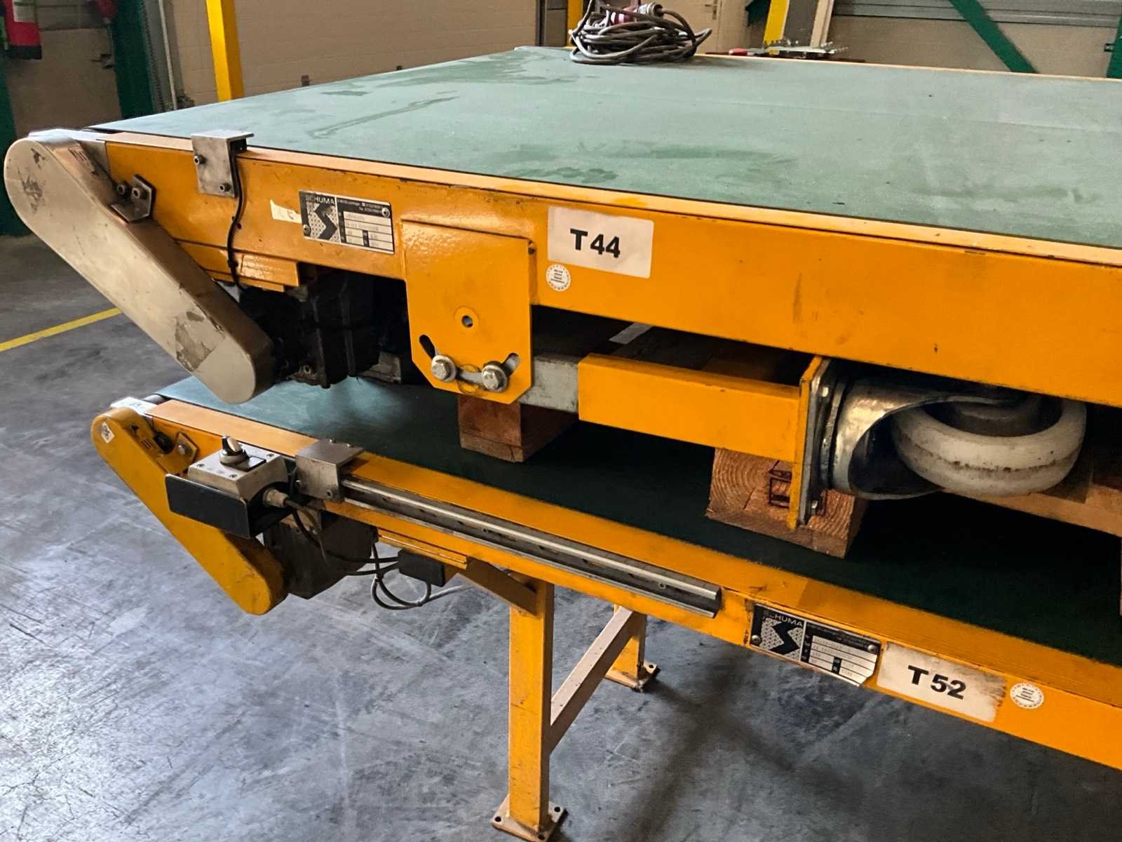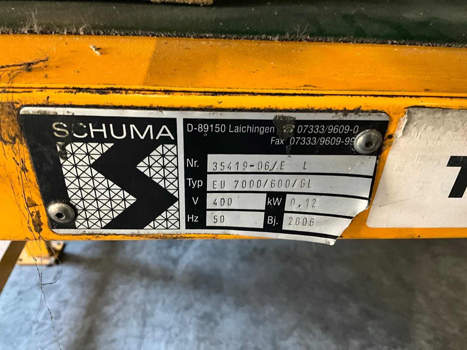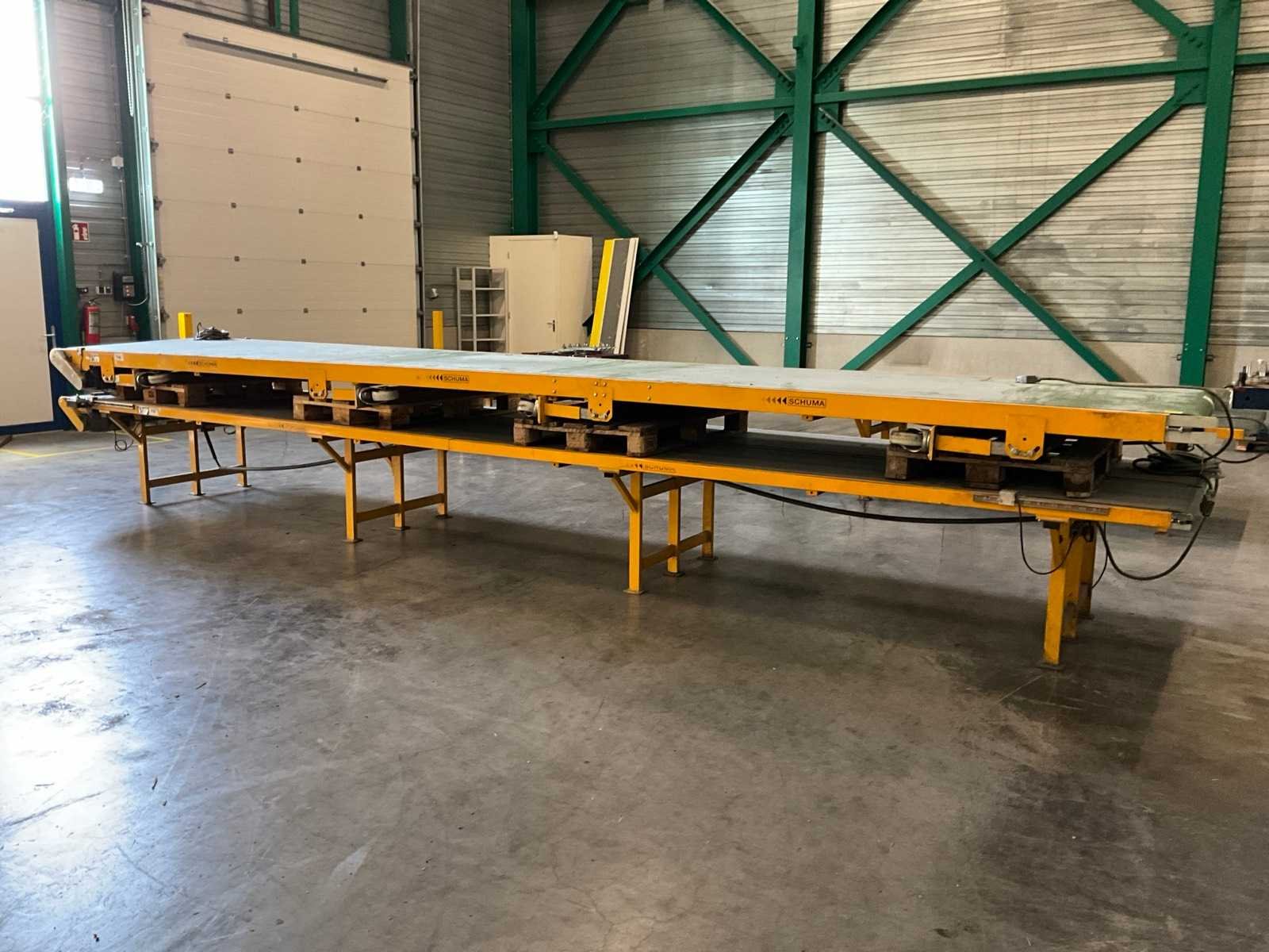 1x dubbele transportband 2x 7000x600 mm (Schuma EU 7000/600/GL), 1x mobiele transportband 7000x1100 (Schuma EU-100D 7000/1100/GL) met interval timer Merk: Schuma Bouwjaar: 2006 Band afm. l: 7000mm Elektrisch aangedreven: true Aansluiting: 400V