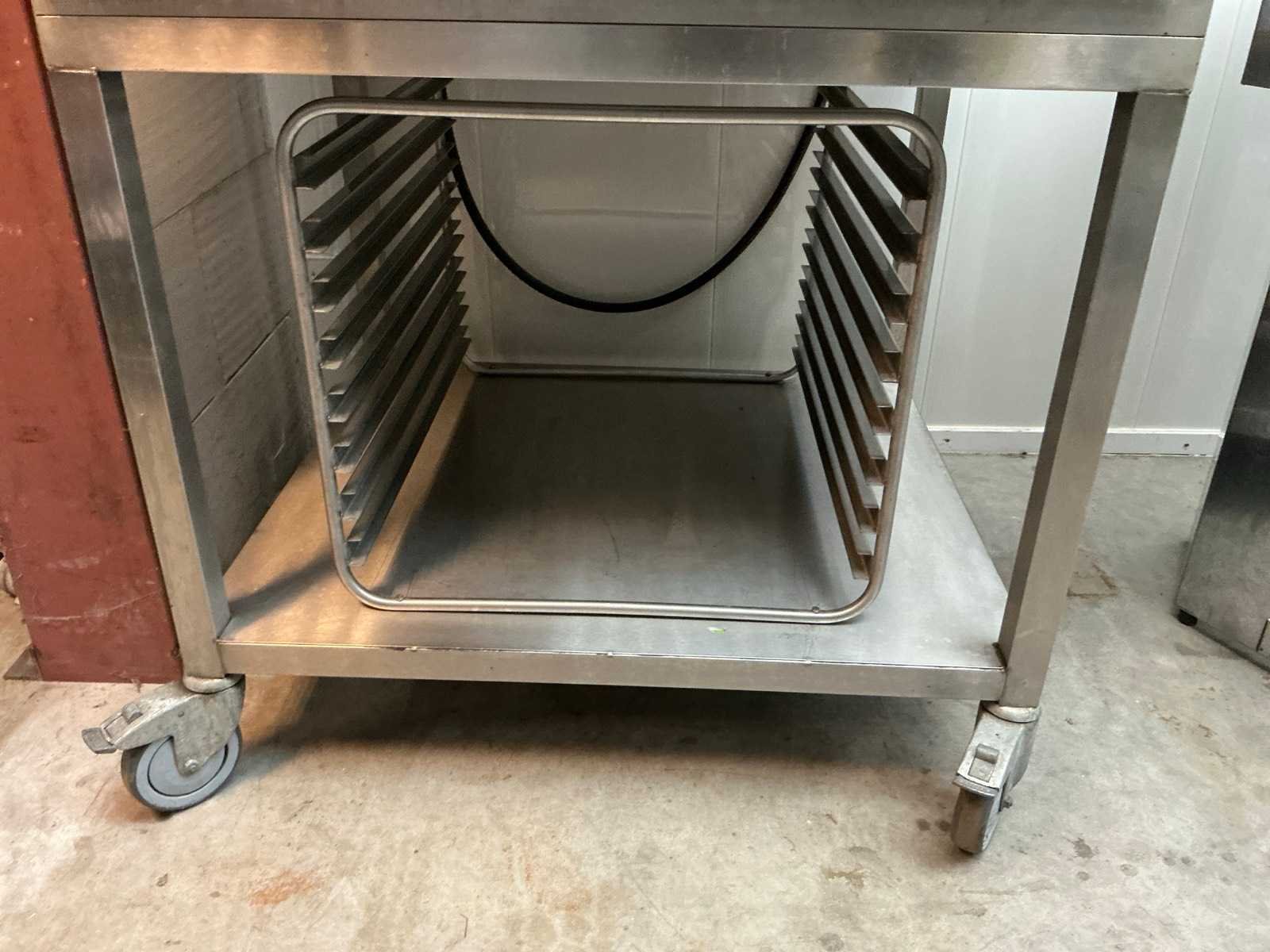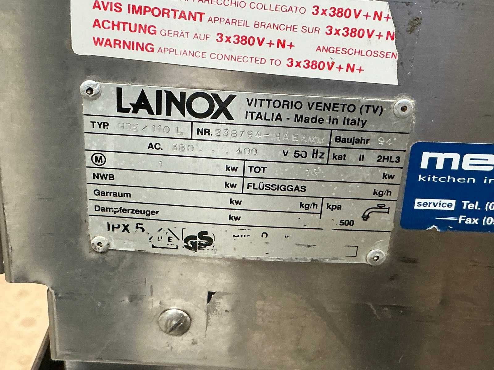 Op RVS verrijdbaar onderstel Merk: Lainox Type: HDE 110 L Bouwjaar: 1994 Serienummer: 238794 Rvs: true Elektrisch: true Aansluiting: 400V Totale afmeting L: 950mm Totale afmeting Breedte: 900mm Totale afmeting Hoogte: 1800mm