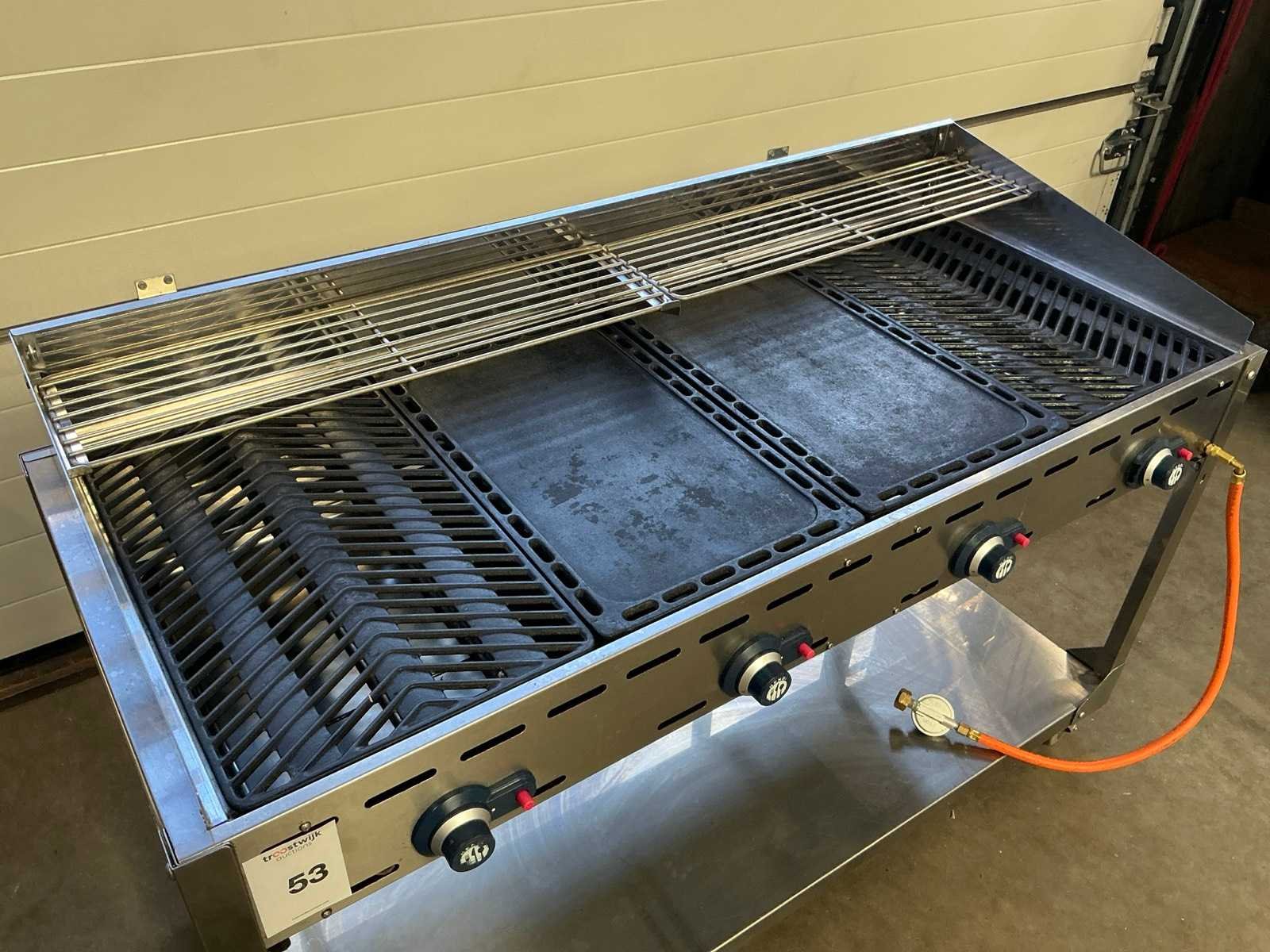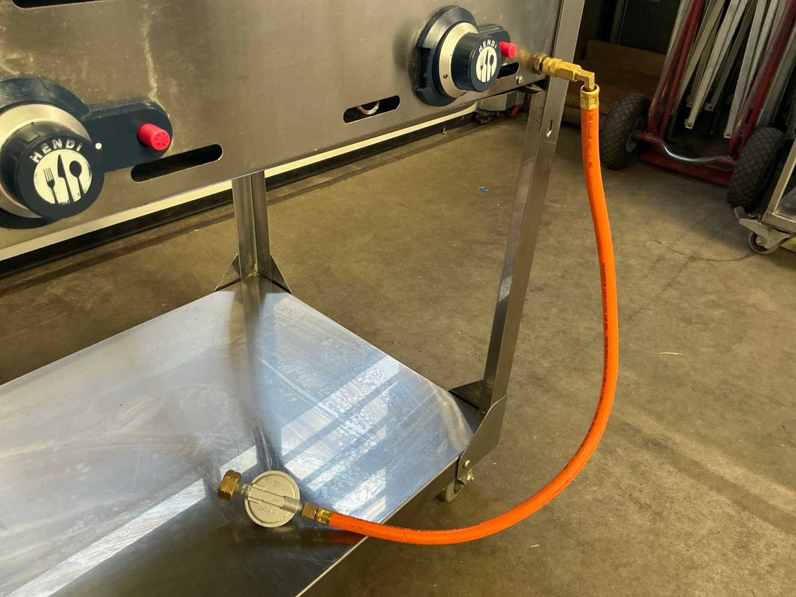 Voorzien van 4 branders, op RVS verrijdbaar onderstel Merk: Hendi Lengte: 62cm Breedte: 141cm Hoogte: 96cm