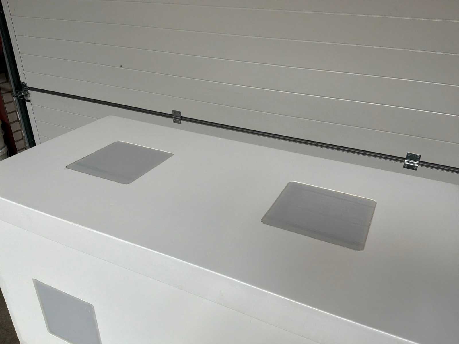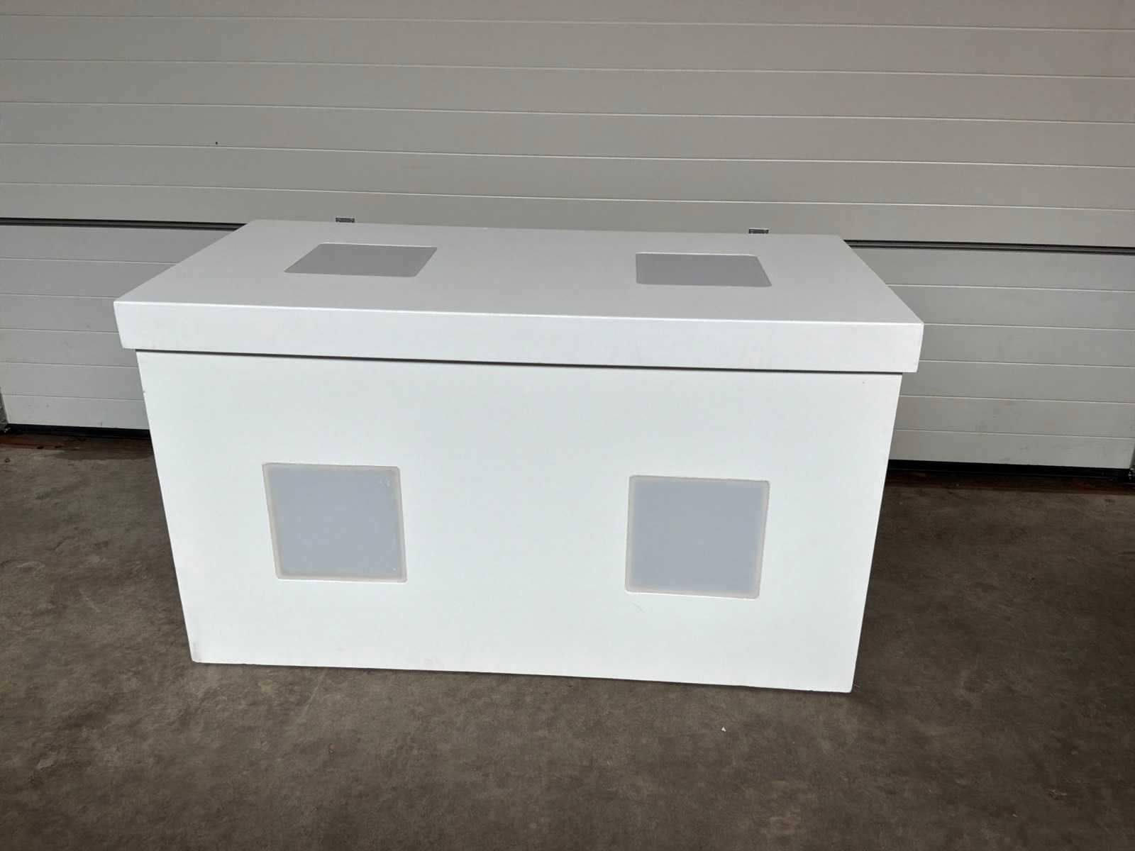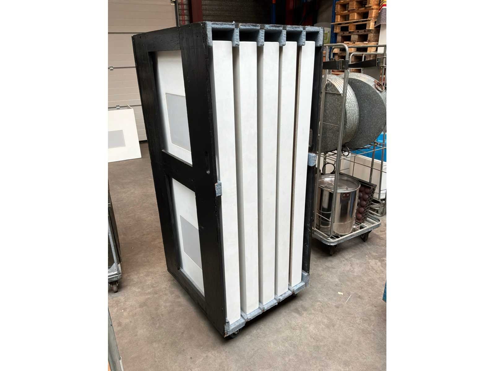9x onderbouw, 10x bovenblad. Op 4 karren. Hoogte: 90cm Breedte: 160cm Diepte: 80cm