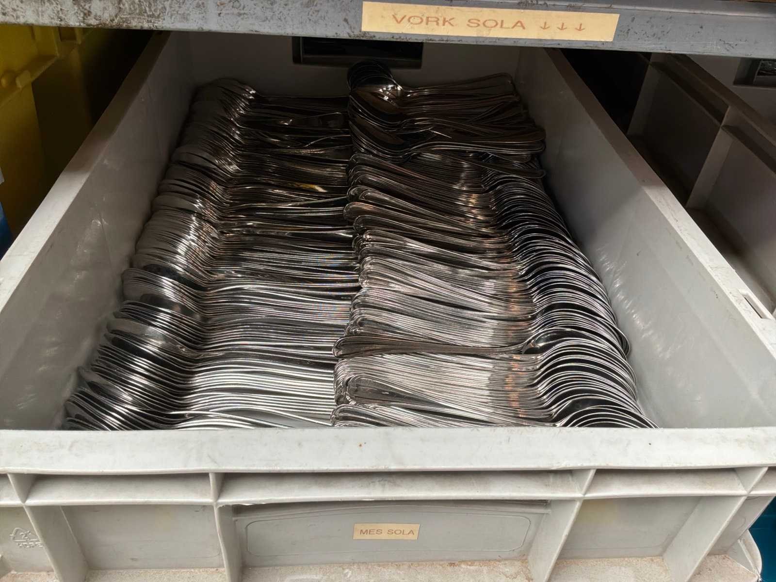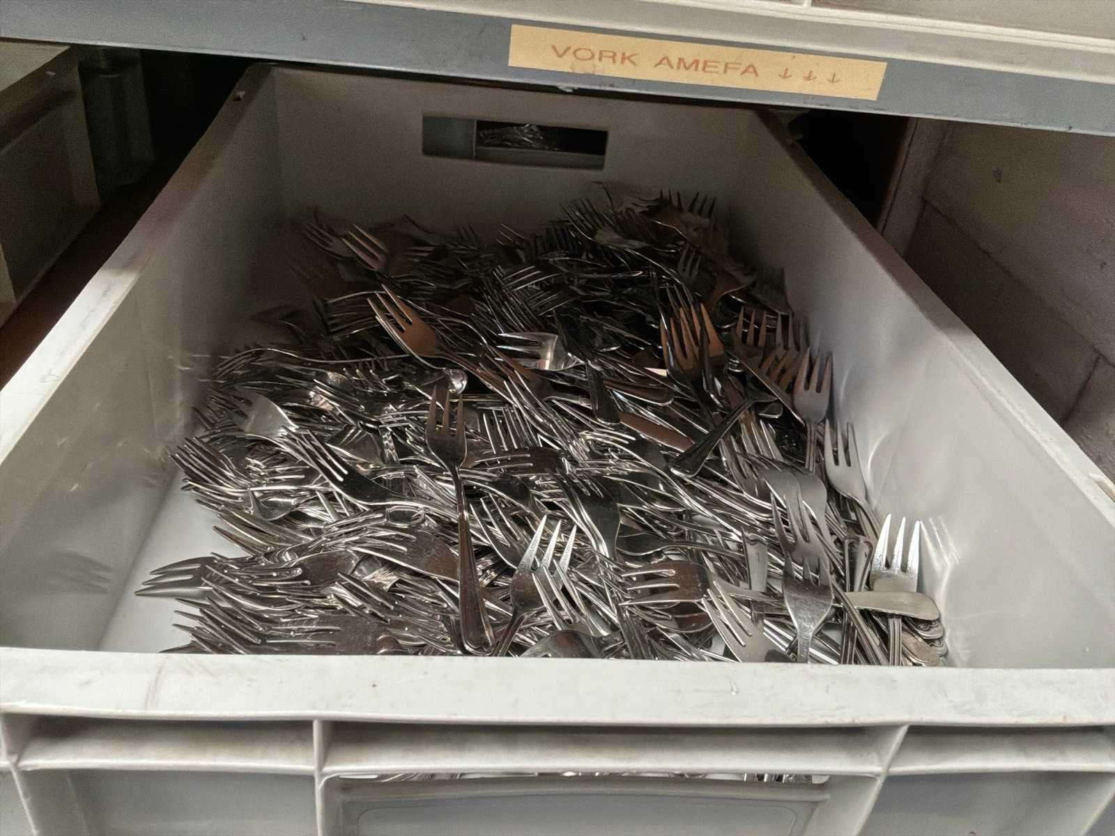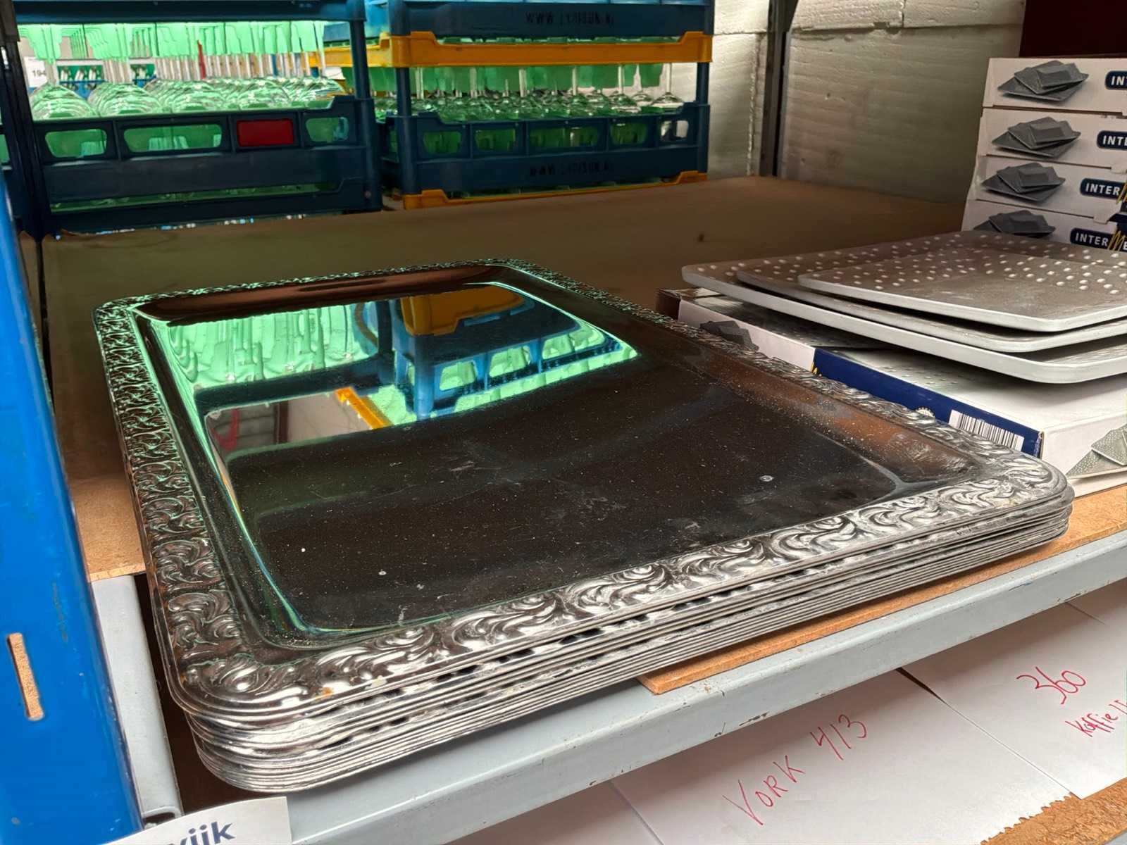 Lepels, vorken en dienbladen/decoratiebladen.