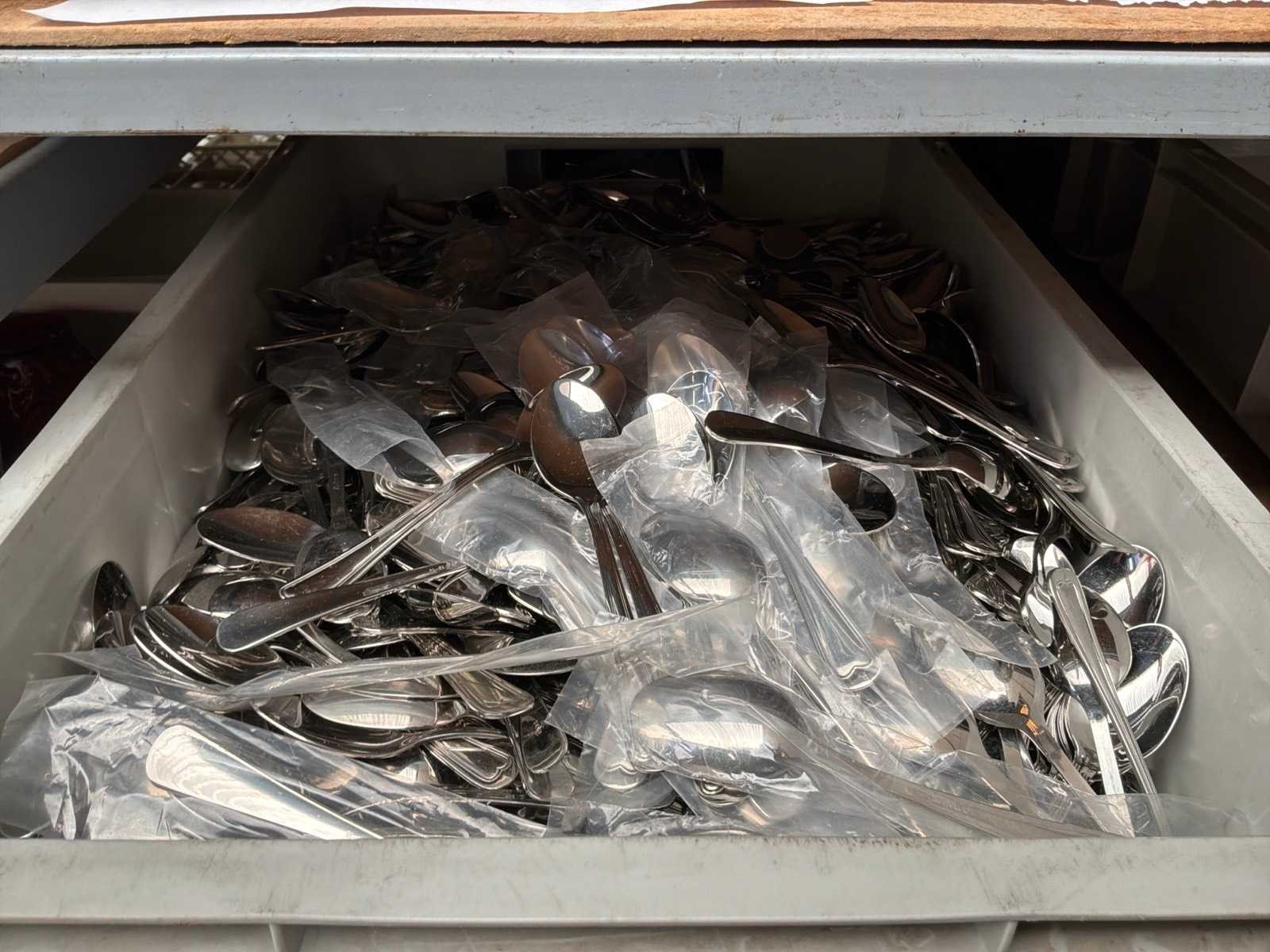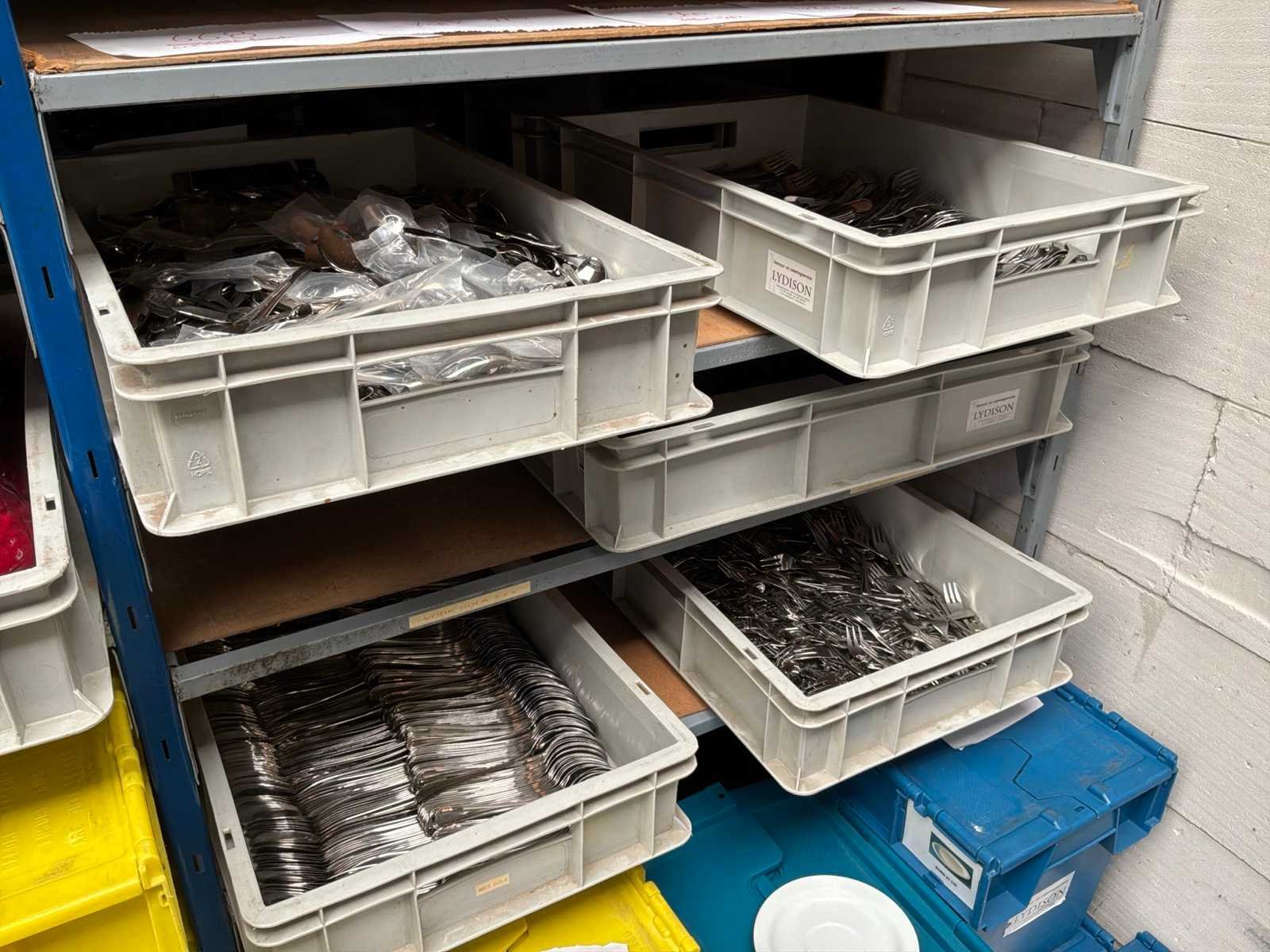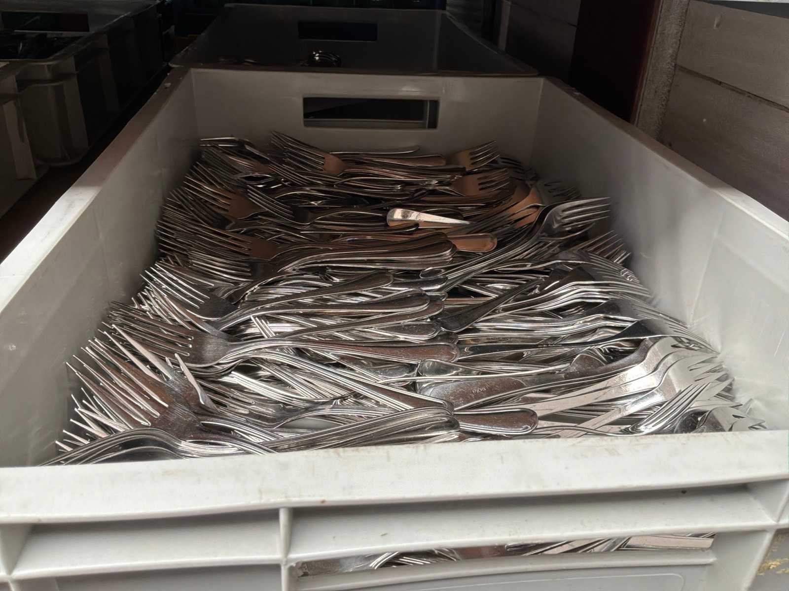 Lepels, vorken en dienbladen/decoratiebladen.