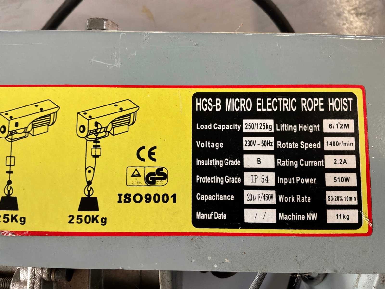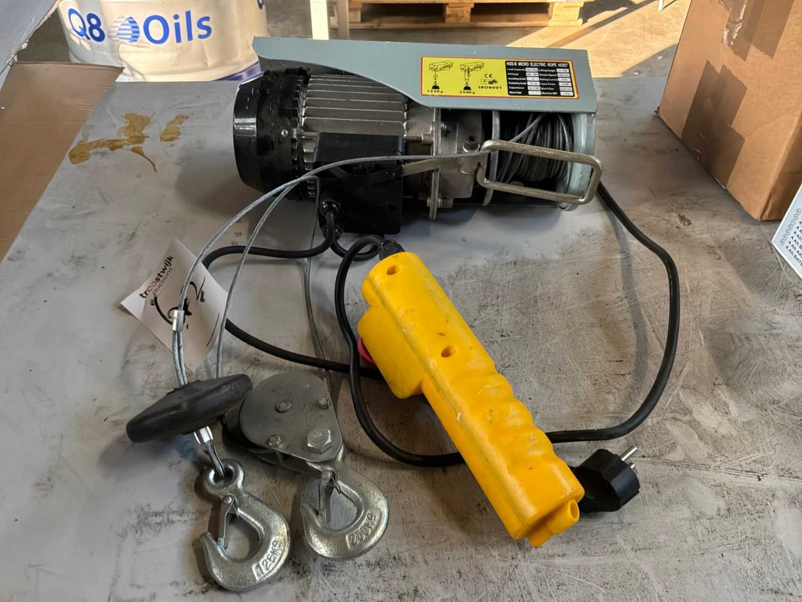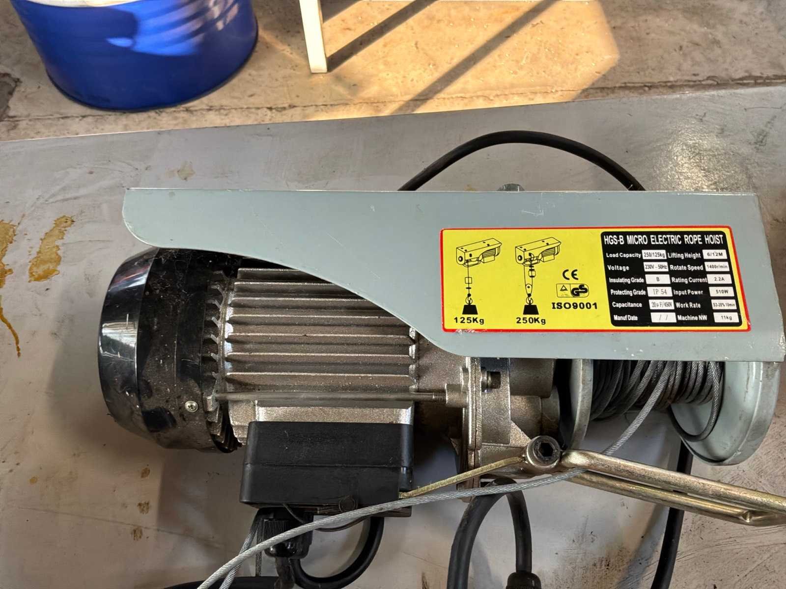 Maximaal 250kg, hijshoogte maximaal 12 meter. Merk: Berlan Model: HGS-B