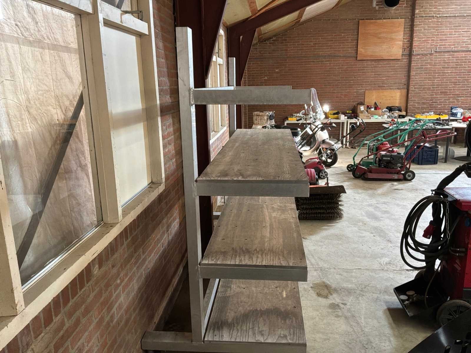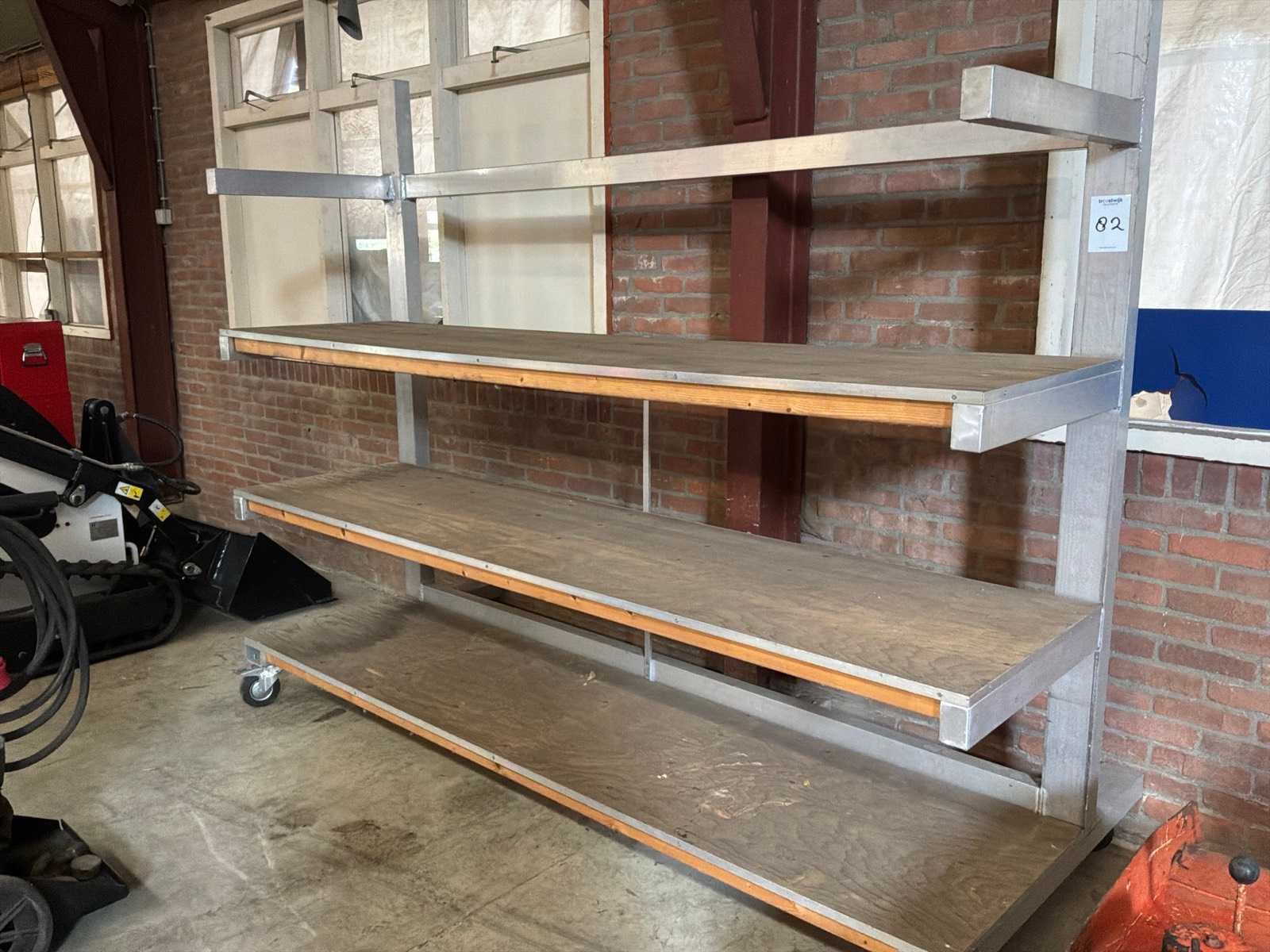 Verrijdbare aluminium stelling. Aantal staanders: 2 Aantal liggers: 4 Geconstrueerd: true Lengte: 68cm Breedte: 244cm Hoogte: 201cm