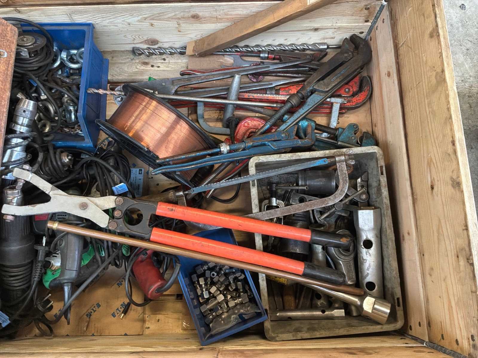 Waaronder: lasbenodigdheden, boormachine, doorstroommeter, schuurmachine, haakseslijpers, bevestigingsmaterialen.