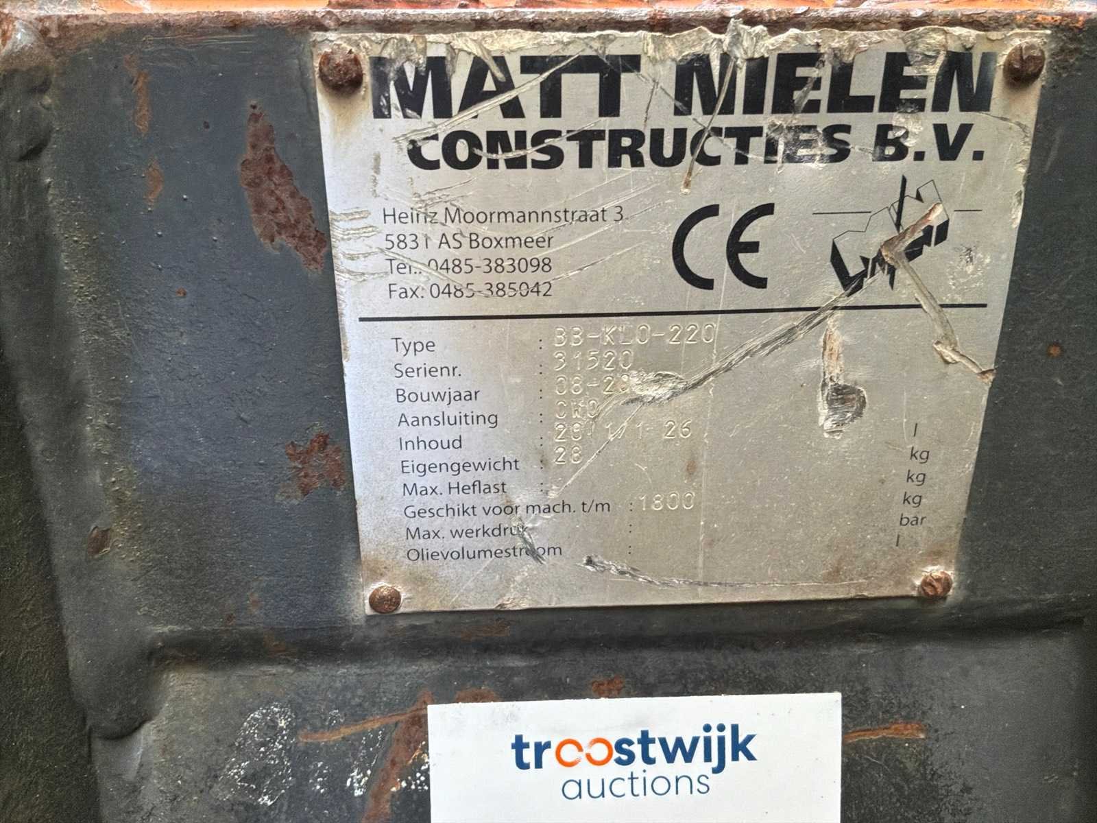 Merk: Matt Nielen Type: BB-KLO-220 Serienummer: 31520 Graafbak afm. l: 450mm Graafbak afm. b: 220mm Graafbak afm. h: 350mm