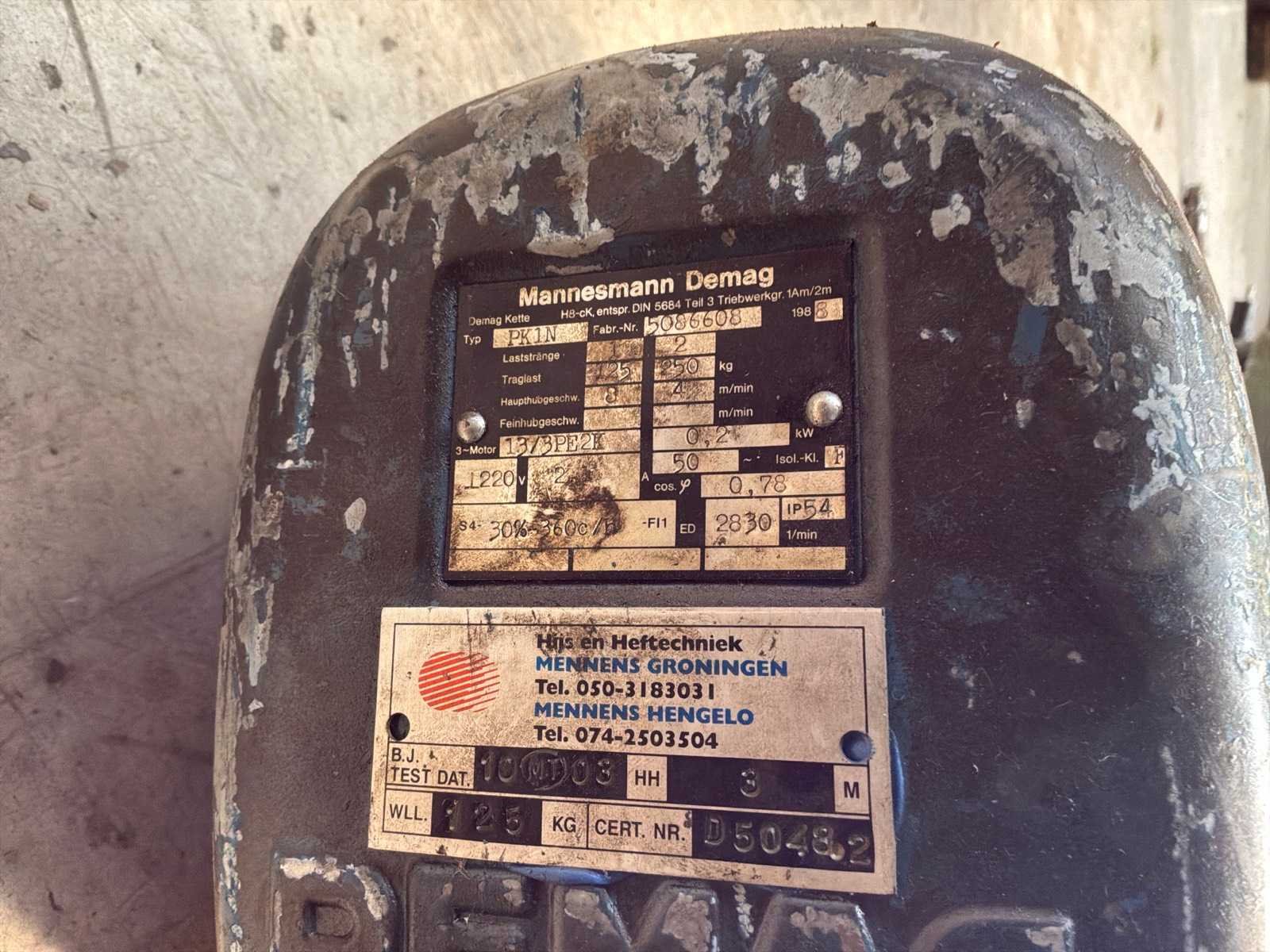 Met loopkat Merk: Demag Type: PKIN Bouwjaar: 1988 Capaciteit.: 250kg Aansluiting: 230V