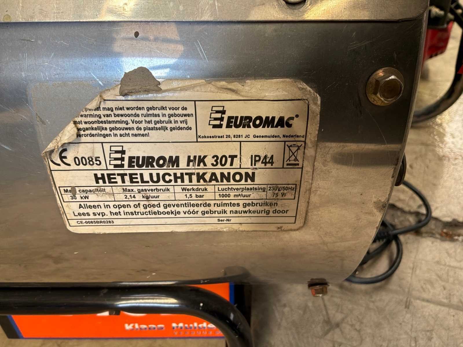 Merk: Eurom Type: HK 30T Vermogen: 30kW Brandstof: Gas Totale afmeting L: 400mm Totale afmeting Breedte: 750mm Totale afmeting Hoogte: 500mm