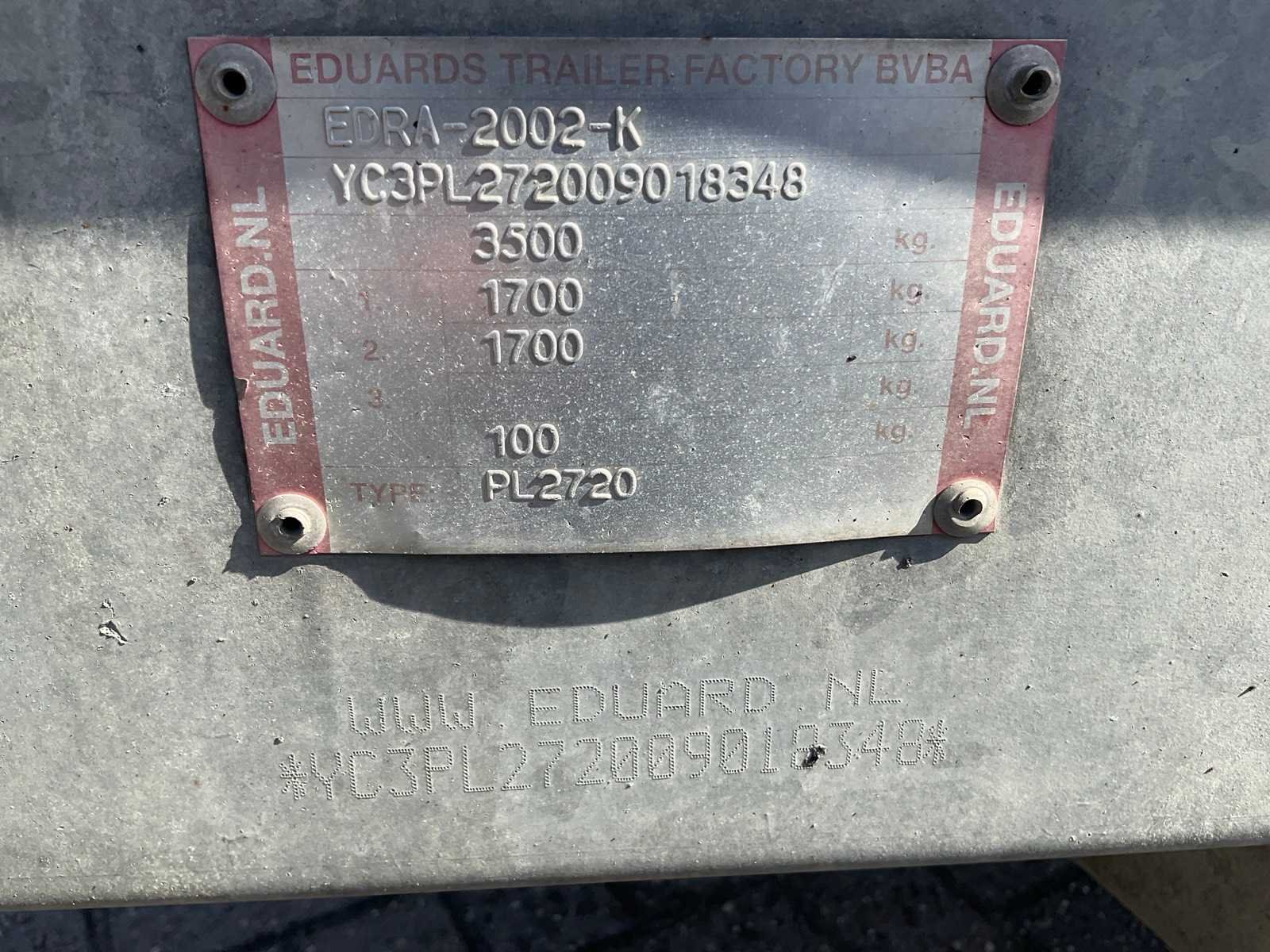 Incl. Rijplaten Merk: Eduard Type: Pl2720 Bouwjaar: 2009 Aantal assen: 2 Laadbak afmeting l: 400cm Laadbak afmeting b: 180cm Ledig gewicht: 559kg Laadvermogen: 2941kg Datum eerste toelating: 2009-05-16 Datum eerste toelating (NL): 2009-05-16 Kenteken: 71-WD-LR Hoogte: 80cm Lengte: 600cm Breedte: 1800cm