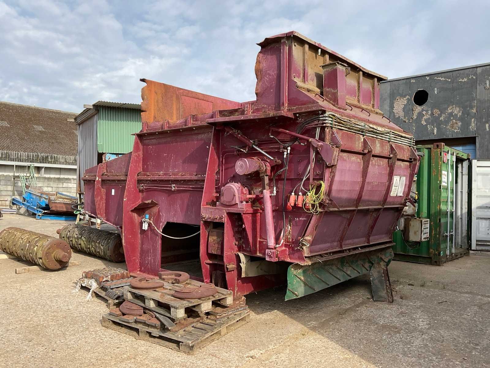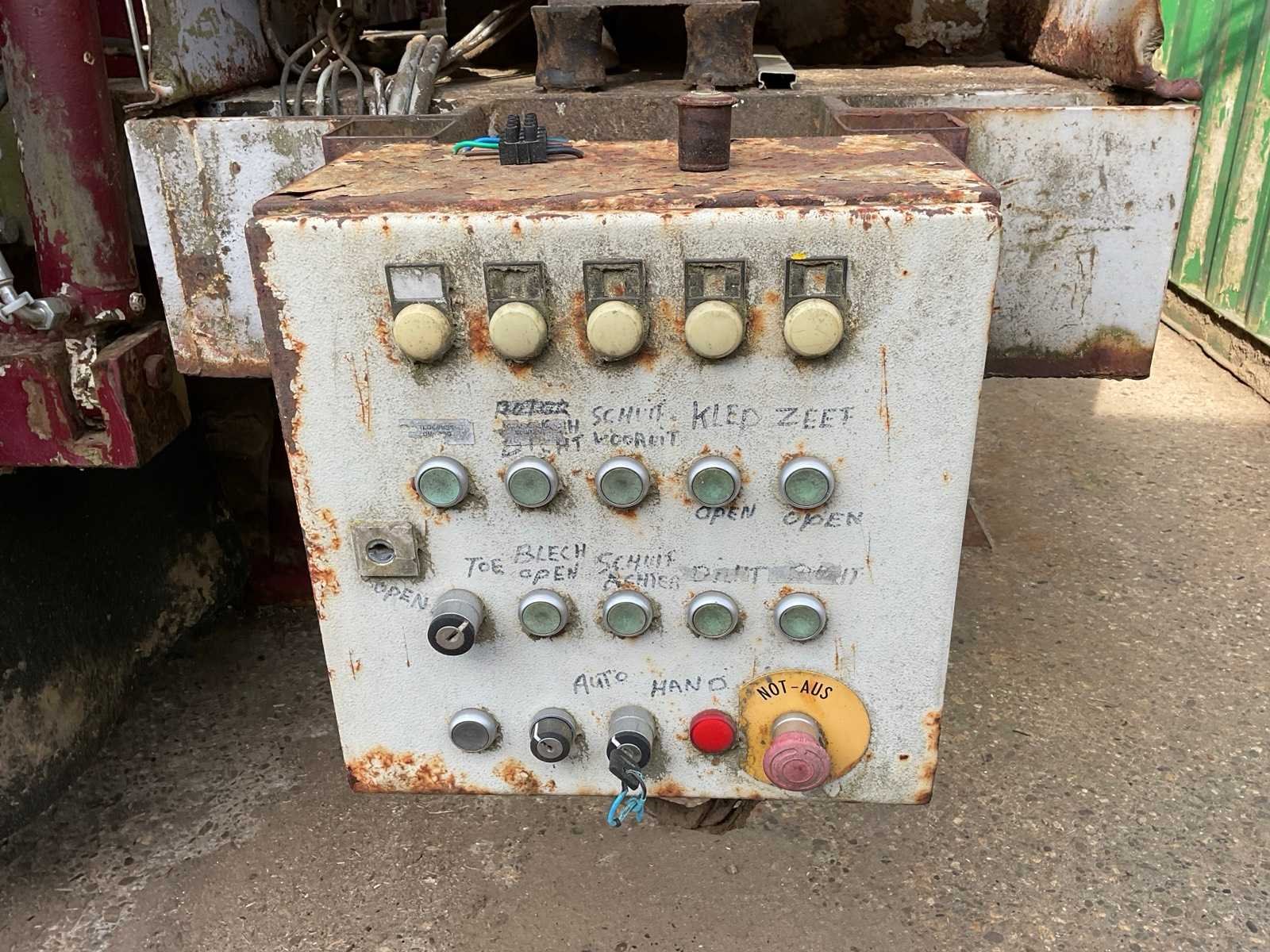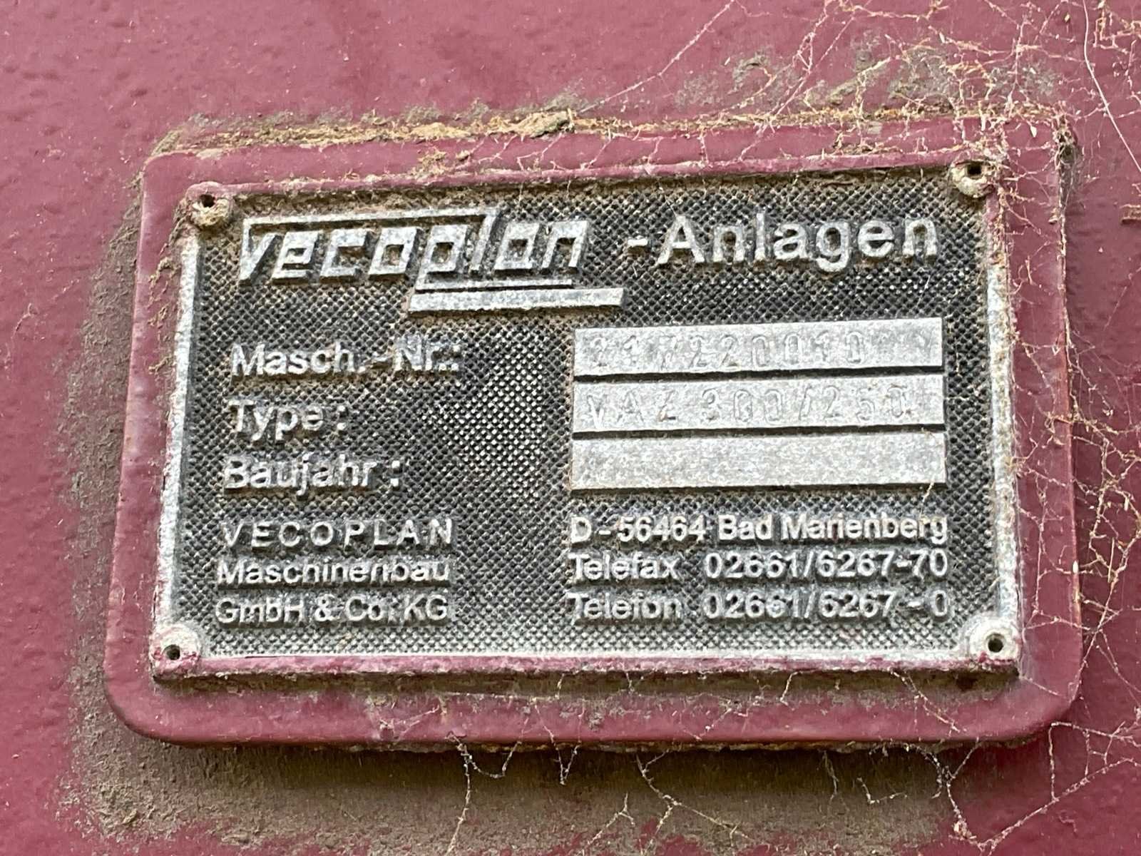 Enkel assige shredder met 56 messen, Inclusief: (1x) 20ft container met hoofdschakelkasten, (1x) hydrauliekunit, (2x) reserve rotoren. Lucht gestuurde breukbeveiliging Merk: Vecoplan Hopper opening b: 2500mm Rotor lengte: 2500mm Aansluiting: 400V Aantal messen: 56 Machinegewicht: 24000kg Hopper opening l: 3200mm Rotor Ø: 600mm Bouwjaar: 1995 Motorvermogen (kW): 160kW Serienummer: 217220010 Type: VAZ 300/250