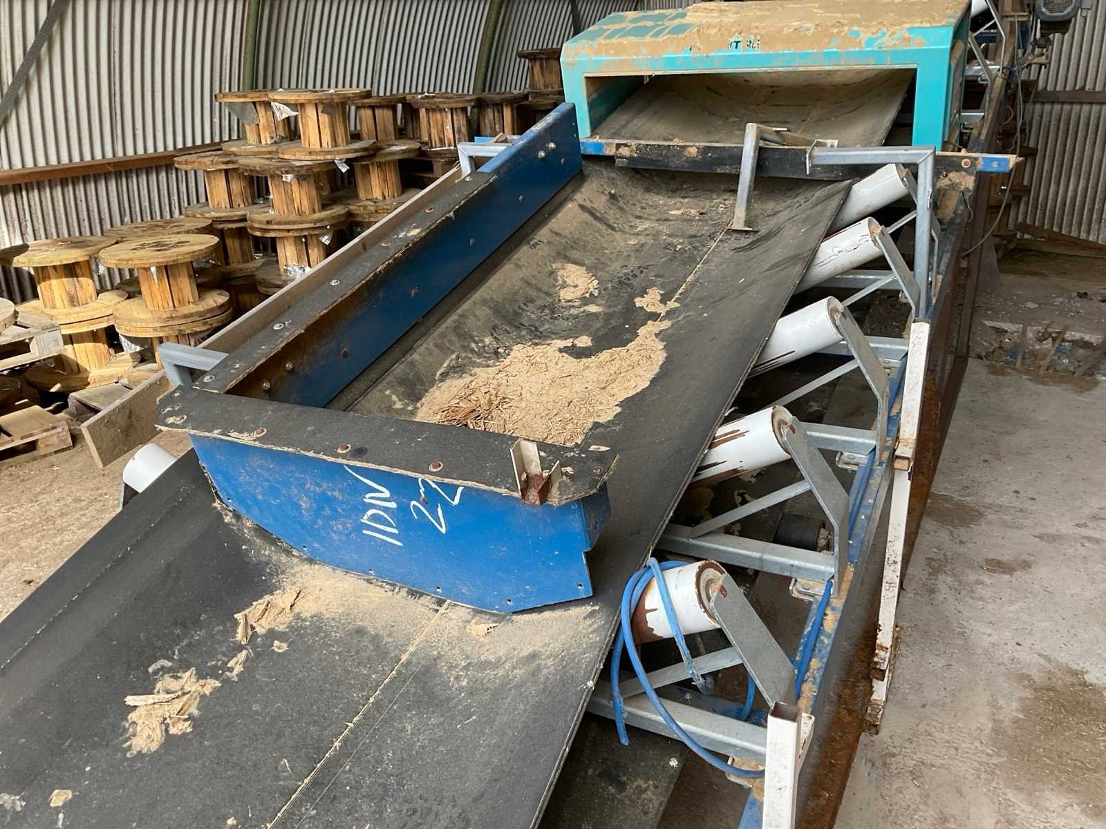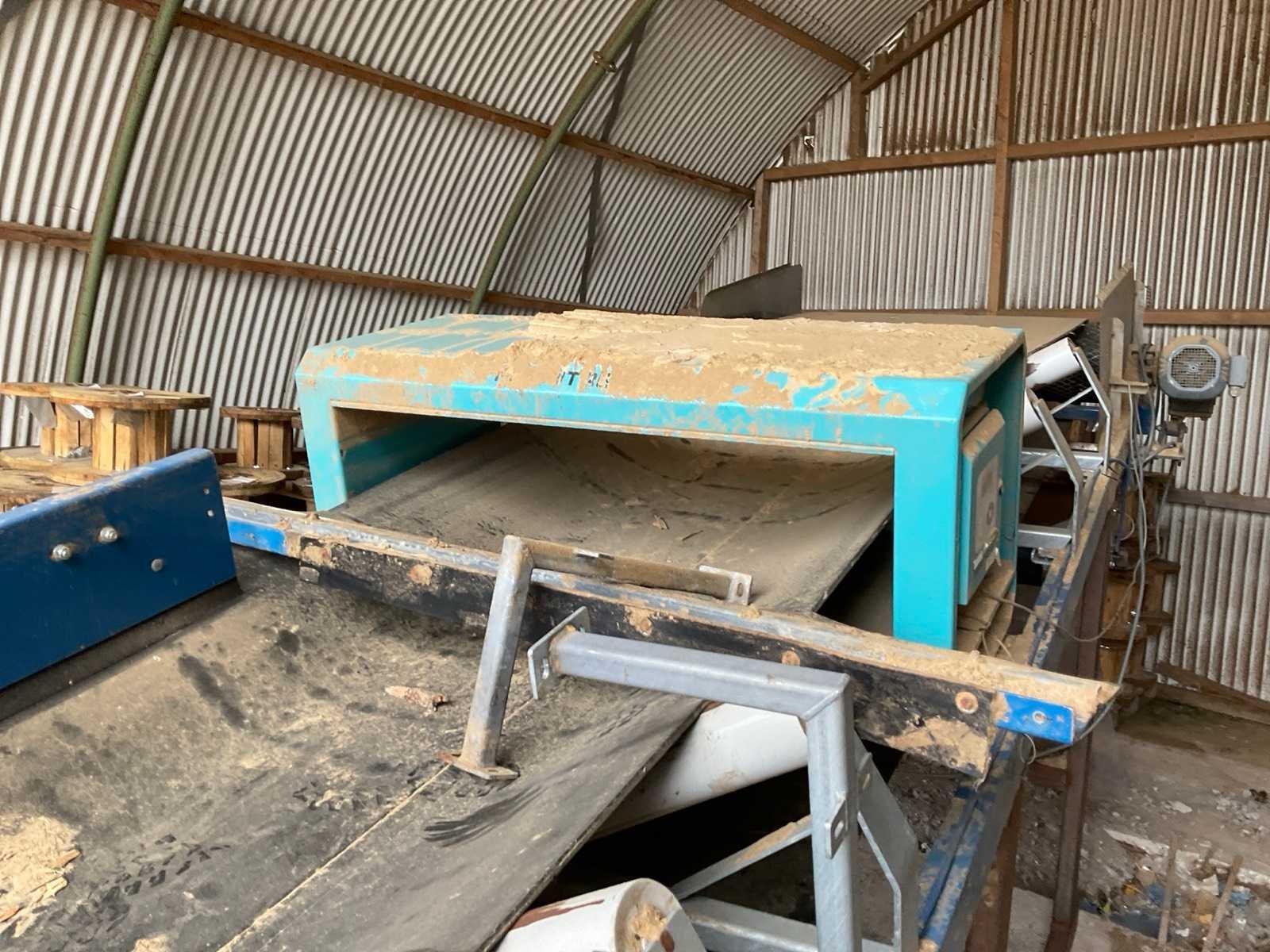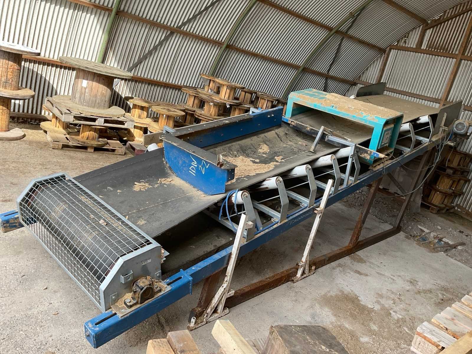 Transportband: werkbreedte: 1150mm, Lengte: 7mtr. Voorzien van: (1x) Mesutronic metaaldetector, Type: MN 5,1 D 1000/400, Serienummer: 910914-D, Bouwjaar: 2009, Opening: B 1240 x H 400mm. Merk: ASM Type: BT6,5/1200-U-T4 Bouwjaar: 2009 Serienummer: 657 Totale afmeting L: 7350mm Totale afmeting Breedte: 1700mm Totale afmeting Hoogte: 2500mm