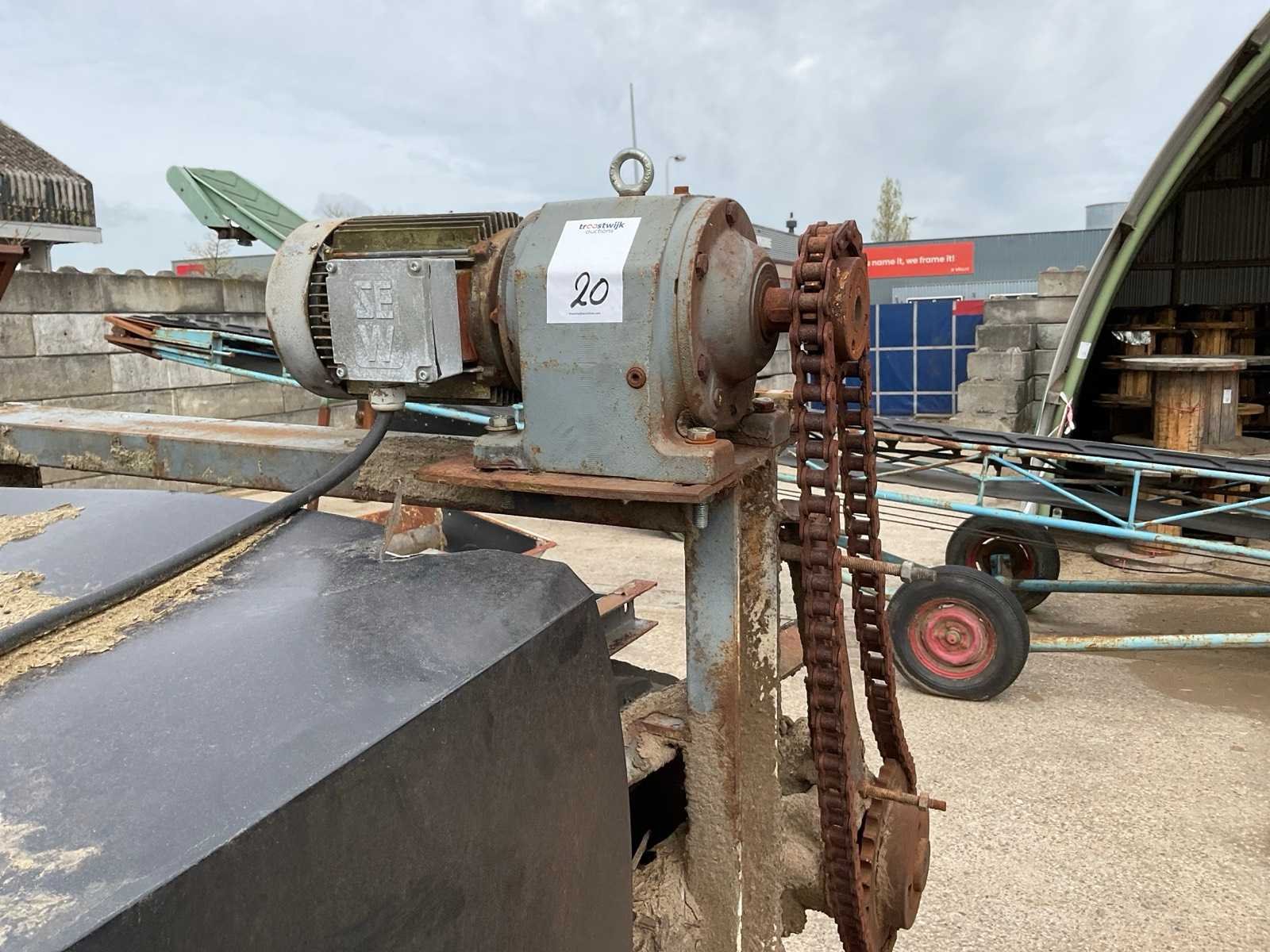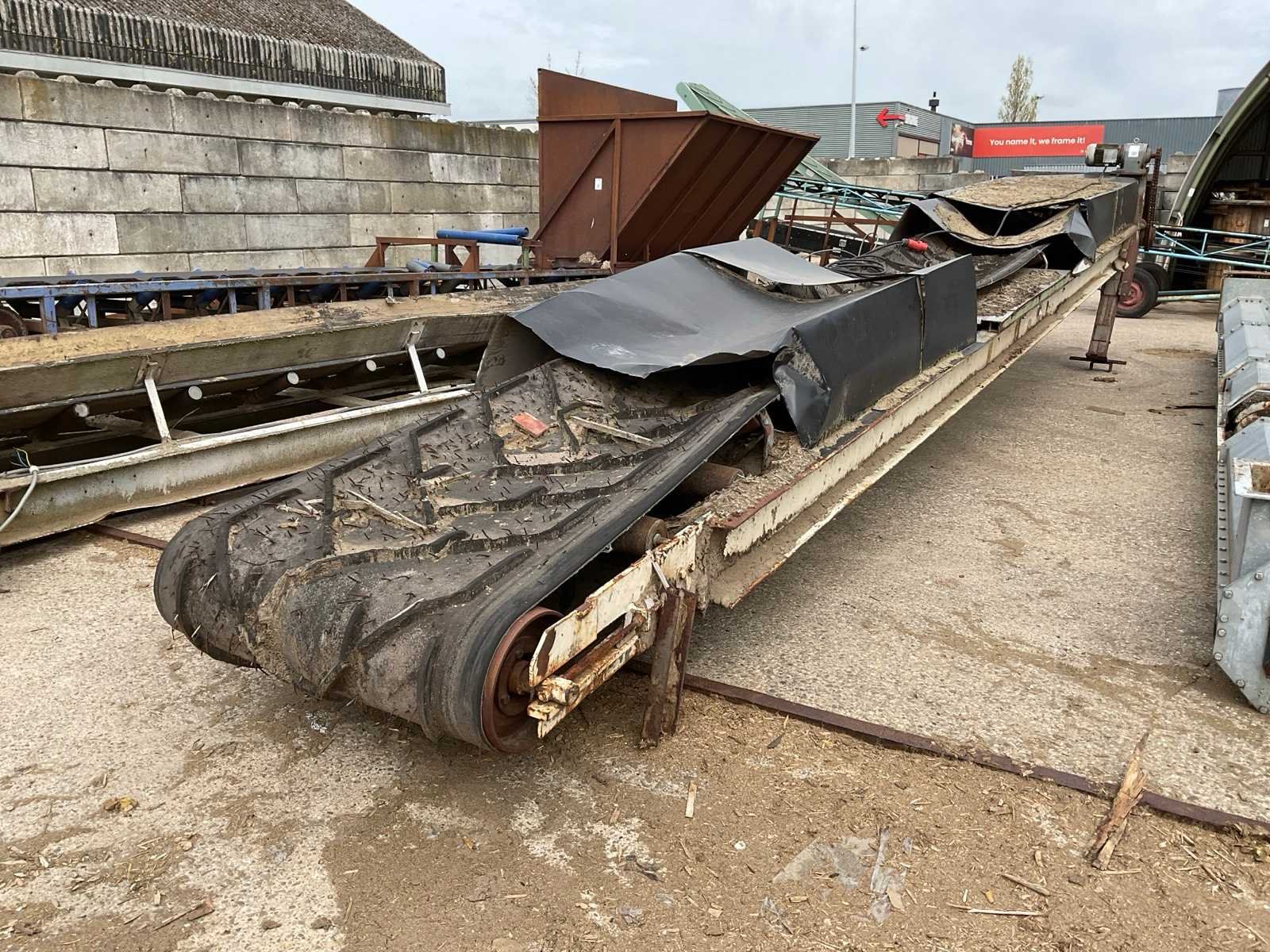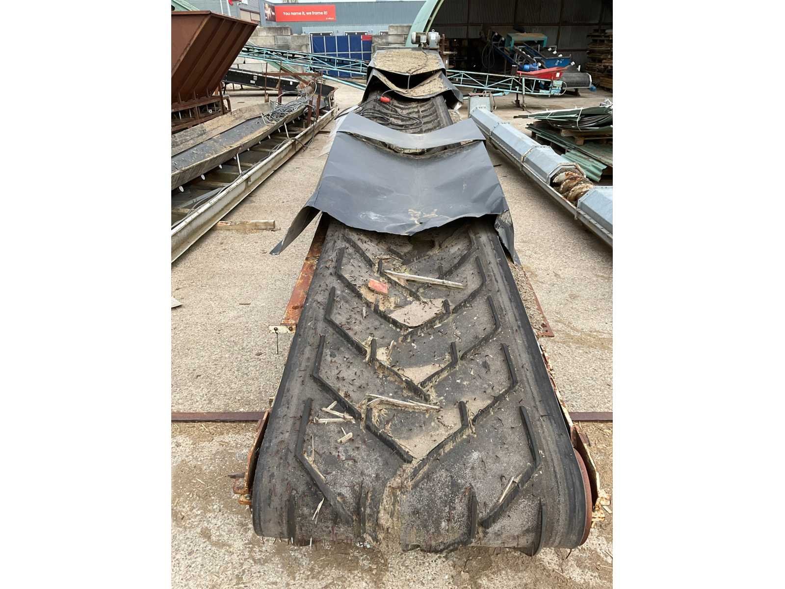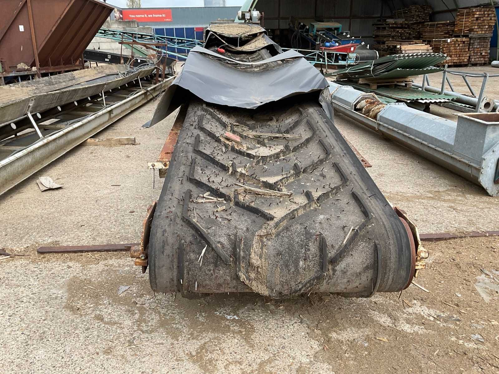 Motor vermogen: 3kW. Band afm. b: 1000mm Band afm. l: 9600mm Aansluiting: 400V Totale afmeting L: 9600mm Totale afmeting Breedte: 1400mm Totale afmeting Hoogte: 1900mm
