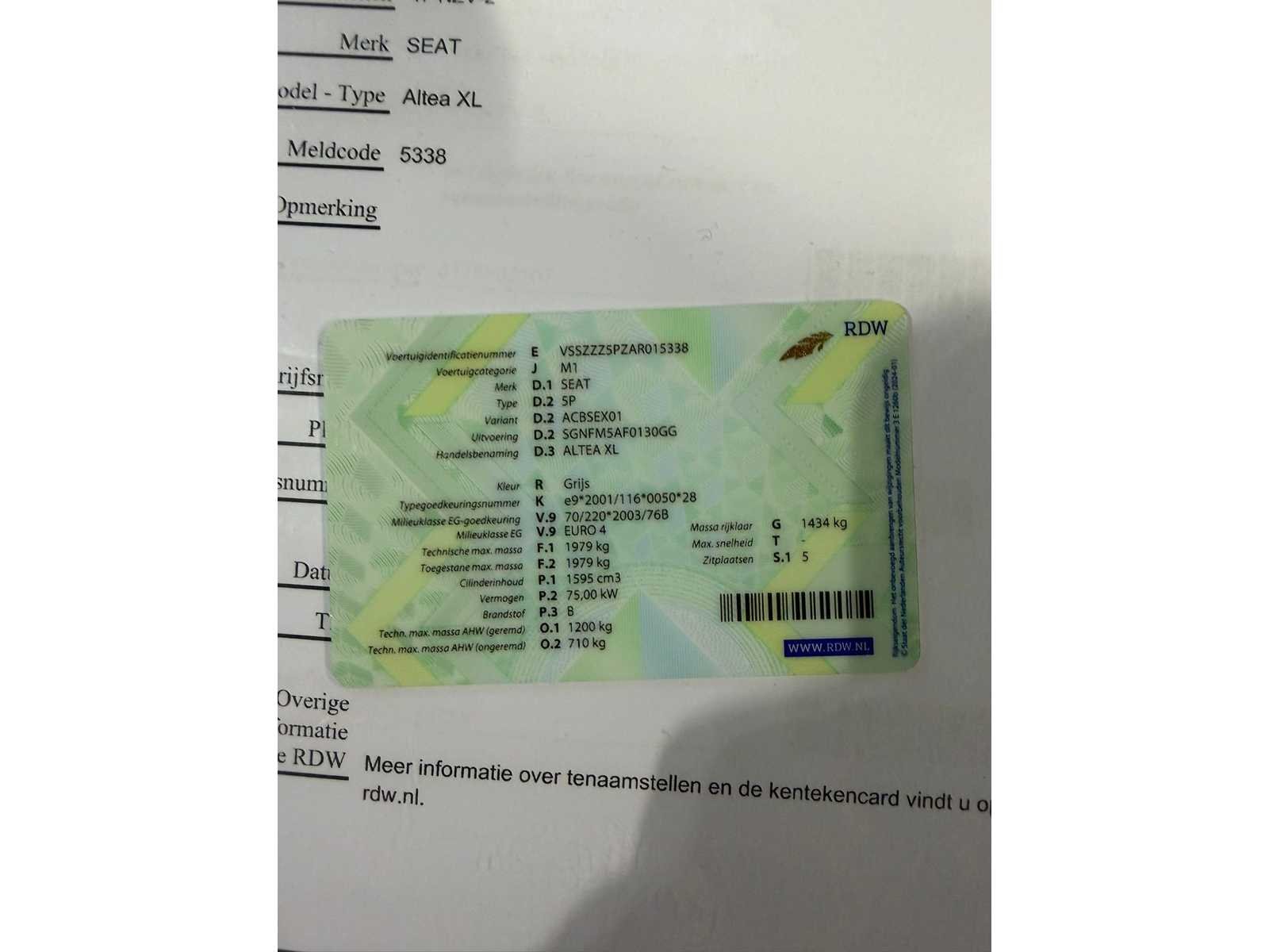 Kenteken: 47-NZV-2 Merk: SEAT Model: Altea XL Type: 1.6 Hattrick Bouwjaar: 2011 Afgelezen kilometerstand: 191105km Cilinderinhoud: 1595cc Vermogen (kW): 75kW Brandstof: Benzine Chassisnummer: vsszzz5pzar015338 NAP status: Illogical Datum eerste toelating: 2011-03-17 APK vervaldatum: 2026-05-27 Vermogen (pk): 101hp Aantal zitplaatsen: 5 Maximaal trekgewicht ongeremd: 1200kg Maximaal trekgewicht geremd: 710kg Kleur: grijs Transmissie: Handgeschakeld (5) Drive type: Front wheel Emissieklasse: 4 Aantal deuren: 4 Aantal sleutels: 1 Ledig gewicht: 1334kg Bruto BPM (NL): 4492€ Rest BPM: 274€ Aantal cilinders: 4 Carrosserie: MPV Carfax Link: https://was.carfax.eu/v0/api/ccdid/5100016408/svc/201/vinreg/47NZV2/checksum/eyJhbGciOiJIUzI1NiIsInR5cCI6IkpXVCJ9.eyJleHAiOjE3ODE3MDgwNDh9.u9C90a1KvvhkhXJOYLS7ji9_Lsa4v7WaV0ZRD5cPyp4 startinformatie : start en rijdt Self drive export possible : true