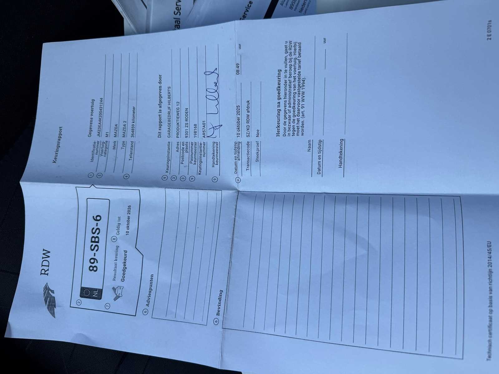 Omdat dit kavel niet in Spijkenisse staat moet u ons een mail sturen dan krijgt u van ons het adres. Vermeld wel het veilingnummer en kavel nummer zodat het voor ons makkelijker zoeken is. Kenteken: 89-SBS-6 Merk: Mazda Model: 2 Type: 1.3 BIFUEL Cool Bouwjaar: 2011 Afgelezen kilometerstand: 376091km Cilinderinhoud: 1349cc Vermogen (kW): 55kW Brandstof: Benzine Gas Chassisnummer: JMZDEA4K200431244 NAP status: Logical Datum eerste toelating: 2011-09-05 APK vervaldatum: 2026-10-10 Vermogen (pk): 74hp Aantal zitplaatsen: 5 Maximaal trekgewicht ongeremd: 900kg Maximaal trekgewicht geremd: 500kg Kleur: grijs Transmissie: Handgeschakeld (5) Gasinstallatie: true Emissieklasse: 5 Aantal deuren: 4 Ledig gewicht: 971kg Aantal cilinders: 4 Carrosserie: Hatchback Nationaliteit documenten: Nederland Carfax Link: https://was.carfax.eu/v0/api/ccdid/5100016408/svc/201/vinreg/89SBS6/checksum/eyJhbGciOiJIUzI1NiIsInR5cCI6IkpXVCJ9.eyJleHAiOjE3Nzg5Mzc0MDh9.2Dp5ZnG17XyrJ_SCufTHaIOi5N0_Kvxa2cCVFQYFeRQ startinformatie : start en rijdt Airconditioning: true