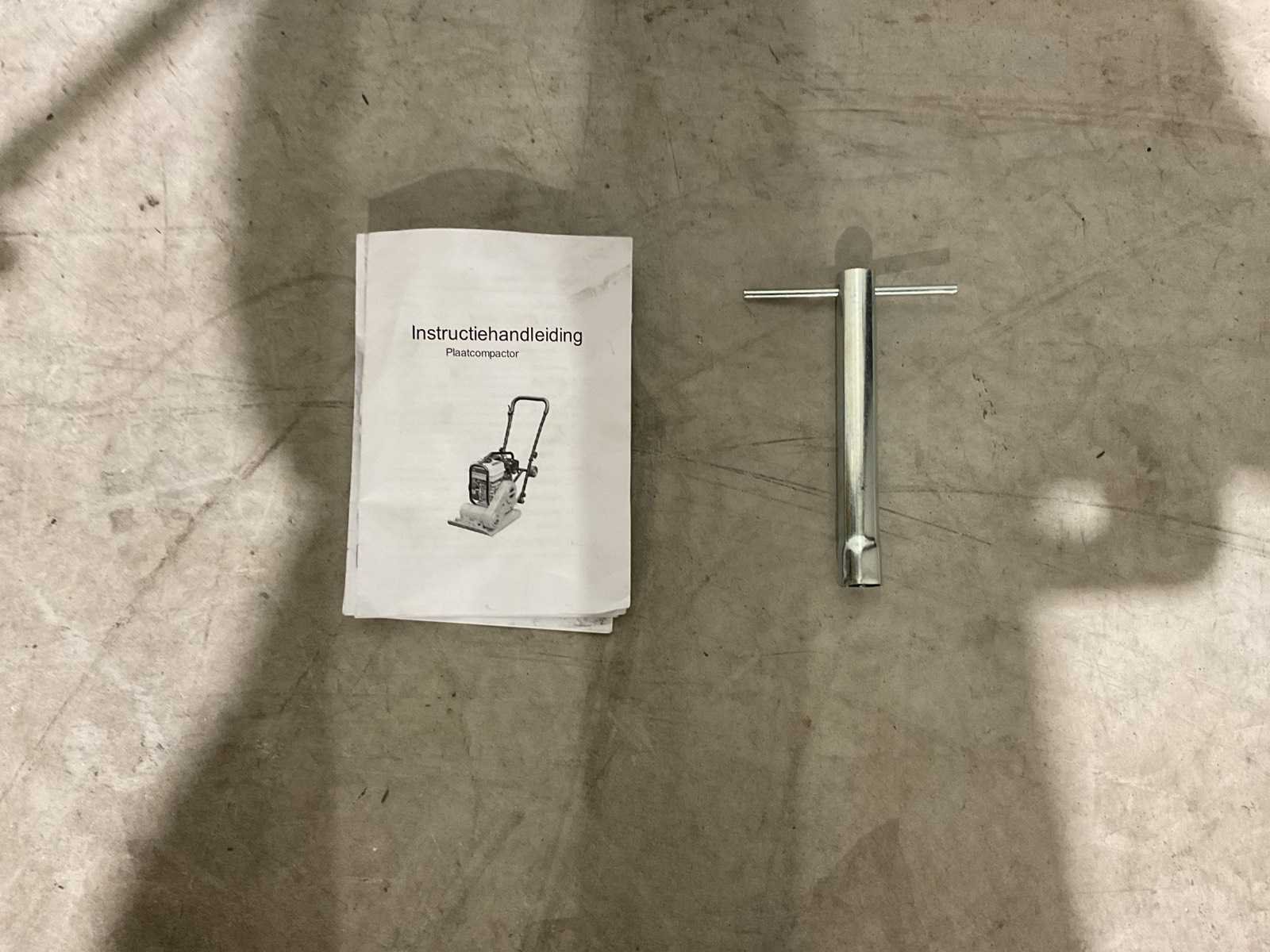 Voorzien van Type motor: Benzinemotor; Motorvermogen: 7 HP; Trilfrequentie: 5500 VPM; Afmeting bodemplaat: 480 × 380 mm; Centrifugaalkracht: 11 kN; Verdichtingsdiepte: 20 cm; Verdichtingsgraad: 0–30%; Voorwaartse snelheid: 20–25 m/min; Klimvermogen: 30%; Transport 63Kg - 72x40x56cm ongebruikt in doos Merk: Nurnberg tools Type: NB1002 Bedrijfsgewicht: 60kg Grondplaat afm. l: 480mm Grondplaat afm. b: 380mm Centrifugale kracht: 11kN Motorvermogen (kW): 5.22kW Brandstof: Benzine Eigen gewicht: 60kg