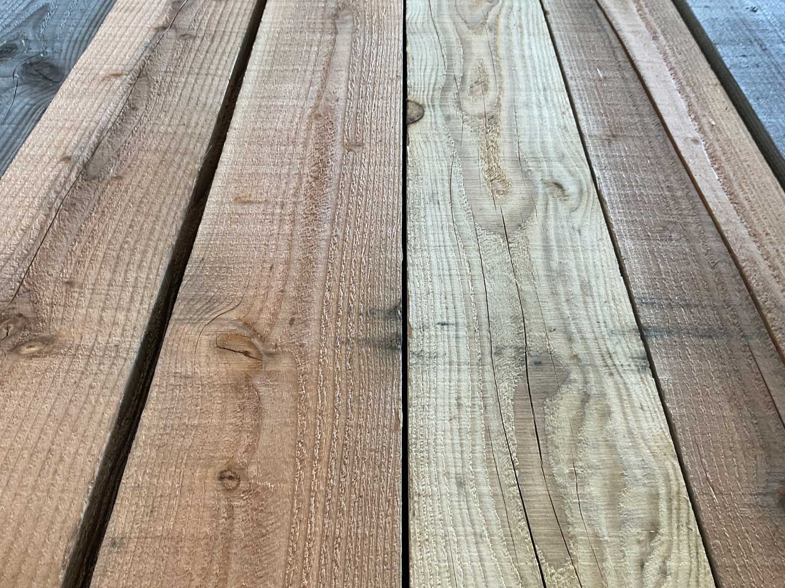Douglas laat zich namelijk erg makkelijk verwerken en heeft een prachtige uitstraling. Het hout komt uit Europa en heeft onbehandeld een verwachte levensduur van 15 jaar. De duurzaamheid heeft deze houtsoort te danken aan de hoge concentratie hars die zich in het hout bevindt, waardoor het bescherming biedt van binnenuit. Net als bij larikshout kunnen er in het hout noesten en kwasten voorkomen. Blank douglashout heeft van nature een roze/gele kleur en vergrijst mooi. Ook tijdens het vergrijzen blijft de mooie ‘vlam’ in het hout behouden. Houtsoort: Douglas Lengte: 400cm Breedte: 170mm Hoogte: 75mm Kopmaat: 17x7,5