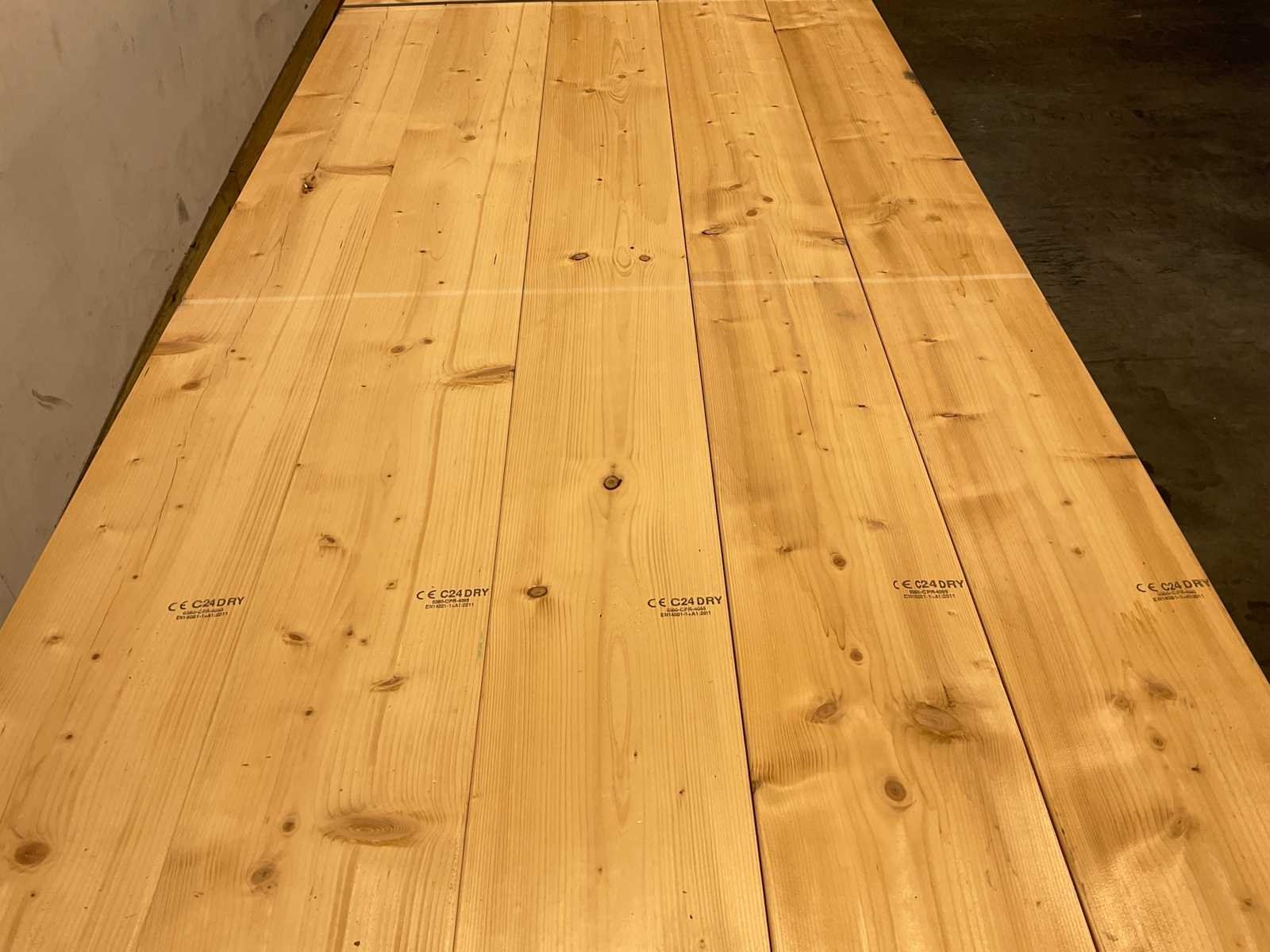 Vuren planken geschaafd, 540 x 23,5 x 3,8 cm dik Model: Plank Lengte: 540cm Breedte: 23.5cm Hoogte: 3.8cm