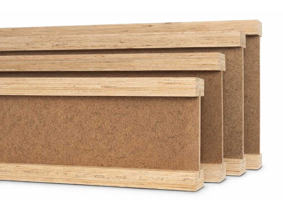 Steico Joist I-ligger - 1300x6x40 cm. Houten I-liggers voor dak-, vloer- en wandconstructies. Lichtgewicht en sterk, met efficiënt materiaalgebruik. Beperkt koudebruggen. Opgebouwd uit flenzen van LVL of massief vuren (ca. 39mm dik) en een 8mm hardboard kern. Industrieel geproduceerd voor constante kwaliteit. Gewicht: 5,2kg/m. Merk: Steico Model: SpanoTech I-Joist Product type: I-ligger Lengte: 1300cm Breedte: 6cm Hoogte: 40cm Materiaal: Hout