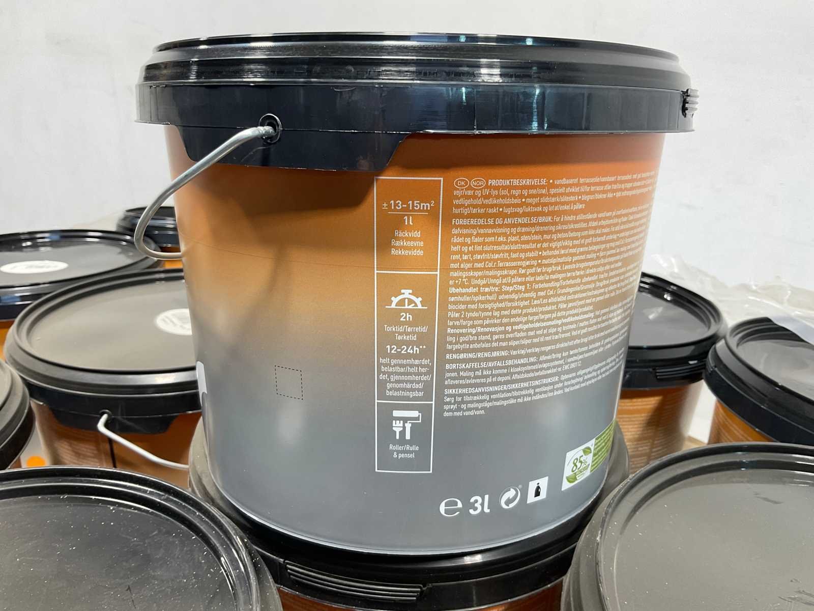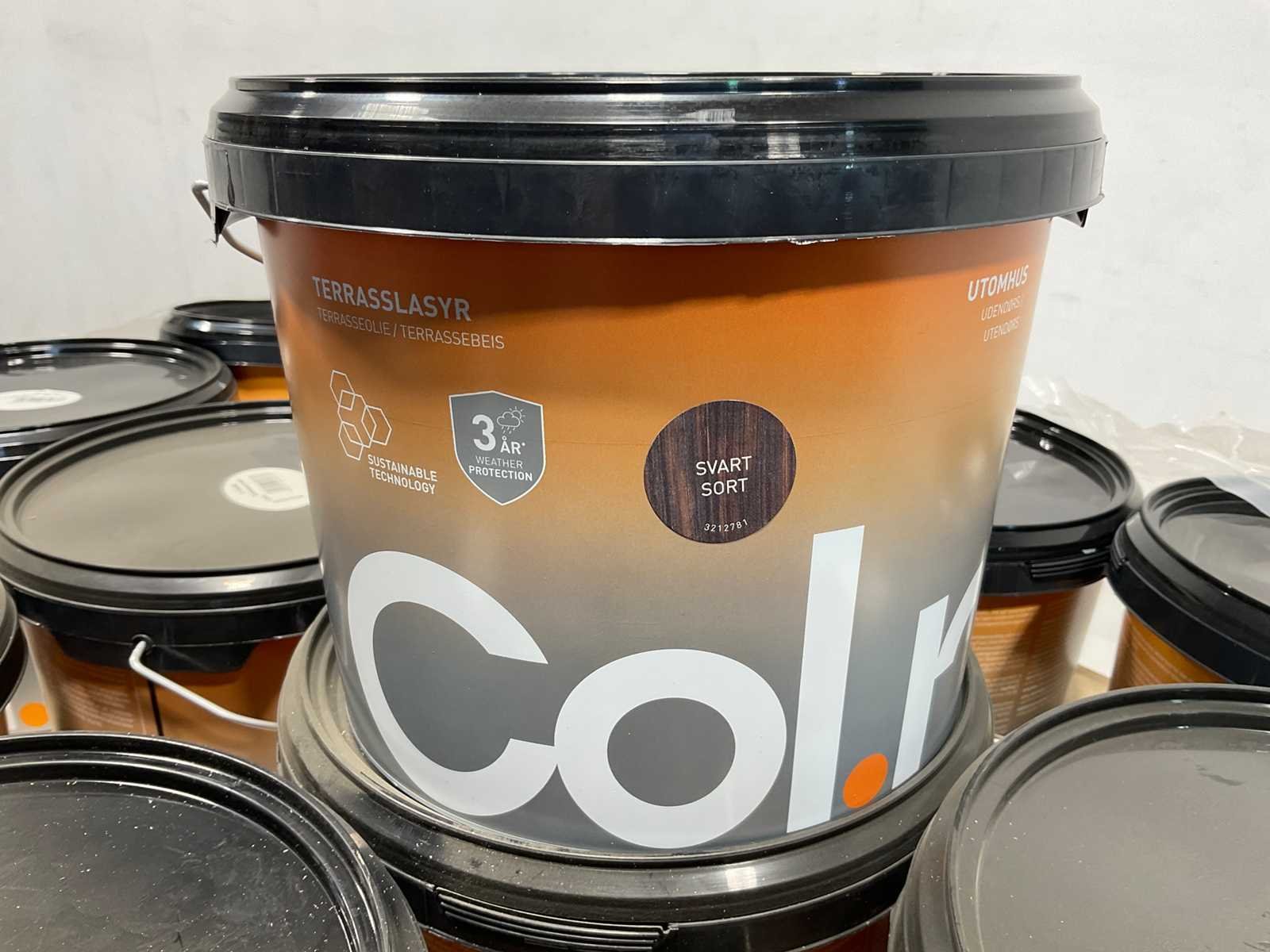 Pallet Col.r tuinbeits - Zwart - 366 liter. Bestaat uit pallet met 122 emmers tuinbeits a 3 liter. Merk: Col.r Kleur: Zwart Type: Tuinbeits