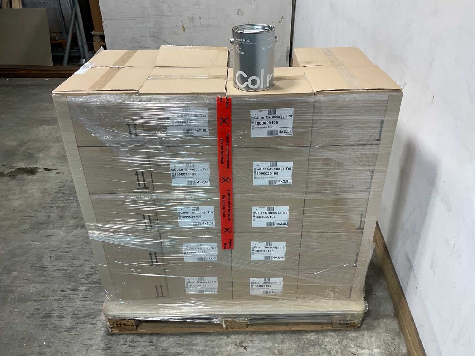 Pallet Col.r grondolie voor hout - transparant - 390 liter. Bestaat uit pallet met 156 emmers grondolie a 2,5 liter. Merk: Col.r Kleur: Transparant Type: Grondolie