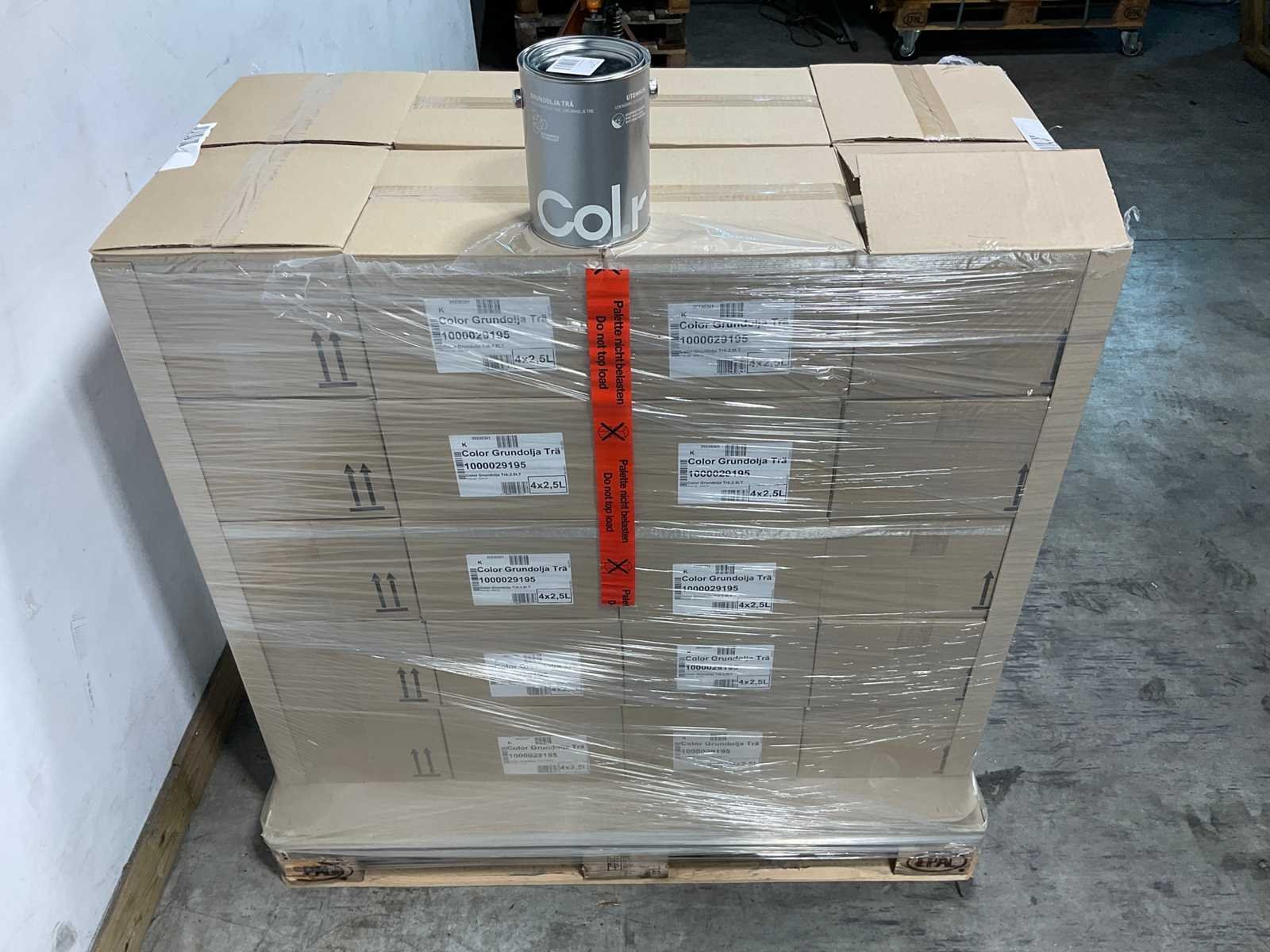 Pallet Col.r grondolie voor hout - transparant - 400 liter. Bestaat uit pallet met 160 emmers grondolie a 2,5 liter. Merk: Col.r Kleur: Transparant Type: Grondolie