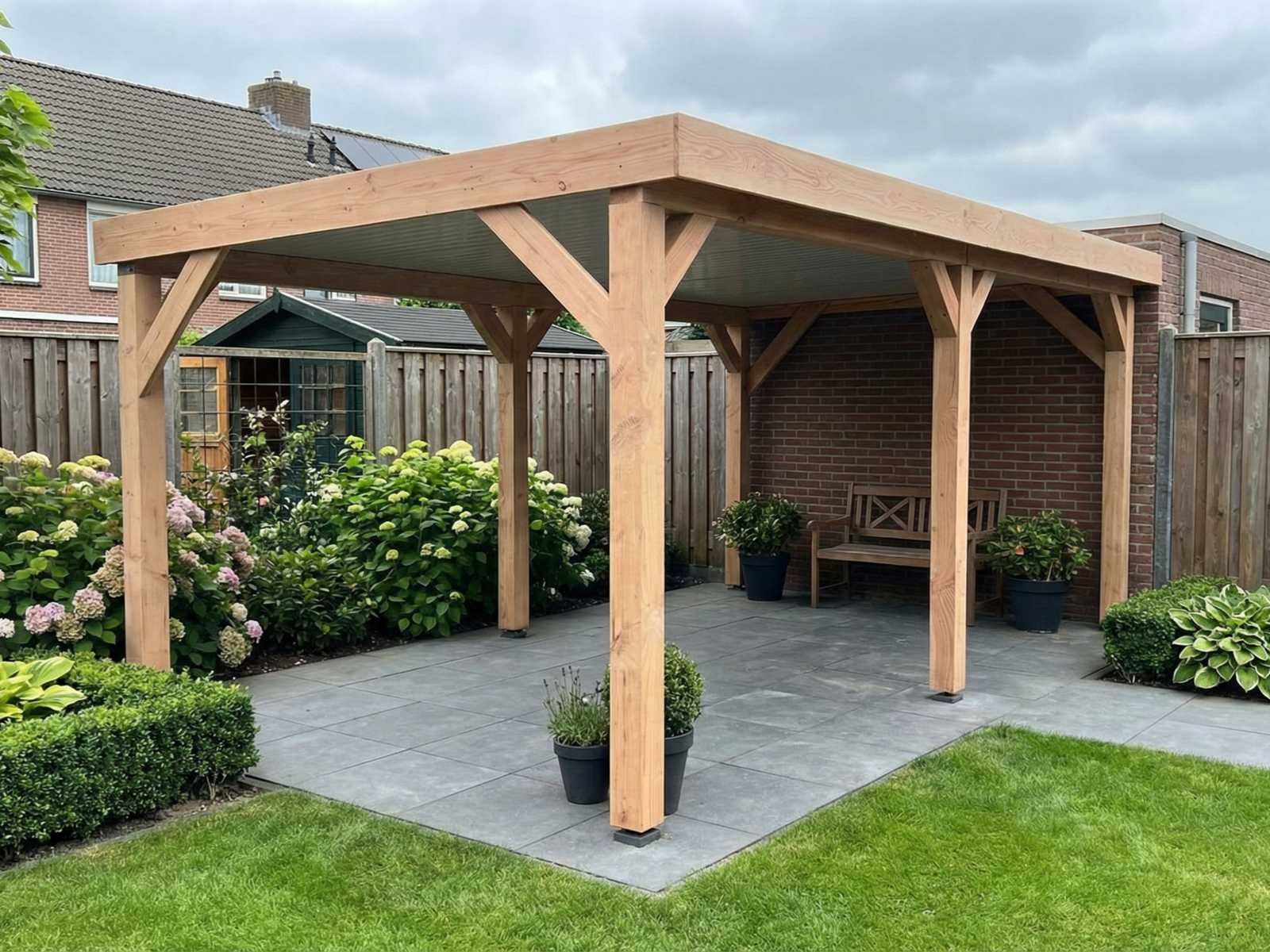 Afmeting betreft maat van het dak. Materiaal: 4x Douglas palen 12x12cm, liggers 12x12cm. Dakbedekking: Sandwich plaat geïsoleerd. Doorloophoogte: 215cm onderzijde, draagbalk aan de voorzijde. Voorzien van montagemateriaal en handleiding. Overkapping wordt als een bouwpakket geleverd. Afm: pakket 300x125x80cm De afmetingen van dit pakket zijn: 300x125x100 cm, 650 kg. Omschrijving dakplaat: Sandwich plaat is een populair en duurzaam bouwmateriaal om daken te isoleren. Deze bestaat uit twee stalen of aluminium panelen met daartussen een laag isolerend materiaal. Deze is geheel onderhoud vrij en heel gemakkelijk te monteren. Product type: Vrijstaand Gewicht: 650kg Lengte: 300cm Breedte: 300cm Materiaal: Douglas geschaafd