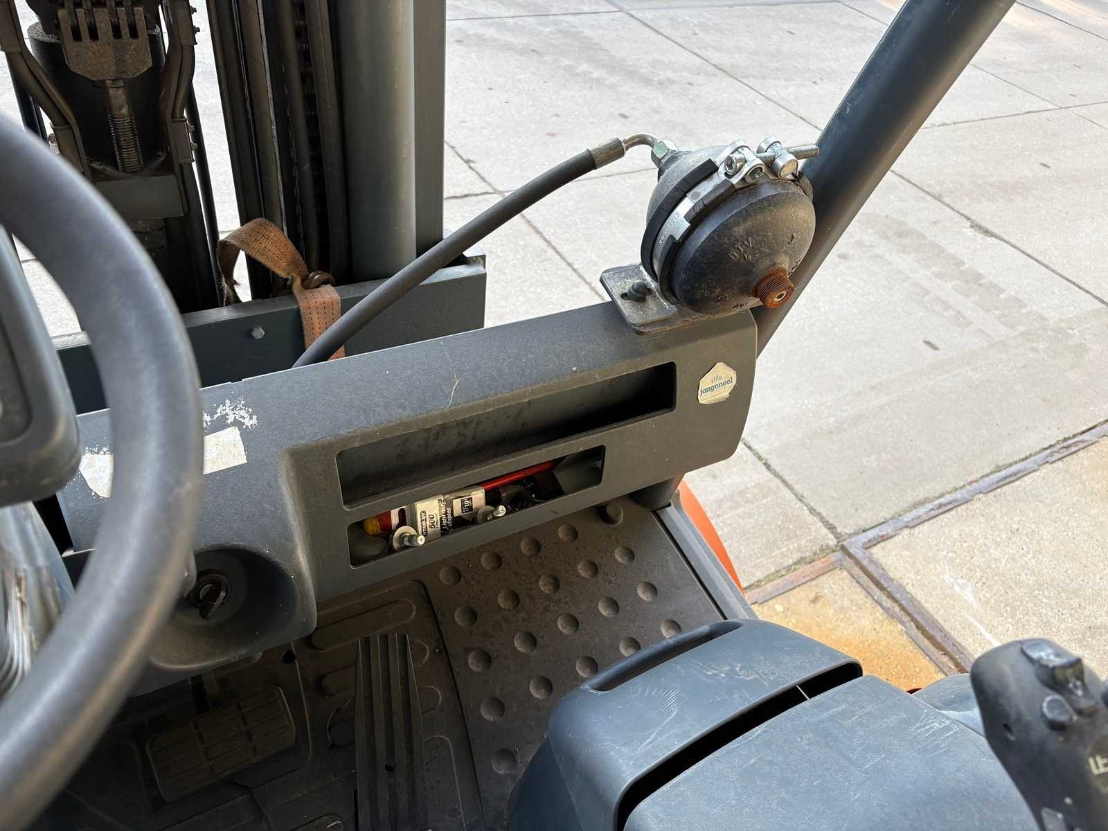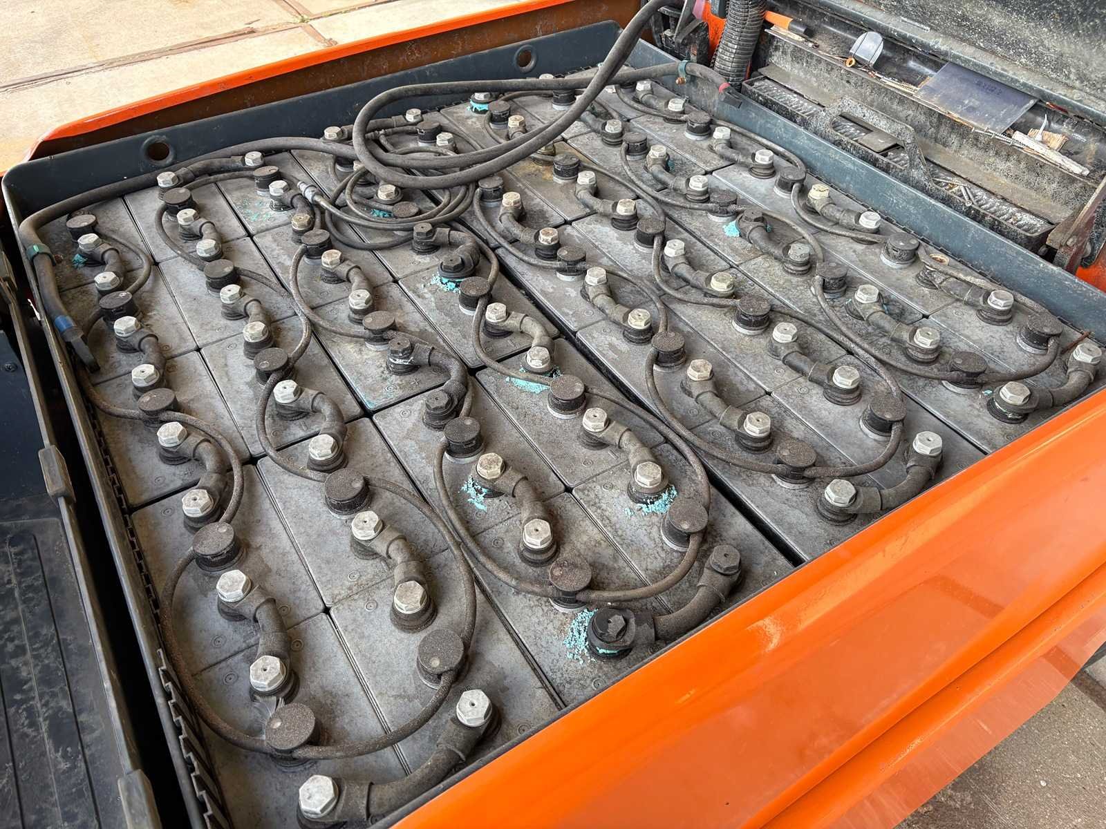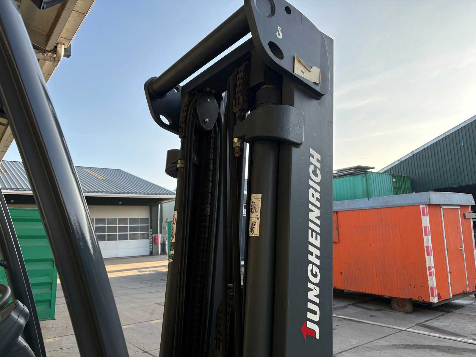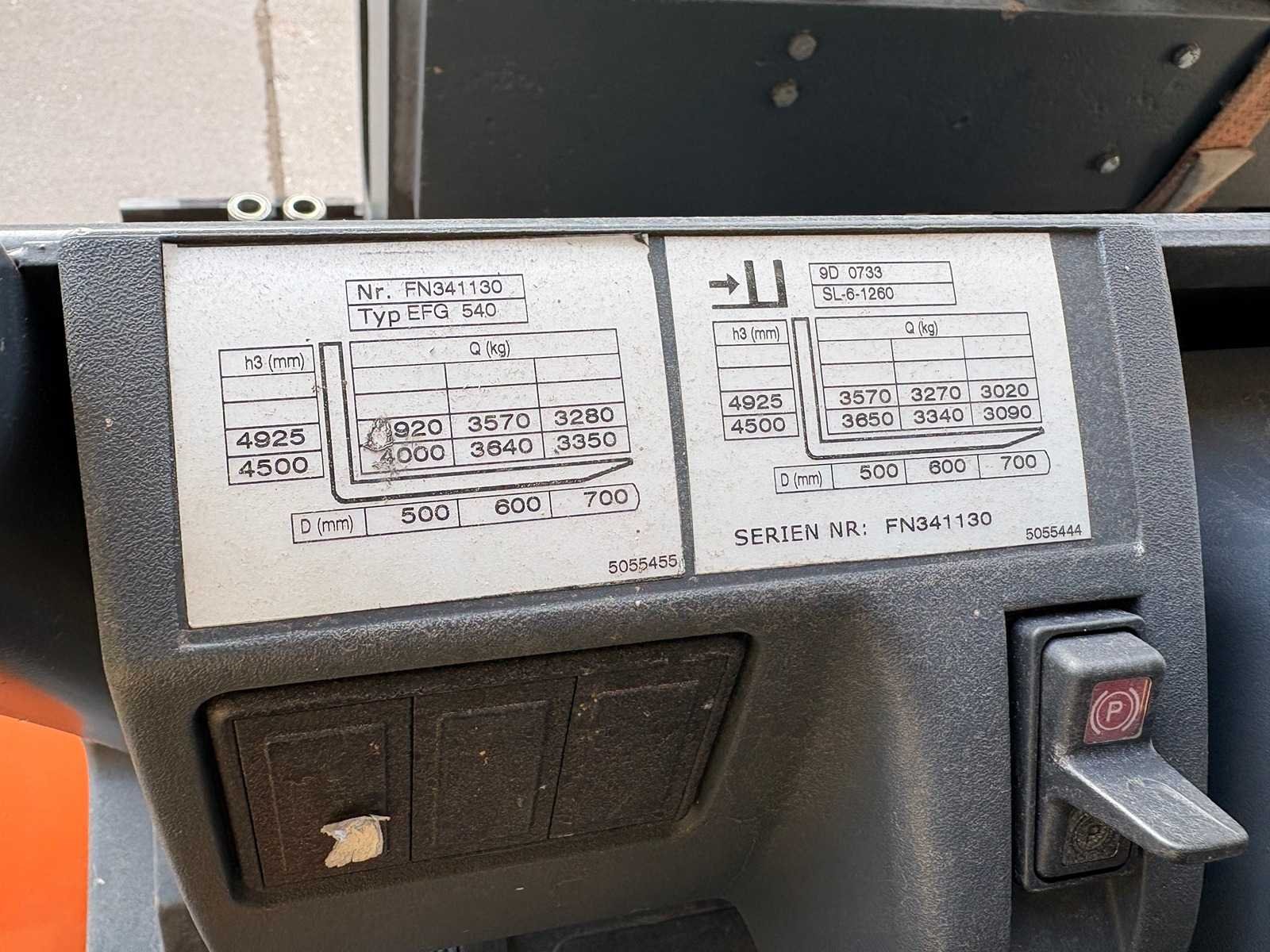 Grammer stoel; Blaupunkt radio; joystickbediening; accu is leeg/mogelijk defect; werking onbekend; zonder oplader; Merk: Jungheinrich Type: EFG 540 Serienummer: FN341130 Brandstof: Elektrisch Aantal wielen: 4 Triple mast: true Hefvermogen: 4000kg Hefhoogte: 4925mm Minimale doorrijhoogte: 2140mm Totale afmeting L: 2800mm Totale afmeting Breedte: 1350mm Totale afmeting Hoogte: 2140mm