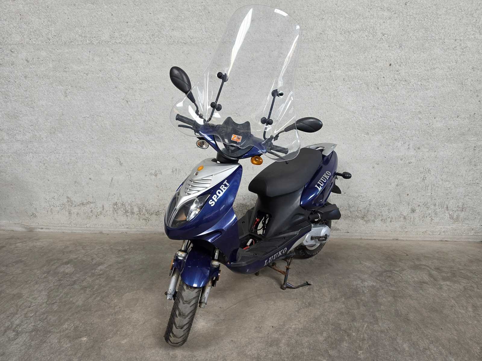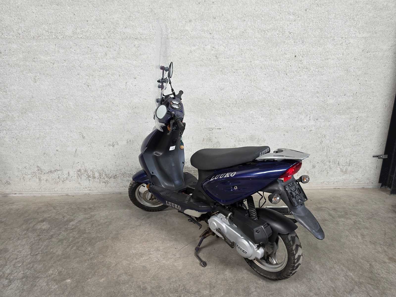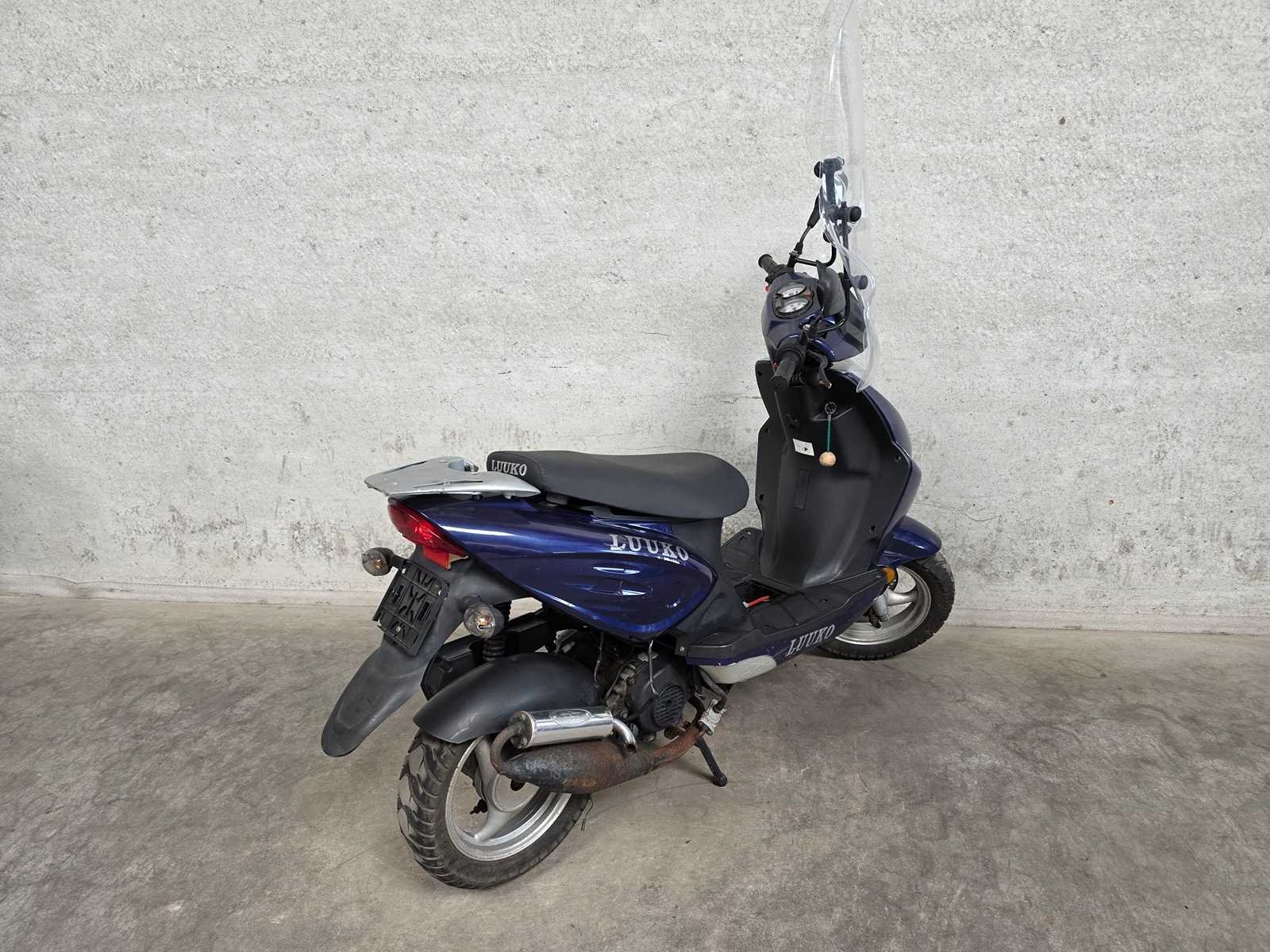 1 sleutel - uitsluitend voor onderdelen - geen kenteken - technische / onderhoud staat onbekend - Merk: Luuko Model: Snorscooter Type: Sport Handelsbenaming: V641 Transmissie: Automatisch (null) Brandstof: Benzine Kleur: paars grijs
