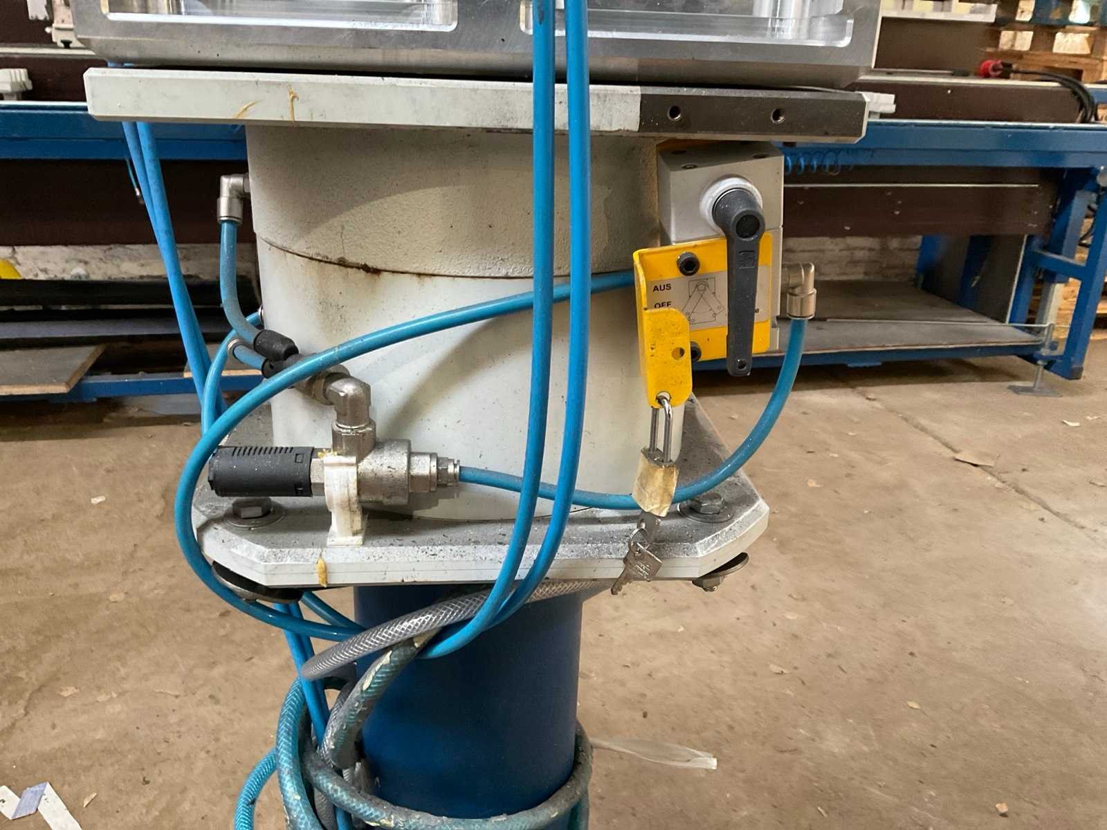 Met voetbediening ; slag 30mm Werkdruk 0'8 pma' Aansluiting perslucht Merk: Sapa building system Type: TG0092A Bouwjaar: 2017 Serienummer: 0203 Aantal cilinders: 1 Machinegewicht: 70kg Afmeting l: 700mm Afmeting b: 900mm Afmeting h: 1400mm