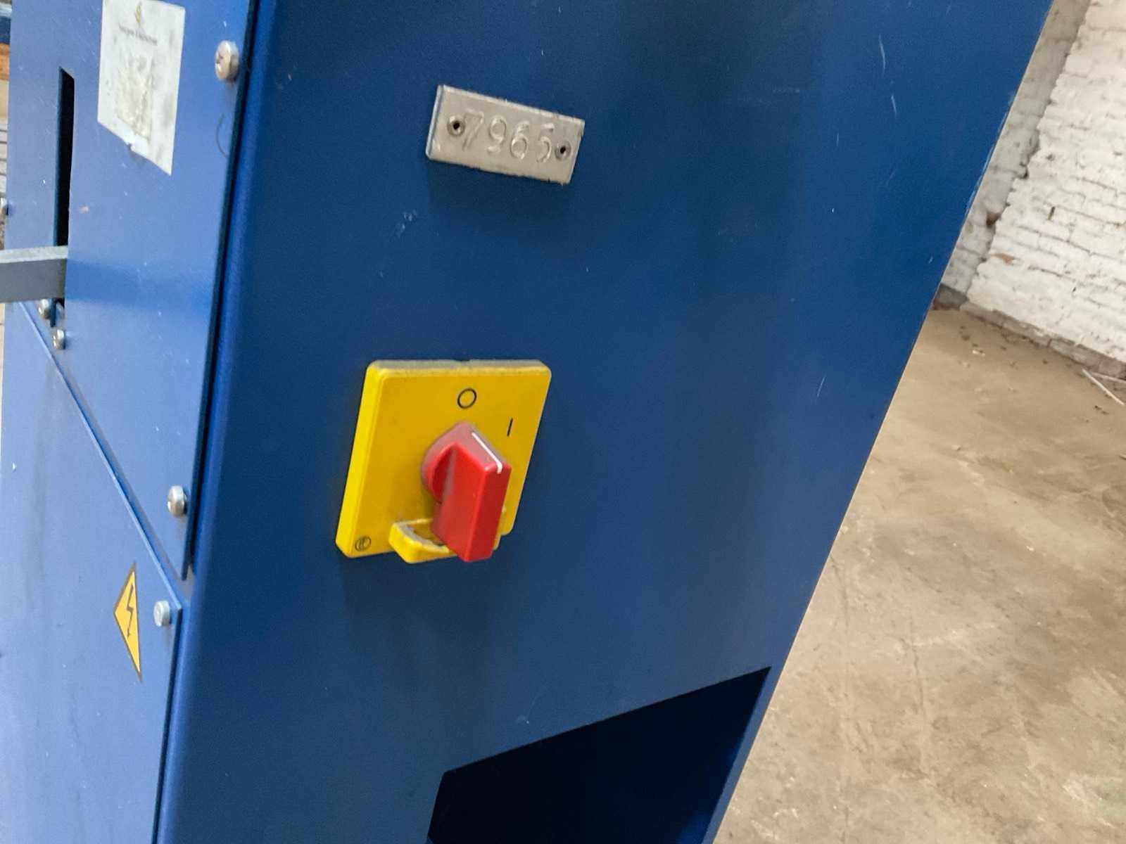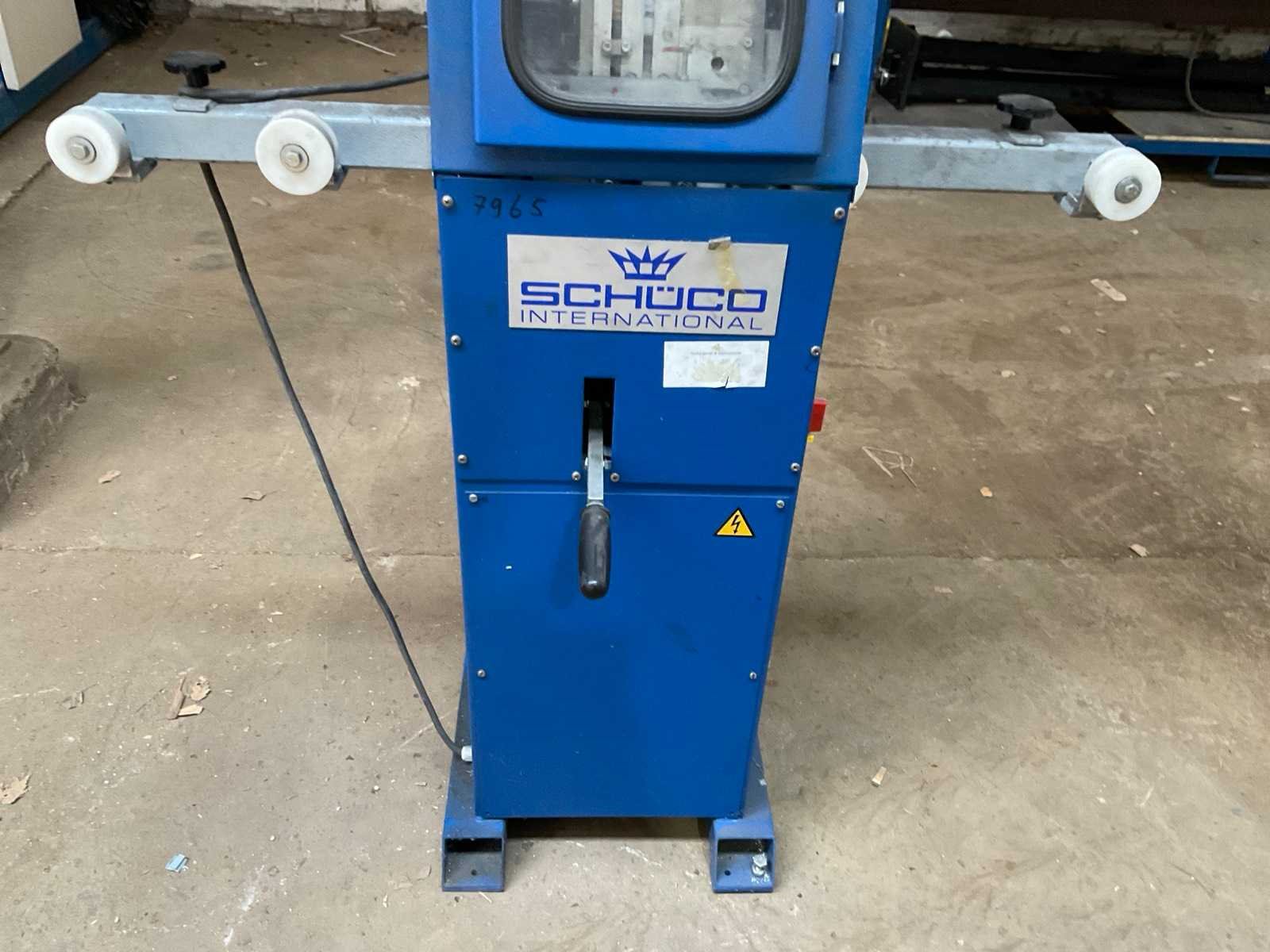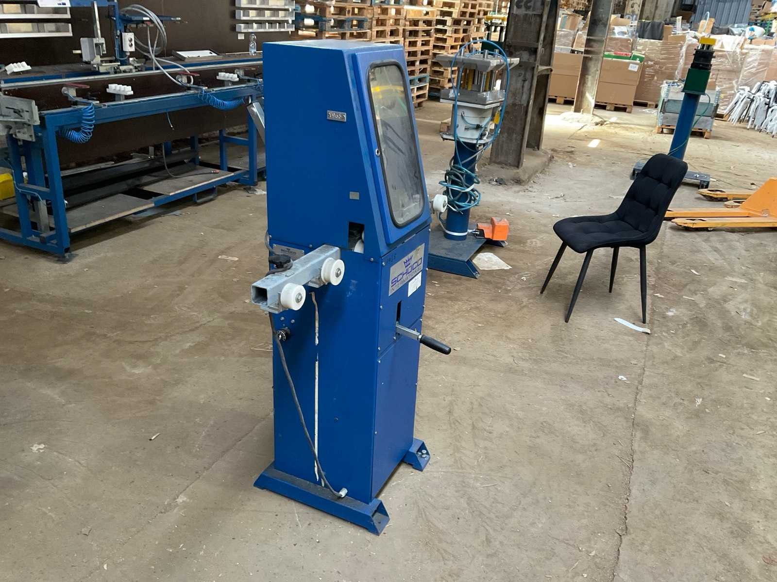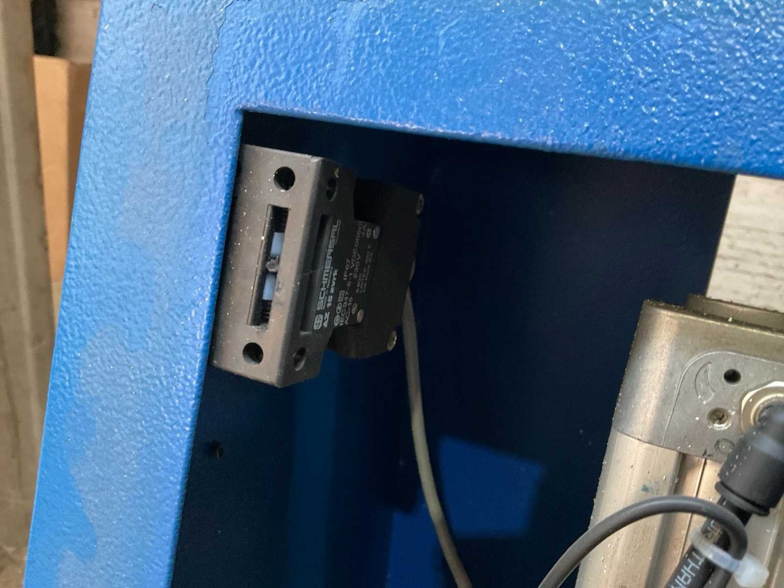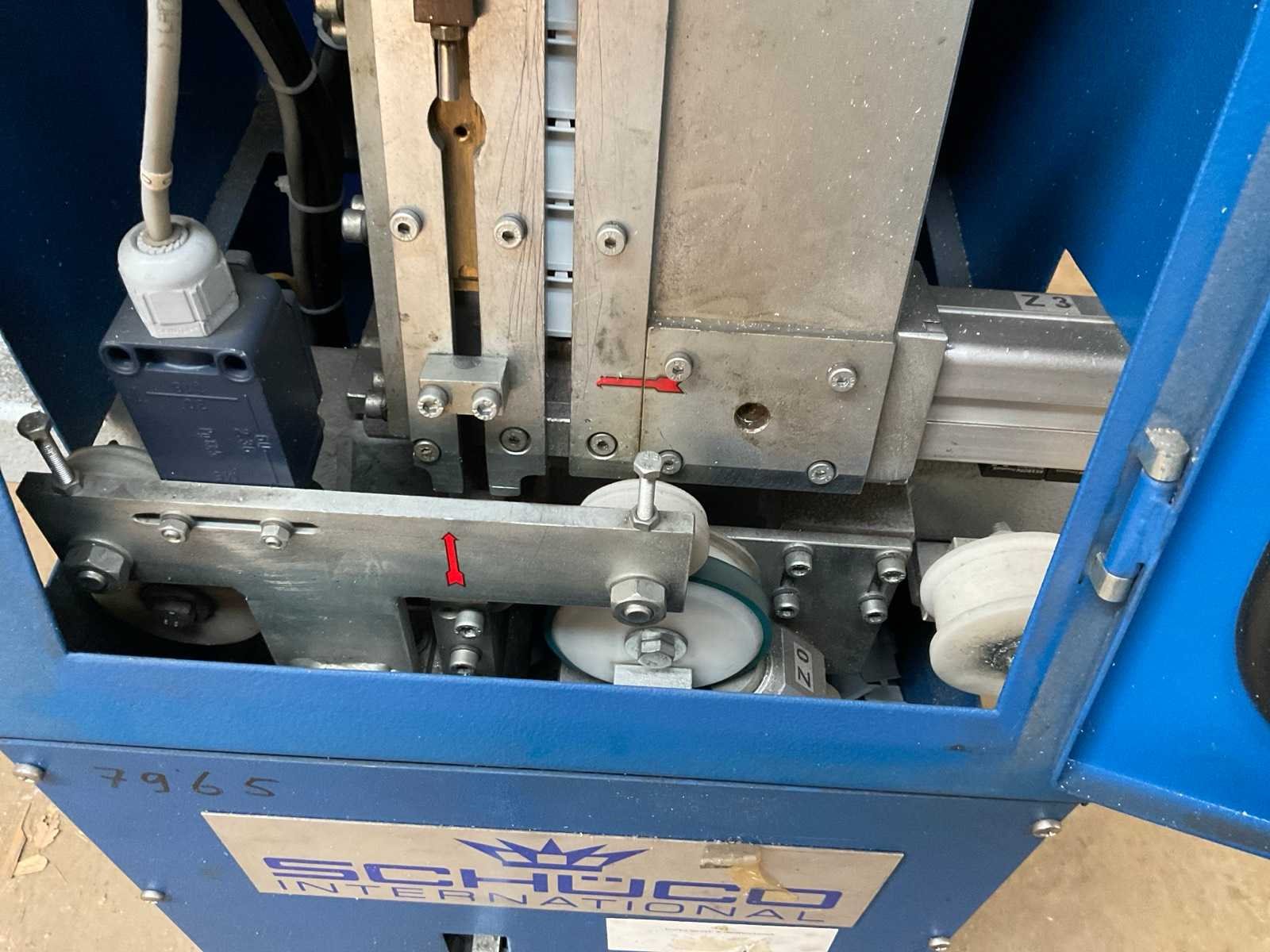 Pneumatische klipsautomat voor aluminium glaslatten en glasclips Werkdruk 0,8mpa Luchtverbruik 1,6l/hub Merk: Schüco Type: KSM 235 Bouwjaar: 2001 Serienummer: 694-c551 Slag: 30mm Aansluiting: 230V Machinegewicht: 150kg Afmeting l: 880mm Afmeting b: 1200mm Afmeting h: 1470mm