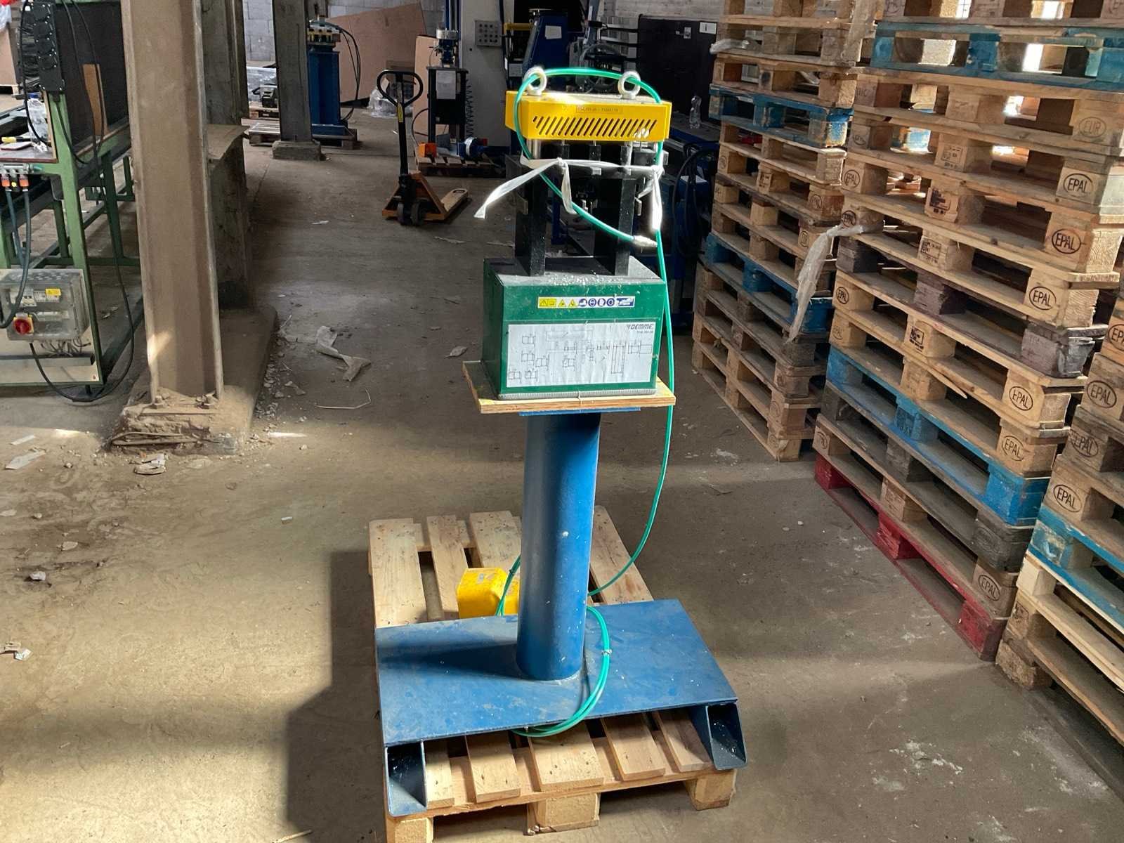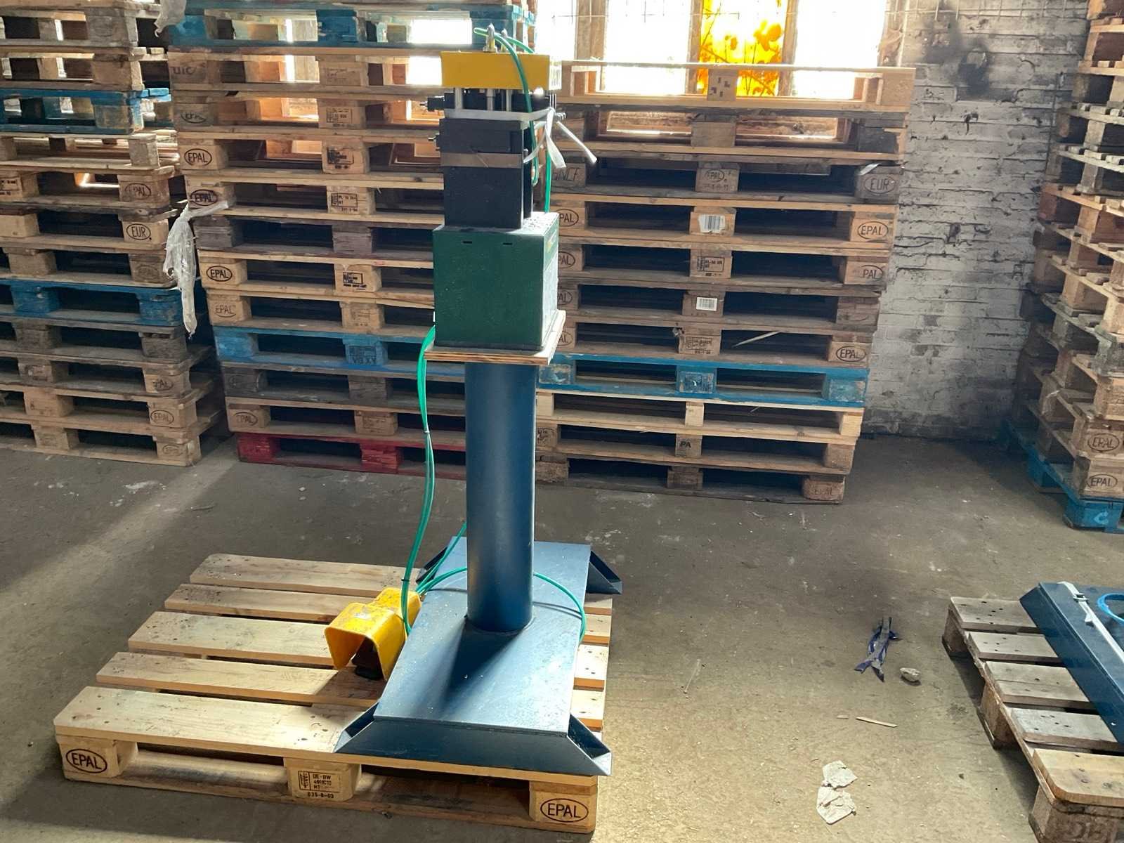 Met voetbediening Pneumatische werking Merk: Oemme Type: T1K-701-00 Serienummer: 73284/15 Totale afmeting L: 700mm Totale afmeting Breedte: 900mm Totale afmeting Hoogte: 1450mm Eigen gewicht: 68kg