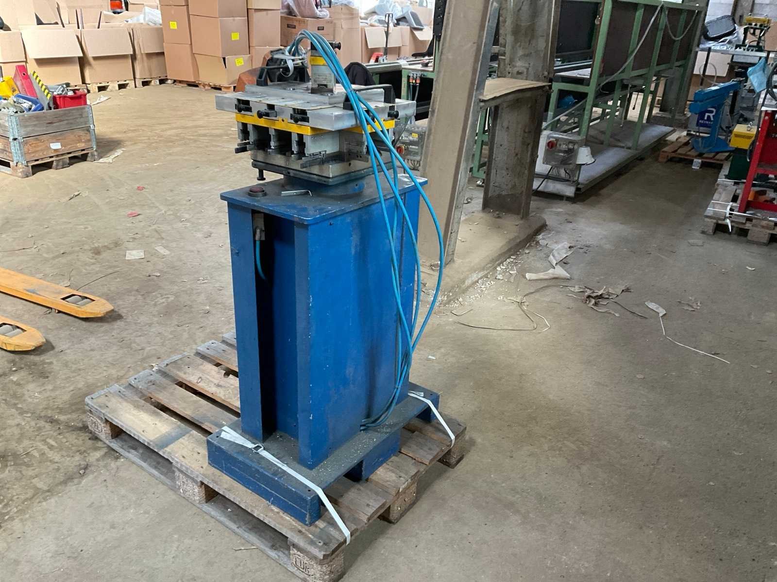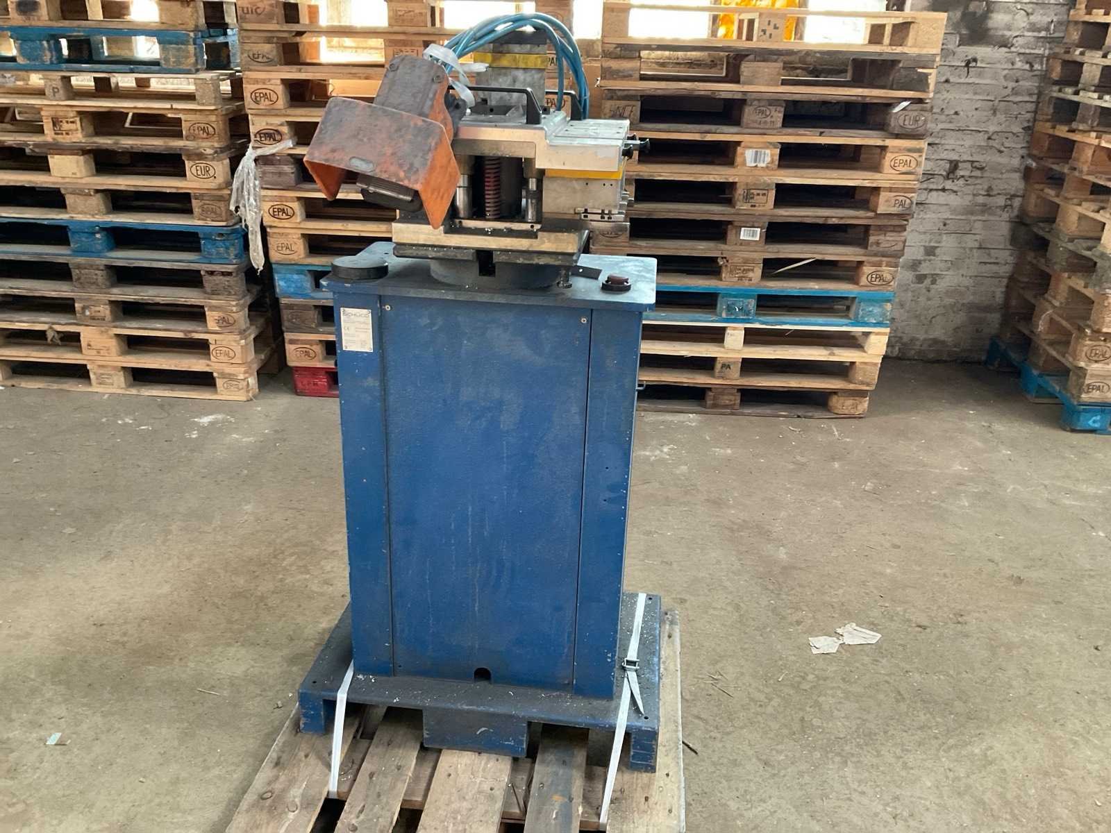 Slag 20mm werkdruk 0,7MPa incl voetbediening Merk: Schüco Type: 280 580 Machinegewicht: 130kg Afmeting l: 450mm Afmeting b: 700mm Afmeting h: 1400mm