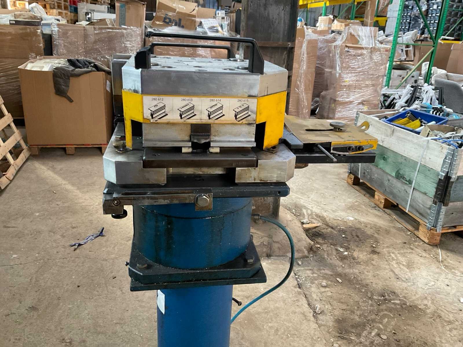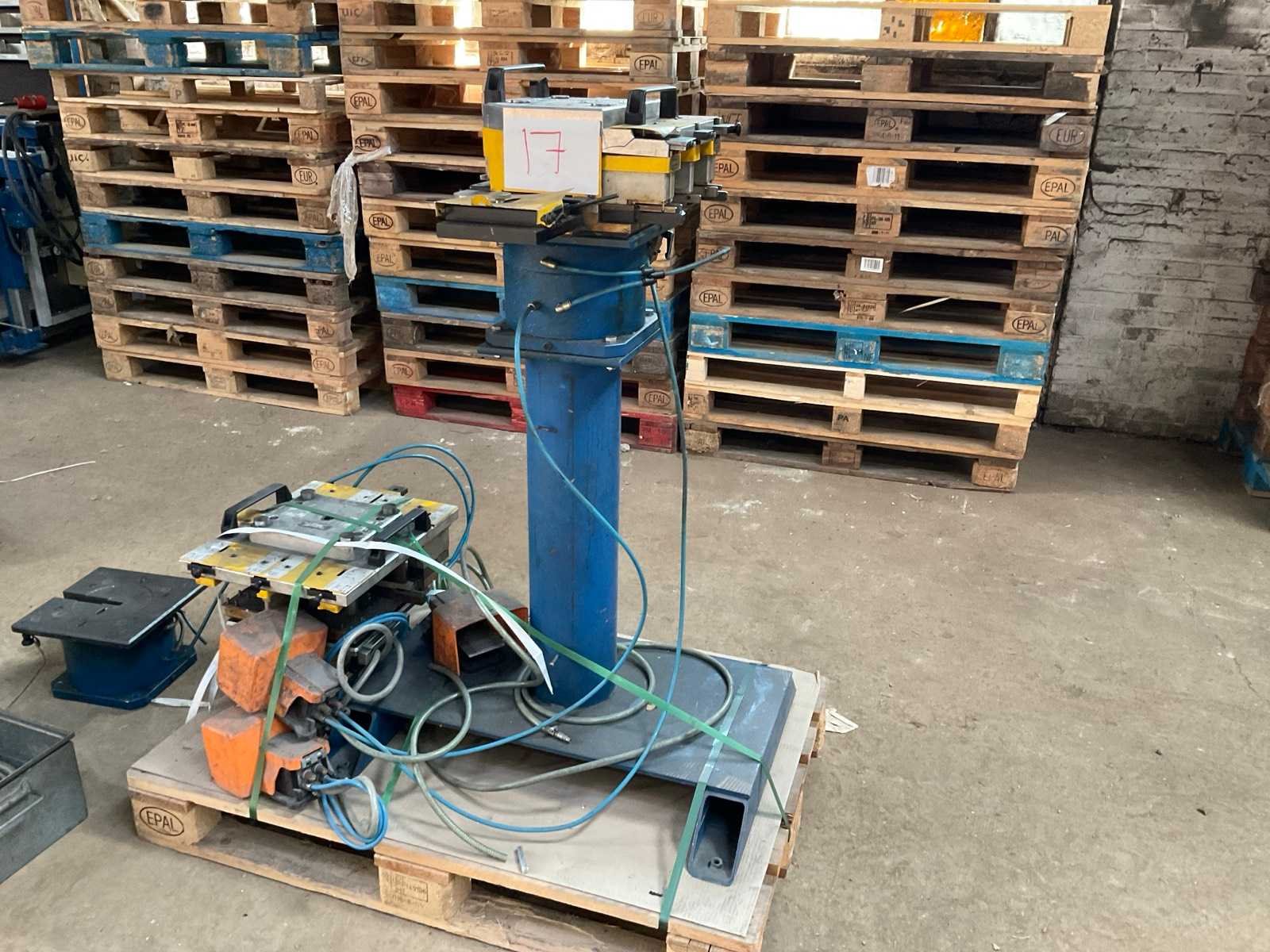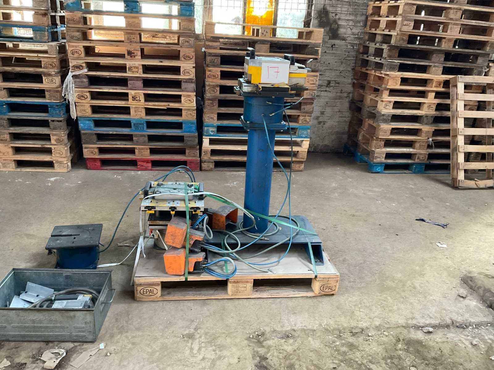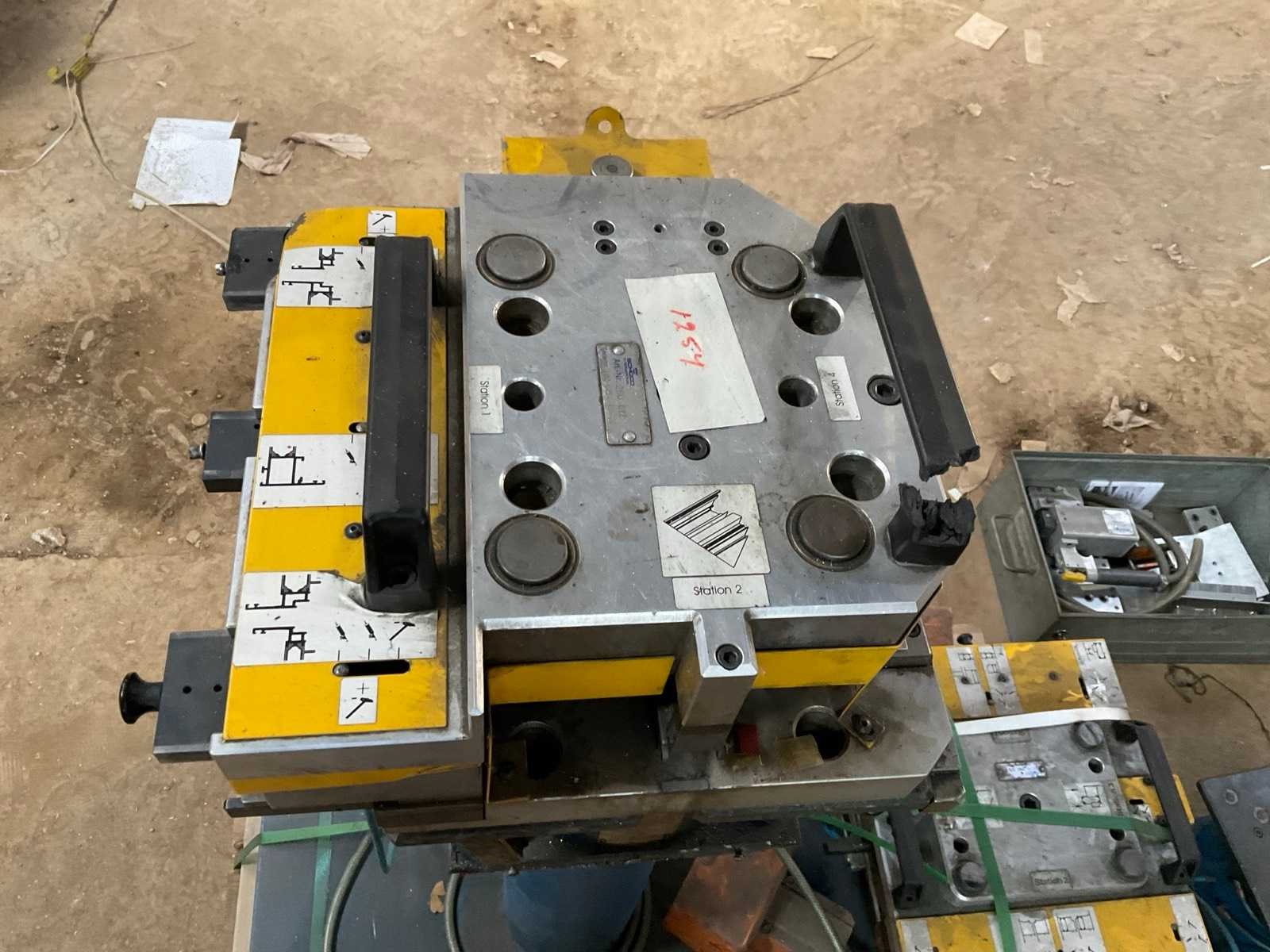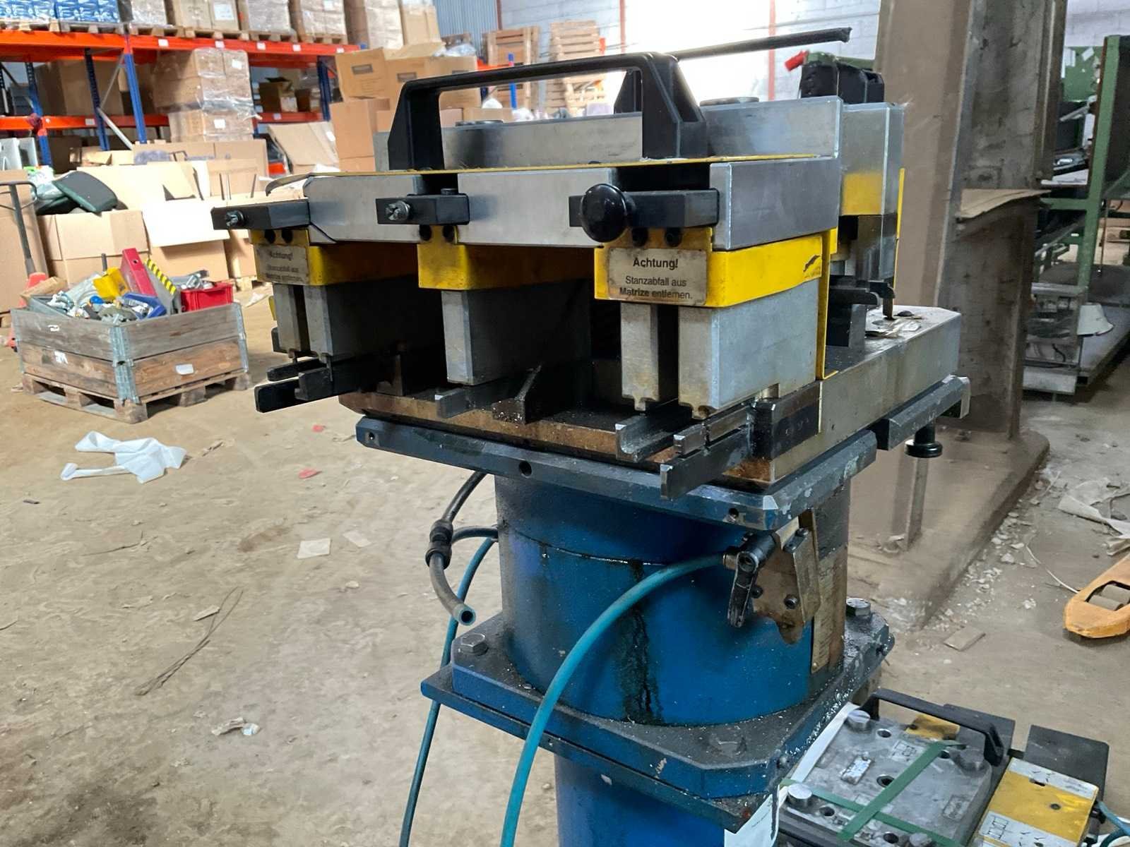 Incl diverse persgereedschappen en 3x voetbediening pneumatische aansluitingen aluminium profiel mallen gereedschap metalen bak. Voor aluminium raam en deurprofielen hoekverbindingen Merk: Schüco Type: Basispresse Bouwjaar: 2004 Serienummer: 792-484 Slag: 20mm