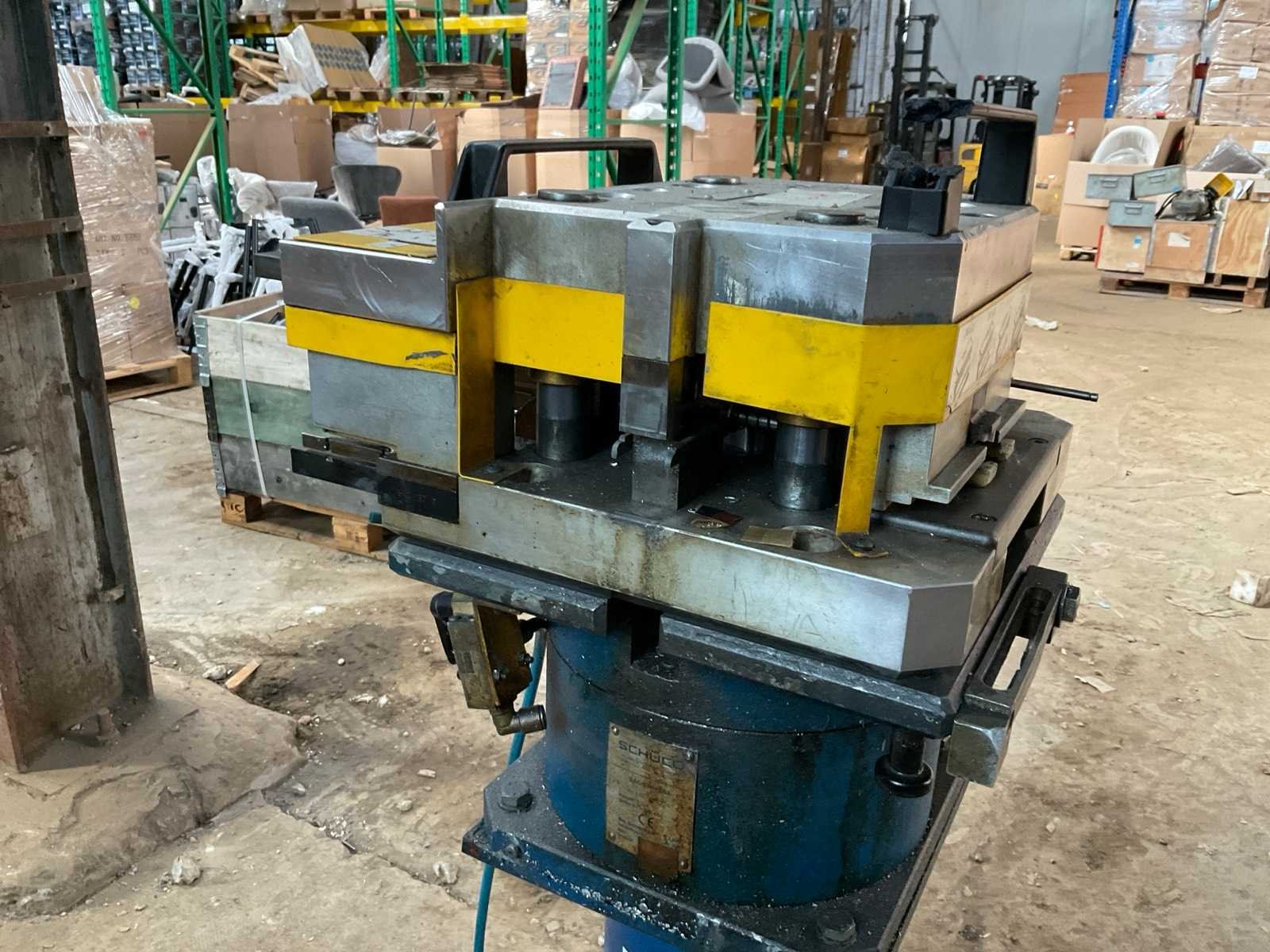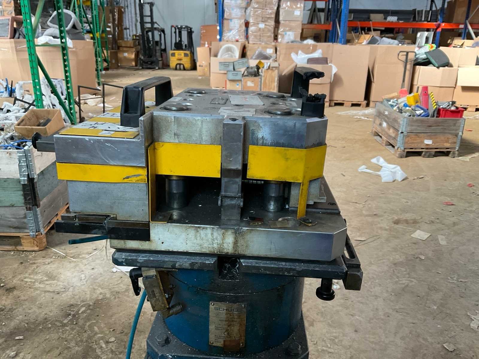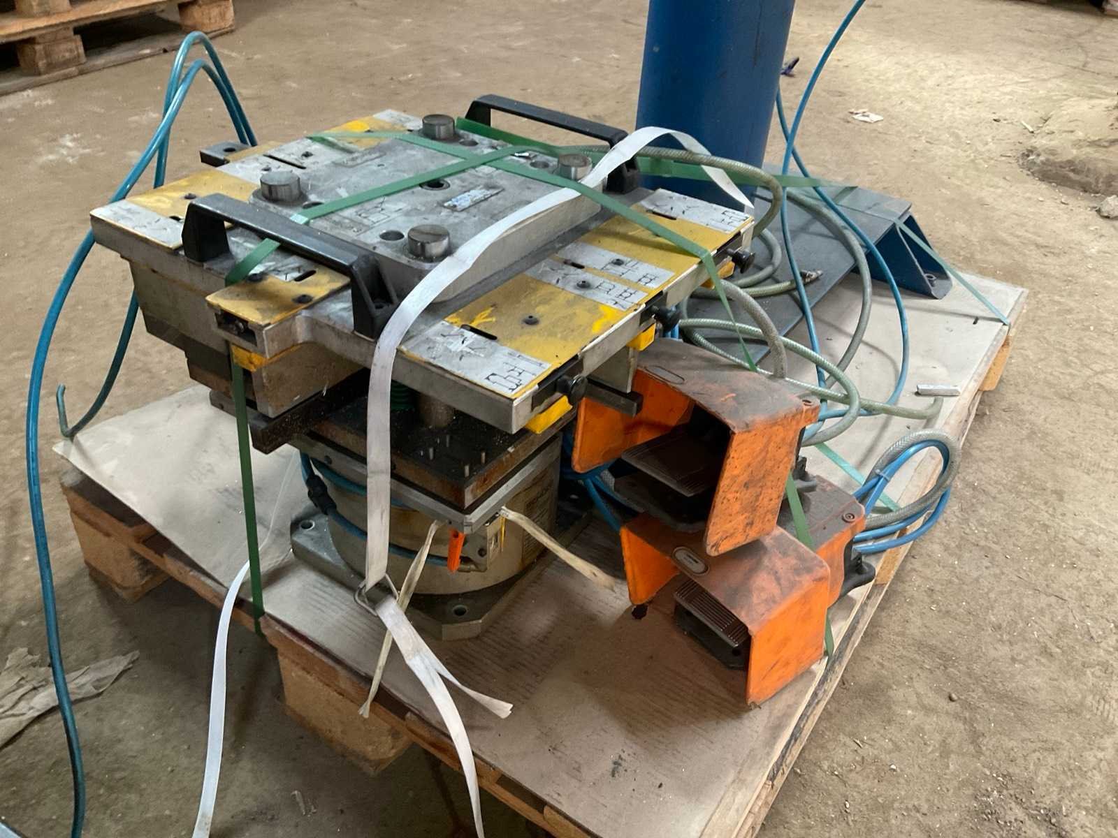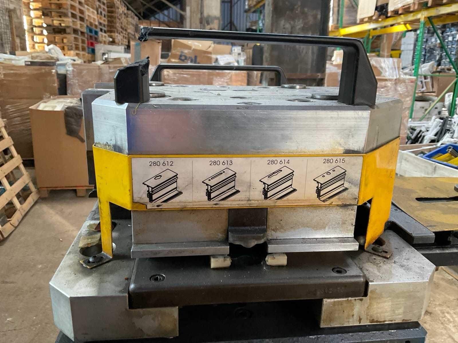 Incl diverse persgereedschappen en 3x voetbediening pneumatische aansluitingen aluminium profiel mallen gereedschap metalen bak. Voor aluminium raam en deurprofielen hoekverbindingen Merk: Schüco Type: Basispresse Bouwjaar: 2004 Serienummer: 792-484 Slag: 20mm