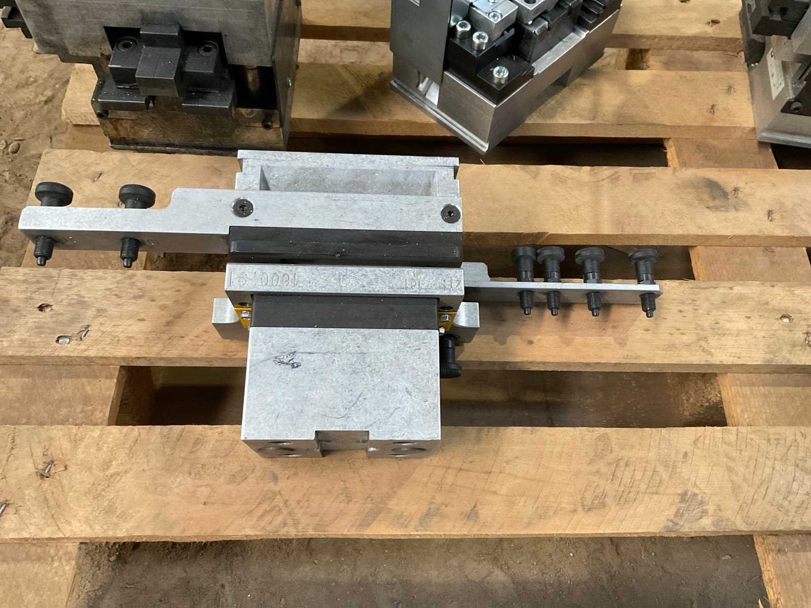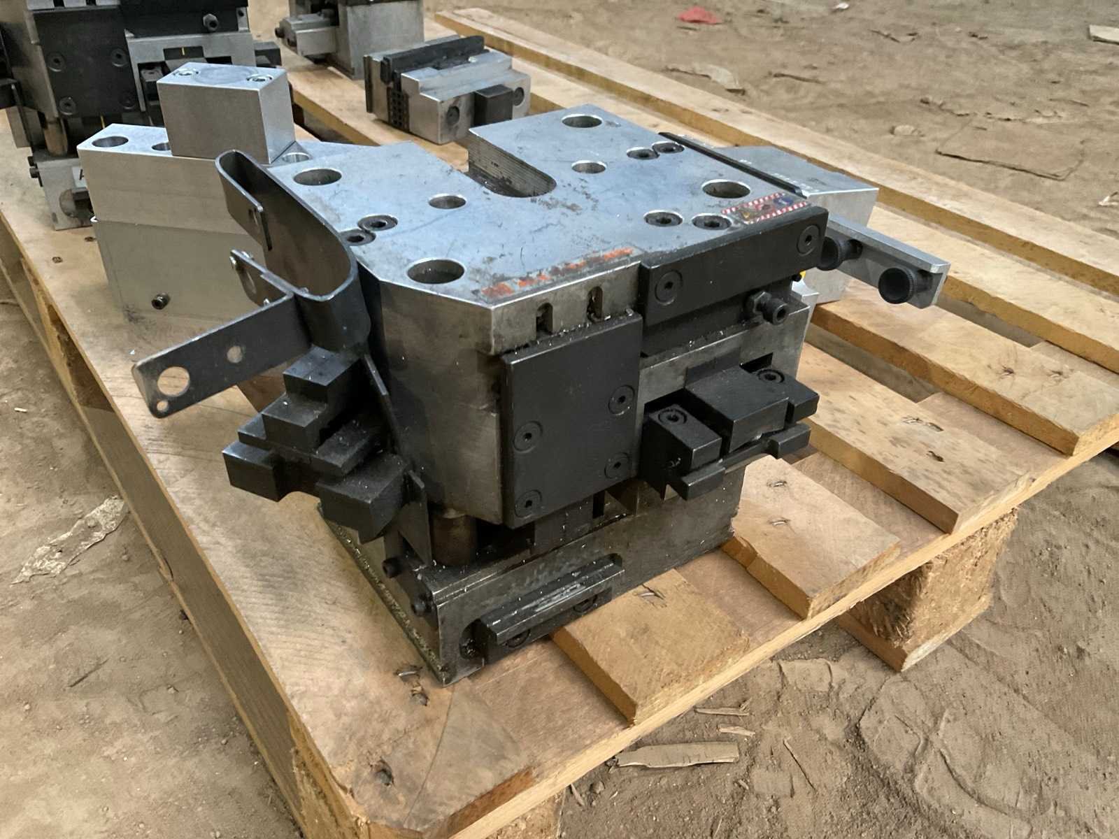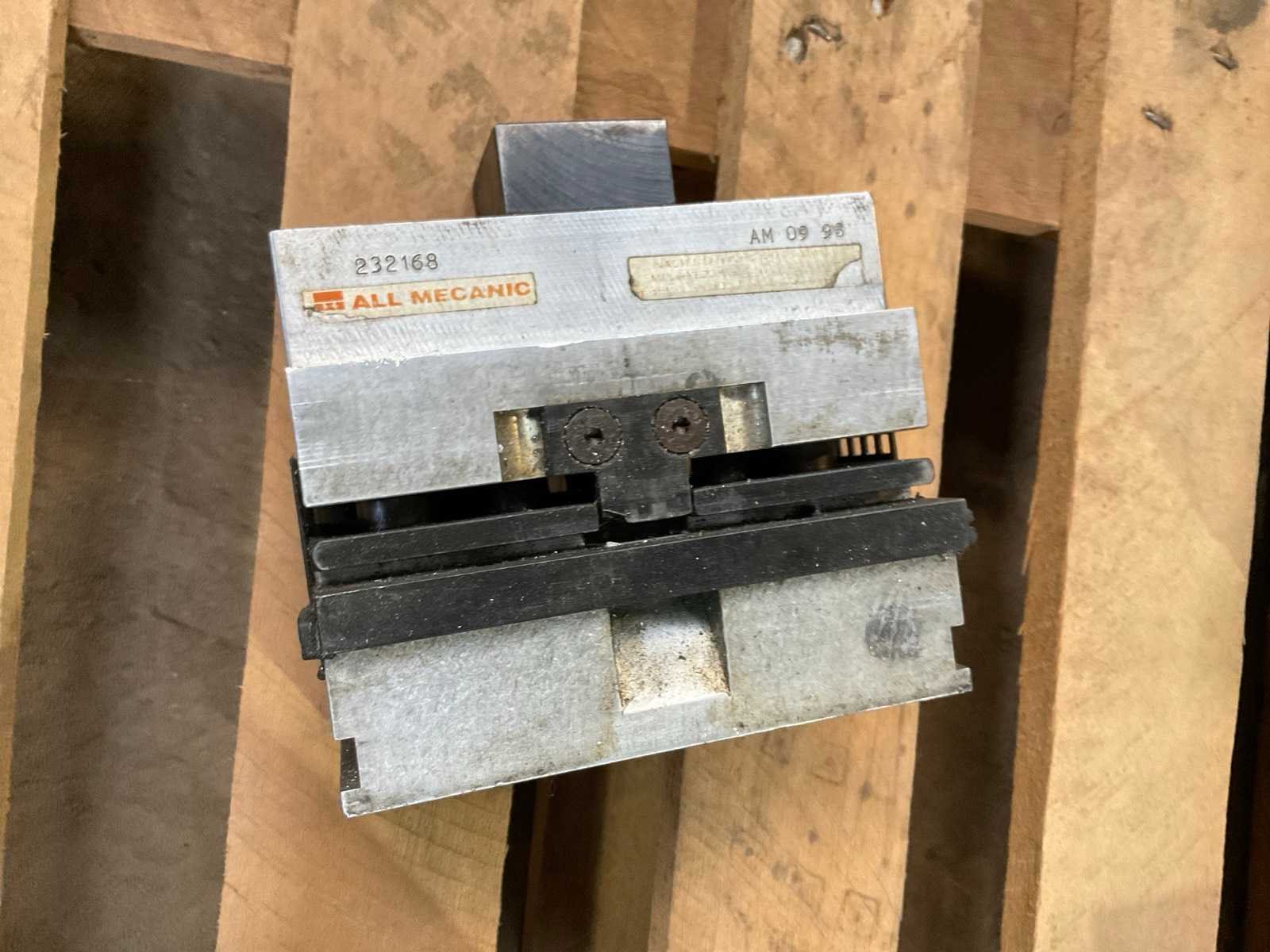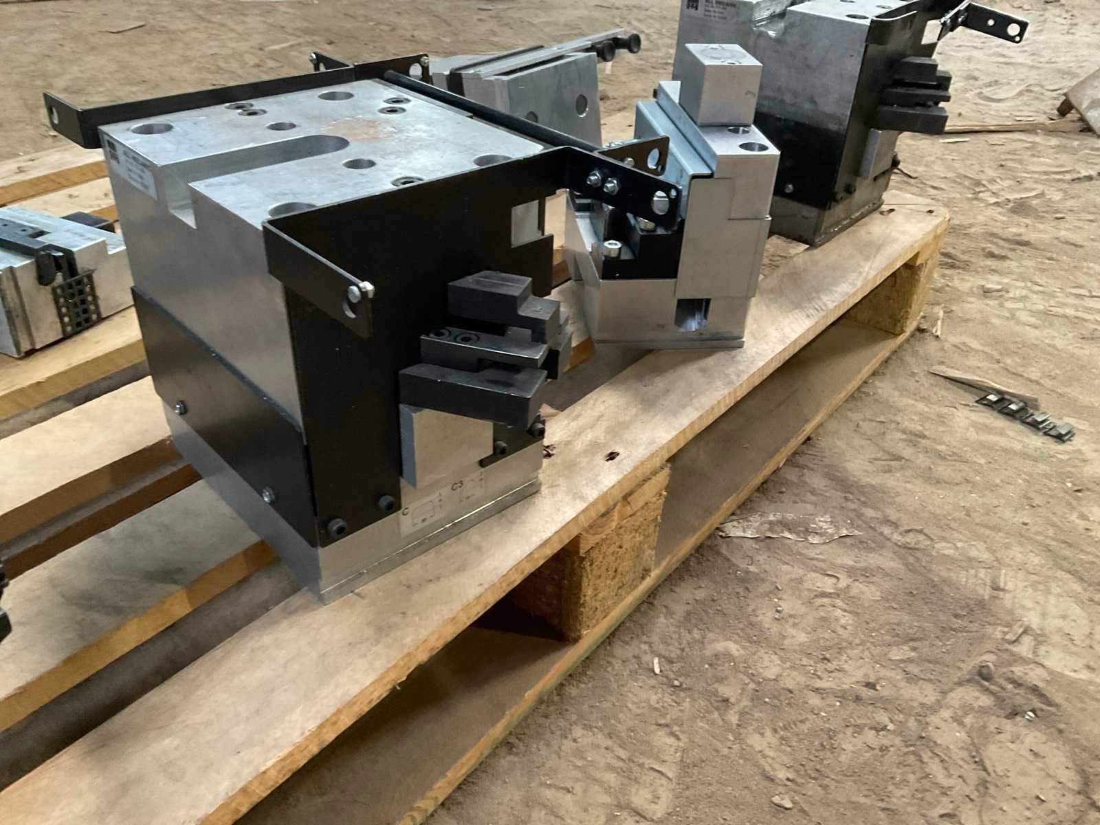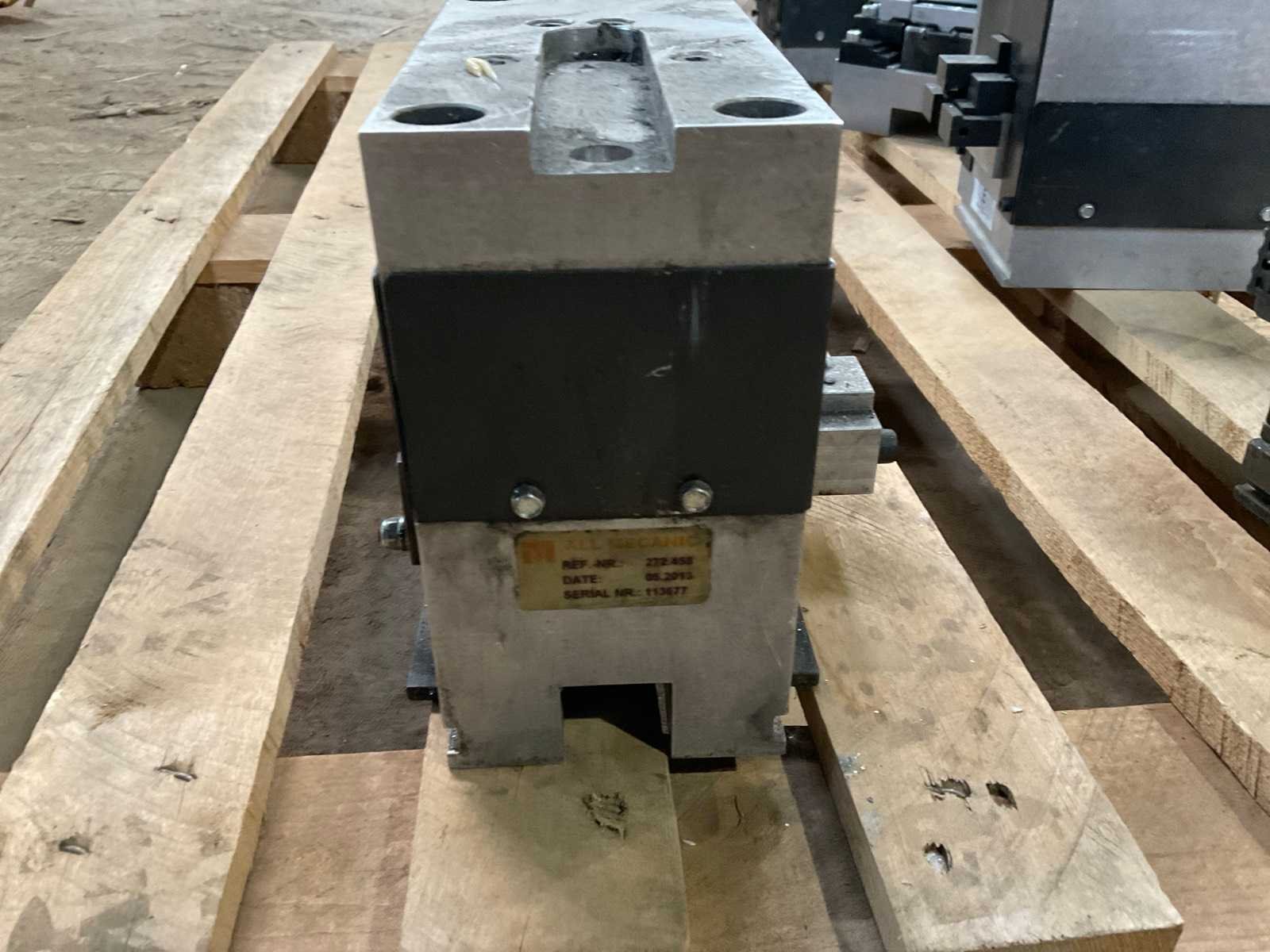 Partij industriële pons- en opspanmodules van het merk All Mecanic voor gebruik in aluminium profielbewerkingslijnen. De set bestaat uit meerdere zware stalen en aluminium toolingmodules die gebruikt worden voor positioneren, klemmen en ponsen van aluminium profielen in een productieopstelling. De modules zijn afkomstig uit een industriële productieomgeving en tonen gebruikssporen passend bij normaal gebruik. Onder andere aanwezig: meerdere All Mecanic ponsmodules profielpositioneerblokken opspanunits lineaire geleidingselementen toolingmodules voor profielbewerking Een van de modules draagt het label All Mecanic SPR 501 (2021). Geschikt als reserveonderdelen, uitbreiding van bestaande profielbewerkingslijnen of voor industriële toolingtoepassingen. Merk: All Mecanic Herkomst: Antwerpen, België Inhoud kavel: meerdere ponsmodules profielklemmodules positioneerunits opspanblokken geleidingsdelen