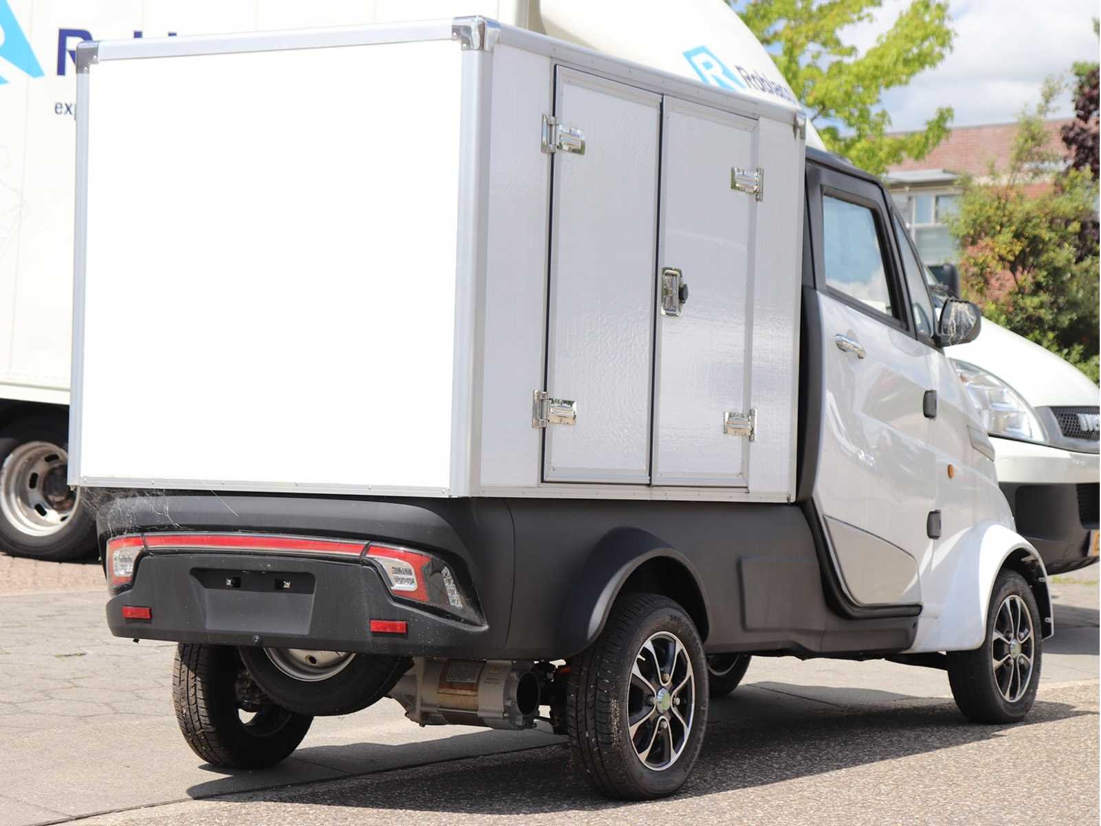 LET OP KLEUR IS ZWART (ZIE LAATSTE FOTO ALS KLEUR VOORBEELD) ✓ 60V + 206 Ah LiFePo4 Batterij ✓ 5000 W motor (oplaadtijd: 4/6 uur) ✓ Max. snelheid: 52 km/u ✓ Actieradius: 170 km ✓ Rijbewijs B ✓ Openslaande zijkanten “wings” Merk: E-Zi Type: 2.0 Model: Space Kleur: Zwart Bouwjaar: 2023 Snelheid: 52km/h Afgelezen kilometerstand: 1km Gewicht: 510 Lengte: 3600 Breedte: 1345 Hoogte: 1765