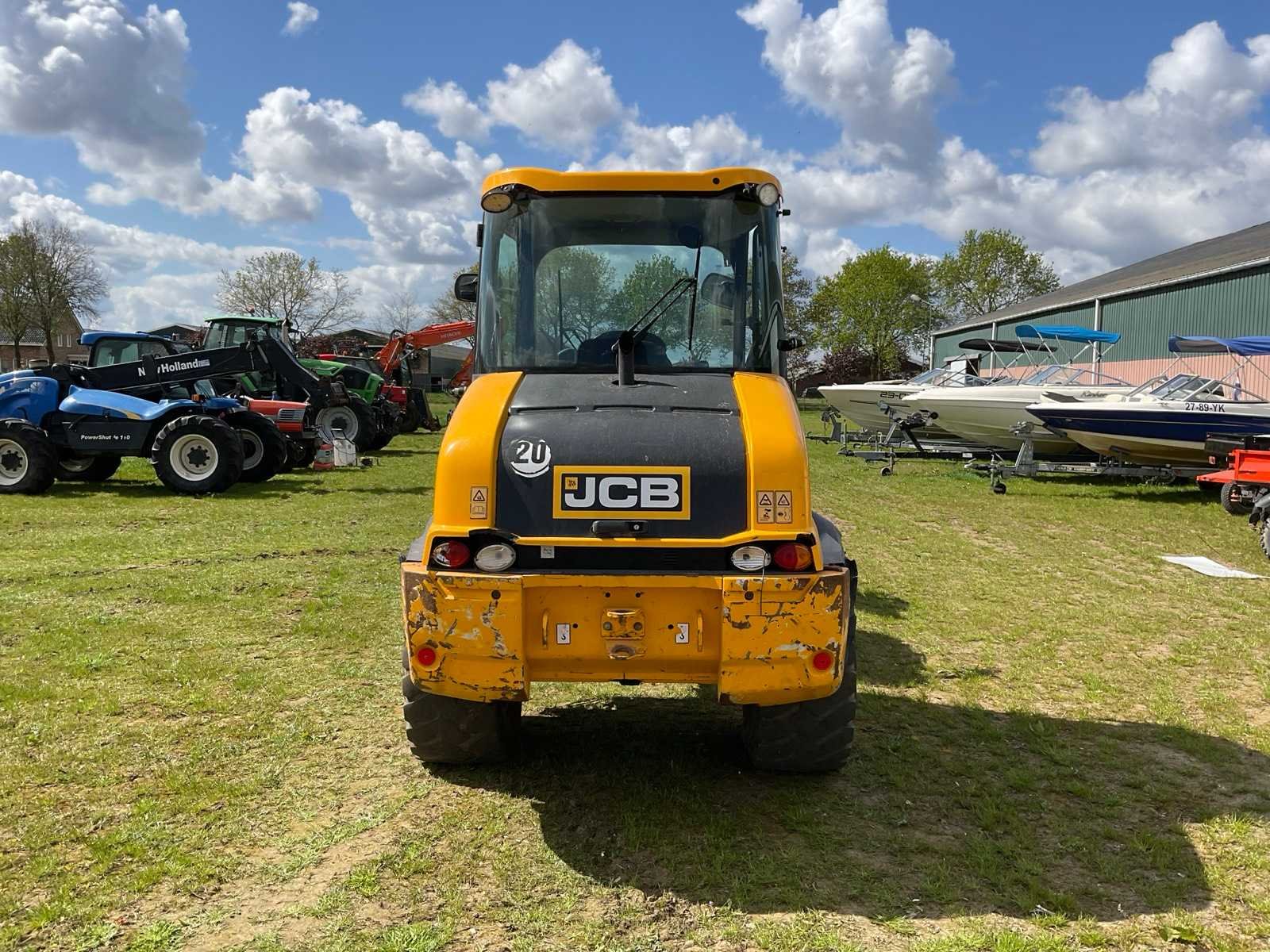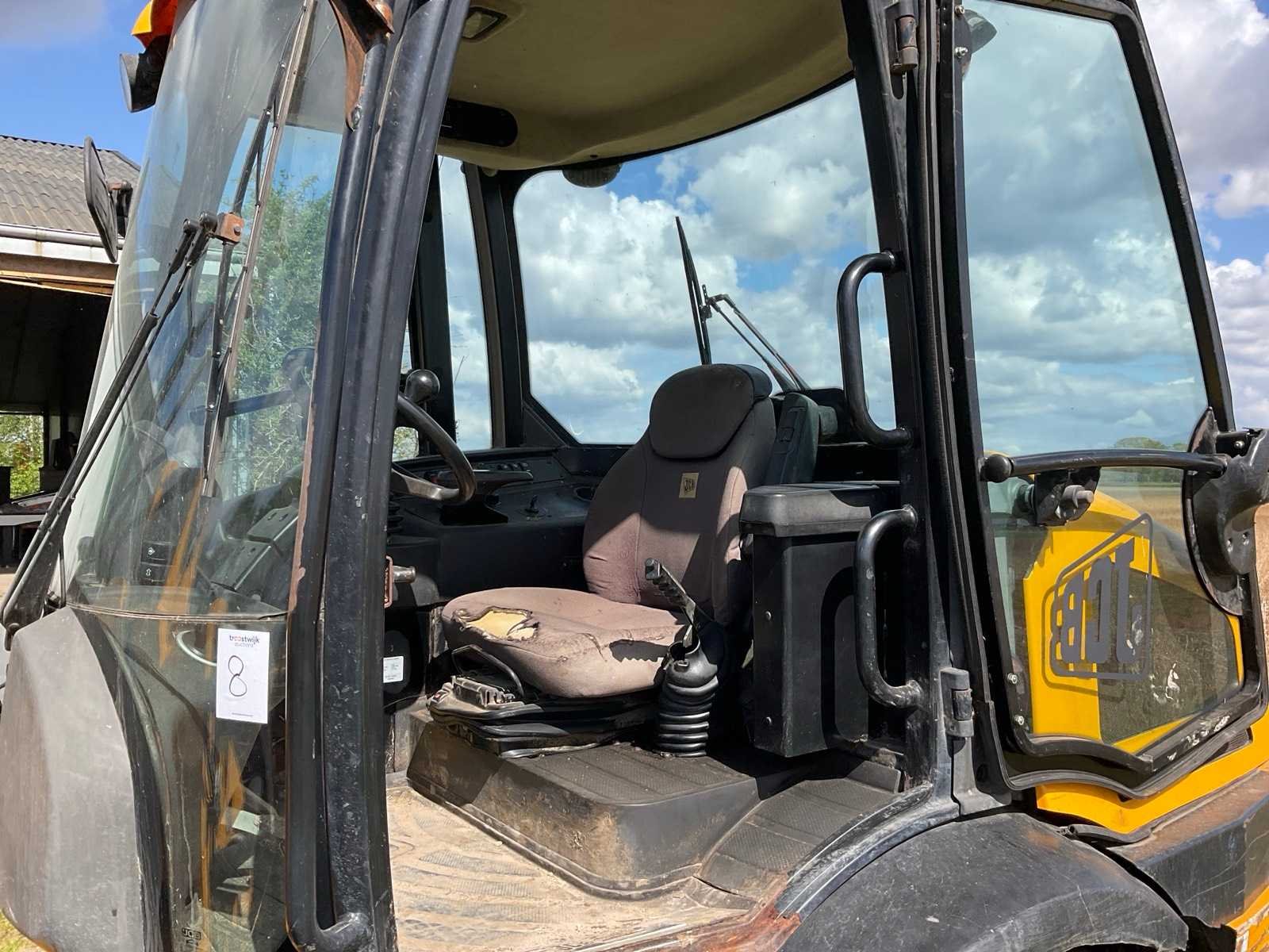 Voorzien van laadbak met klem, urenstand Merk: JCB Type: Compact Wheeled Bouwjaar: 2018 Serienummer: 938 Merk motor: Kohler Aantal cilinders: 4 Brandstof: Diesel Graafbak afm. l: 700mm Graafbak afm. b: 2000mm Graafbak afm. h: 600mm Bandenmaat: 400/70R20 Afgelezen urenstand: 9876