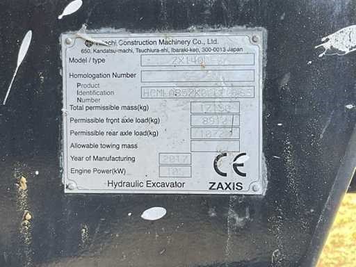 Chassisnummer: HCMLAB5ZK00070163, inclusief achteruitrijcamera, ad blue installatie uitgeschakeld , gieklengte circa 780 cm, afgelezen urenstand 9755 Hr, Lehnhoff MS10 snelkoppeling, werklampen. Merk: Hitachi Type: Zaxis 140 W-6 Bouwjaar: 2017 Aantal assen: 2 Merk motor: Hitachi Afgelezen urenstand: 9736hr