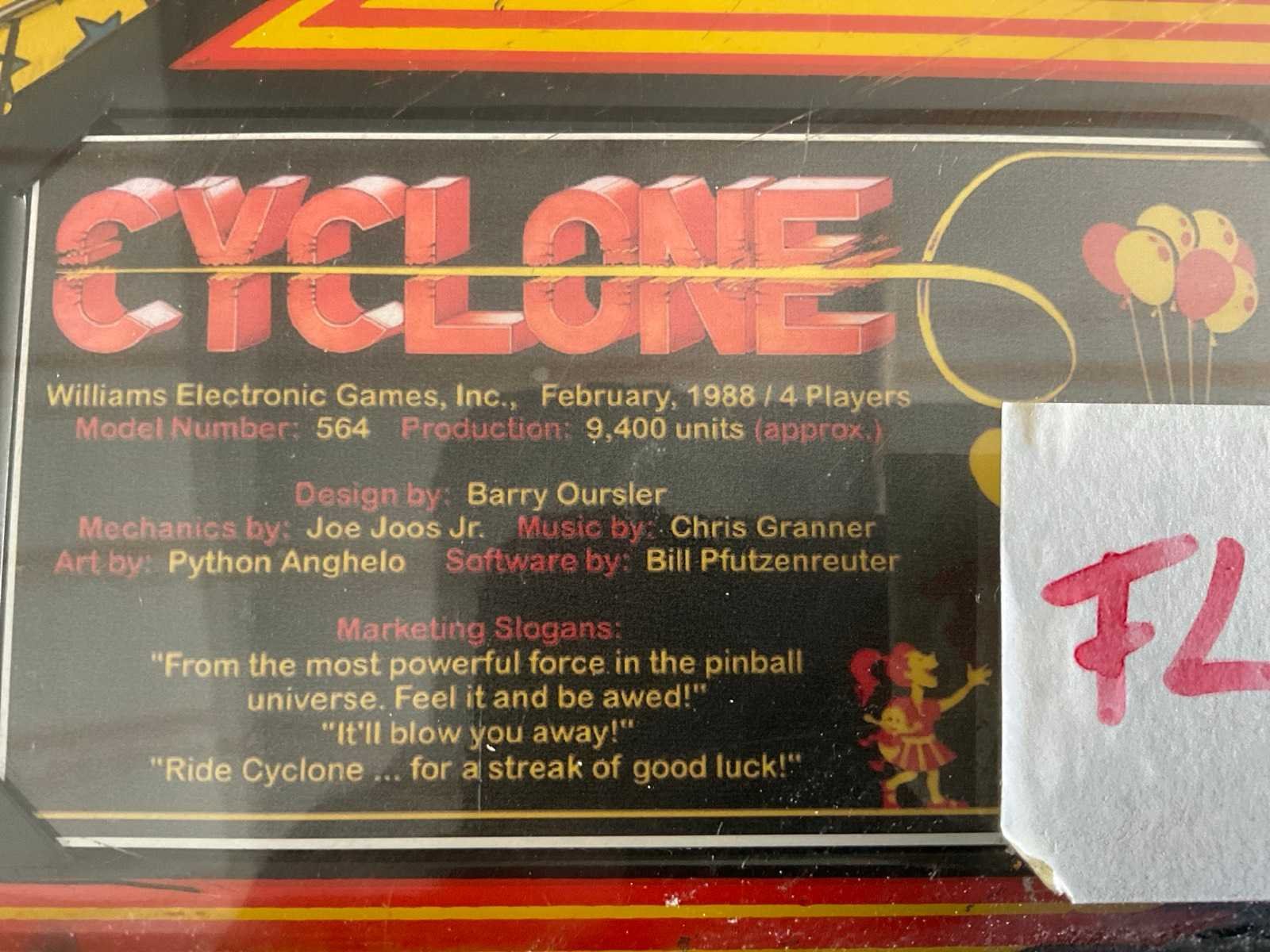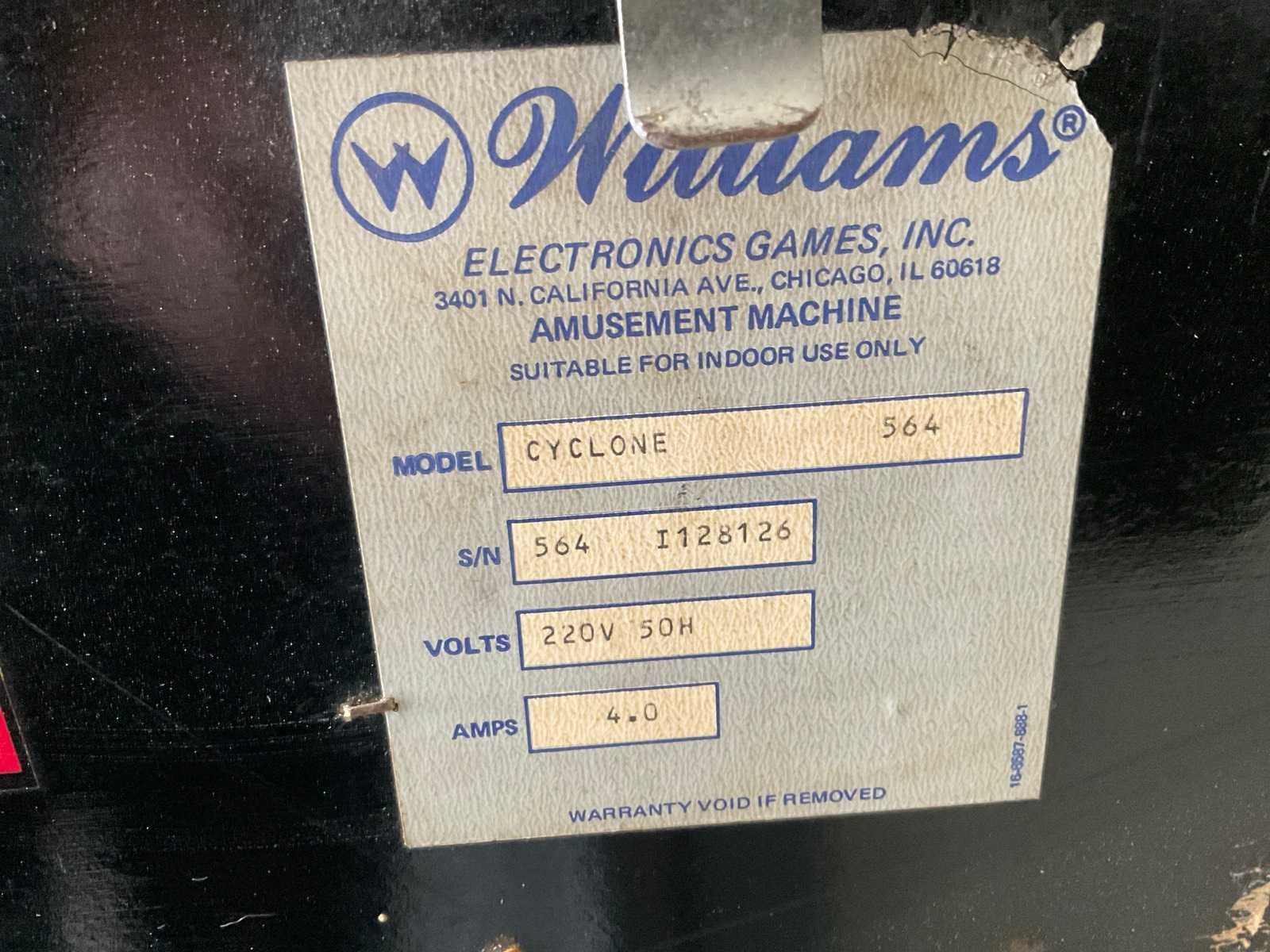 Merk: Williams Type: Cyclone 564 Serienummer: 564 I128126 Bouwjaar: 1988 Lengte: 1340mm Breedte: 730mm Hoogte: 1900mm