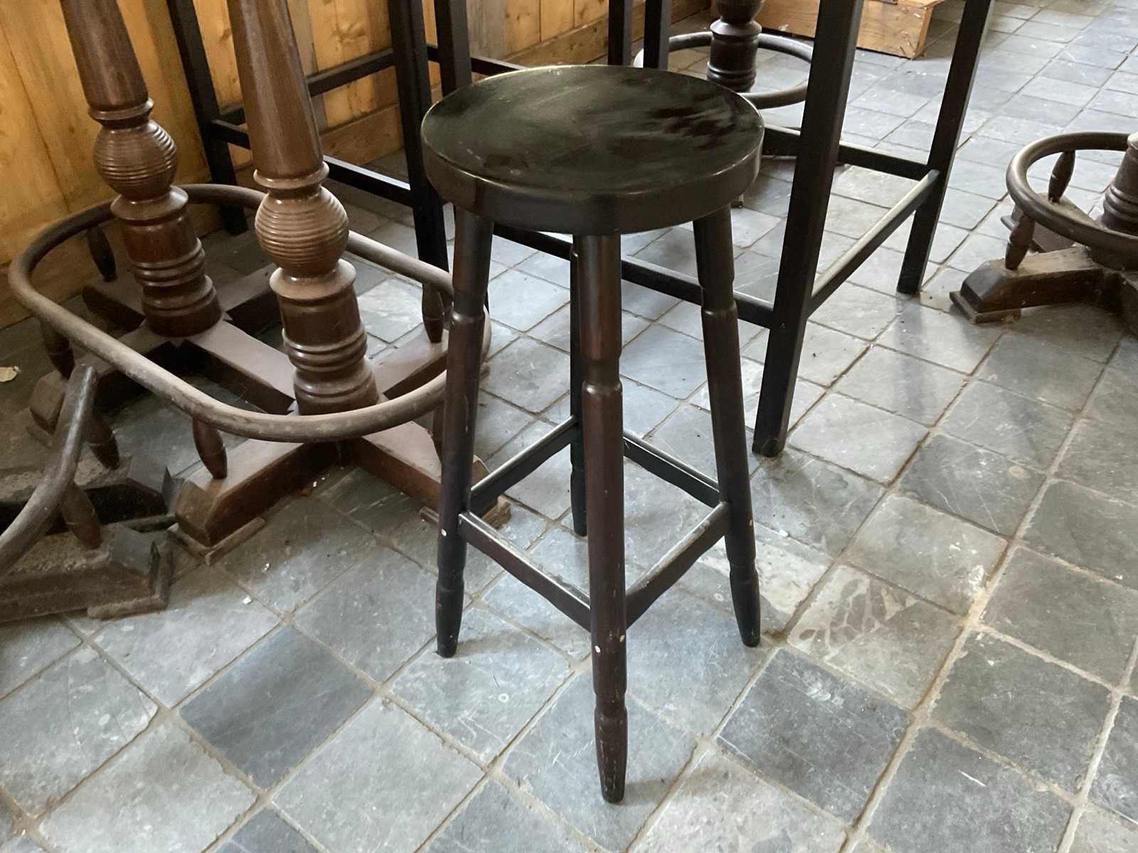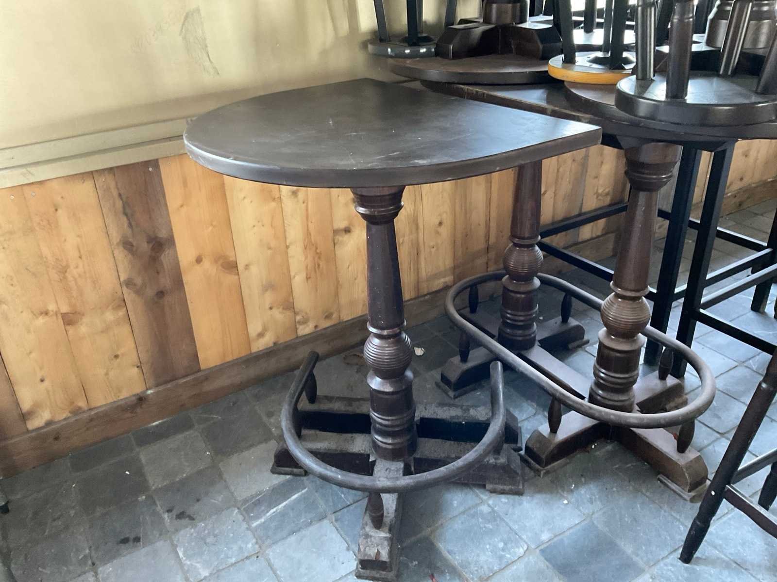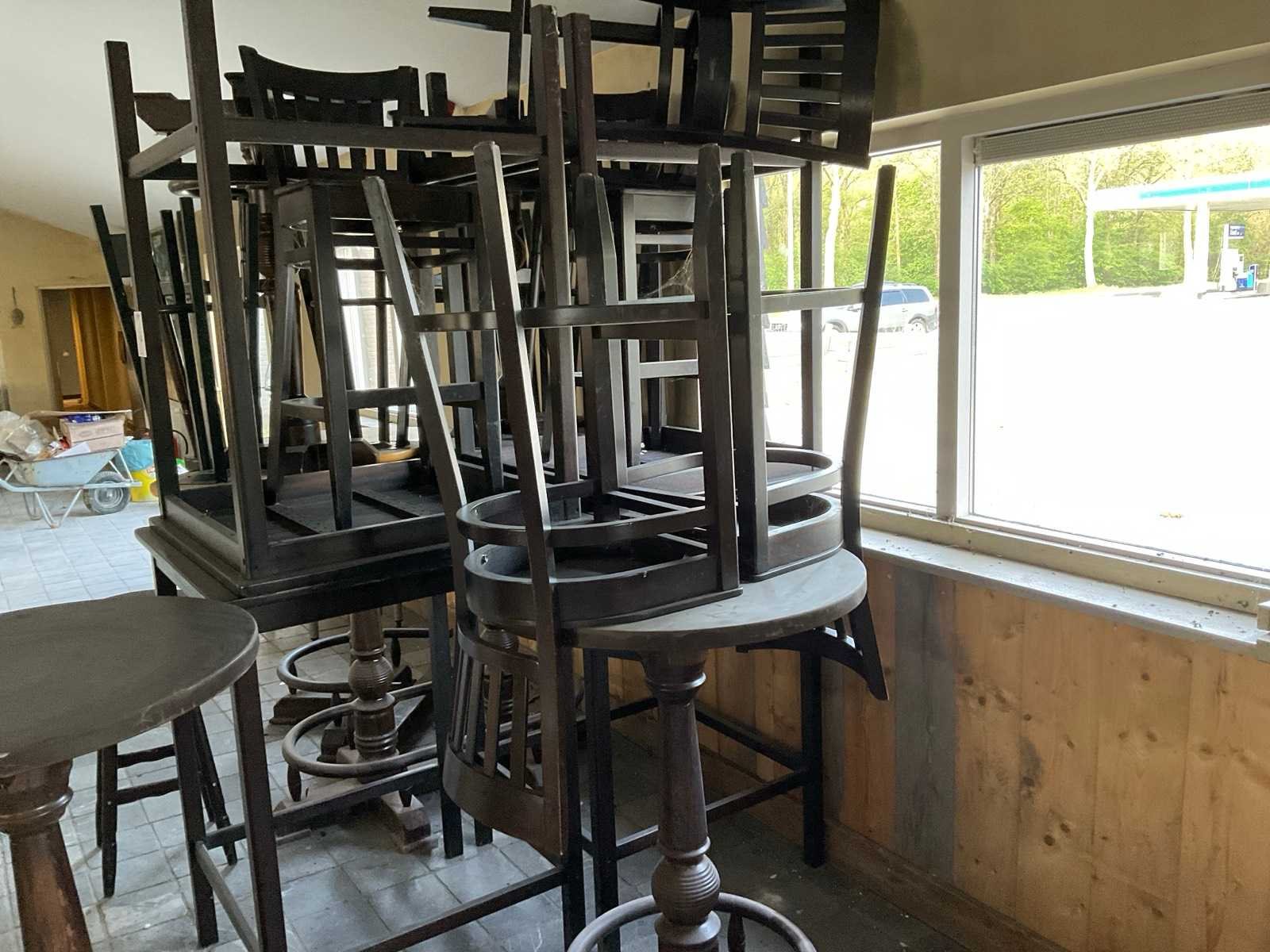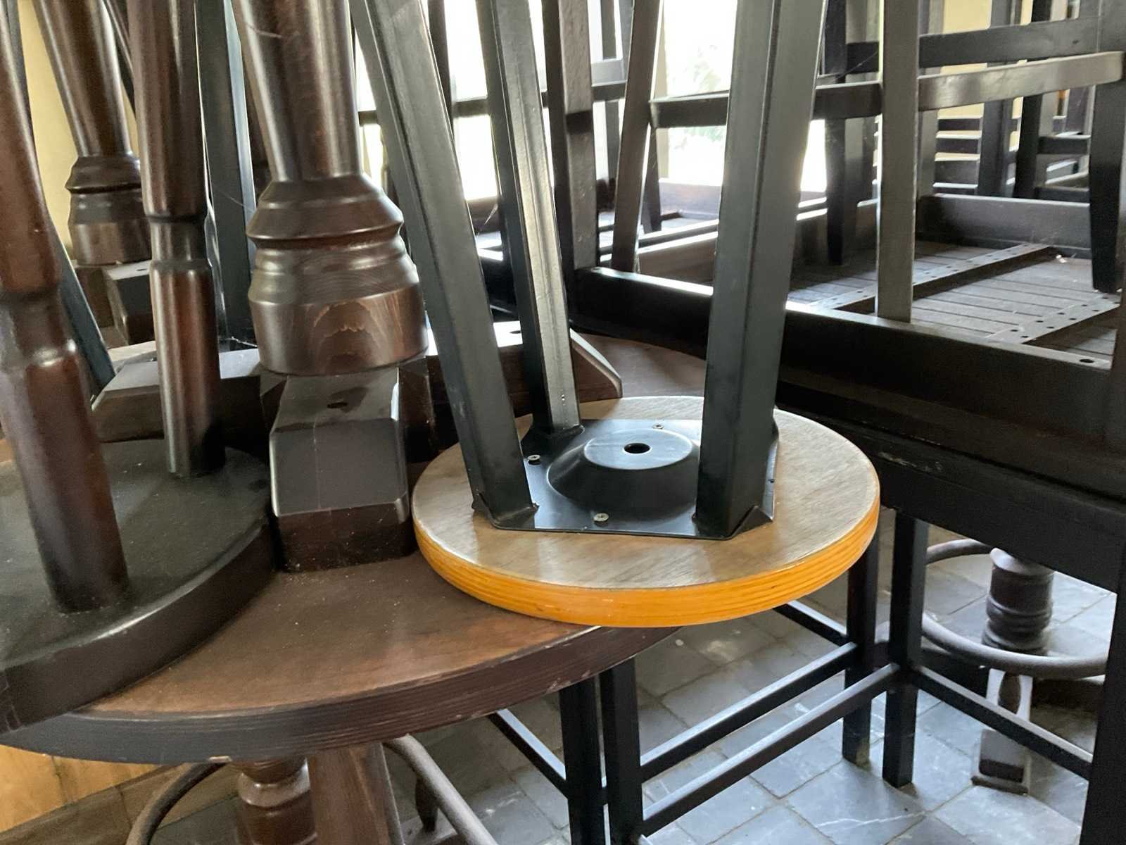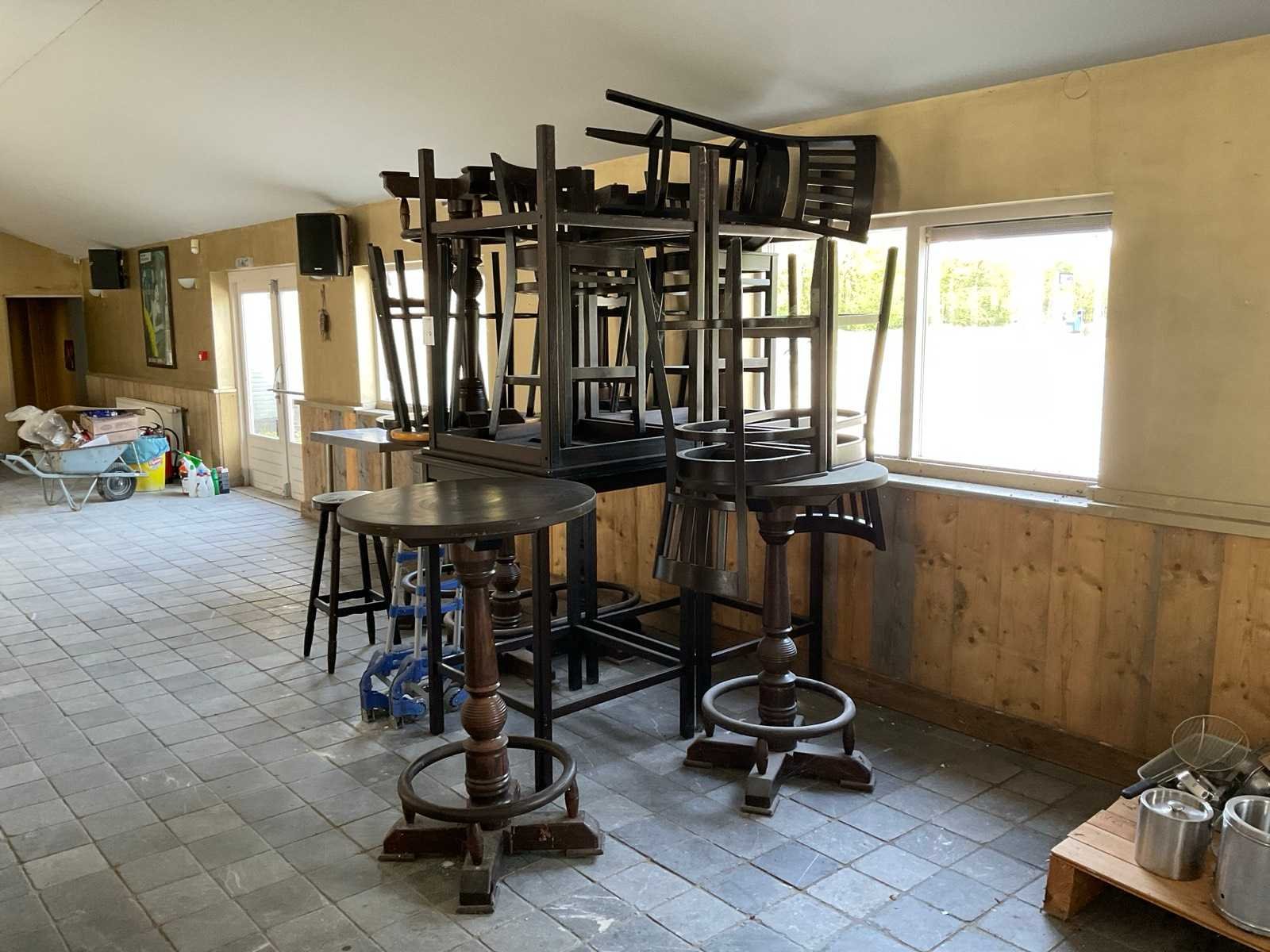Bestaande uit: 4x 75 cm diameter, 1x 140x70 cm, 1x 70 cm muurtafel, 4x 80x80 cm, 7 krukken, 3 stoelen. Hoogte: 110cm