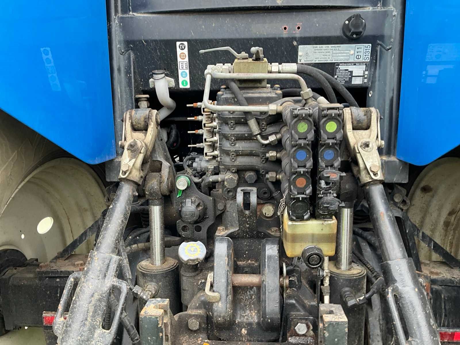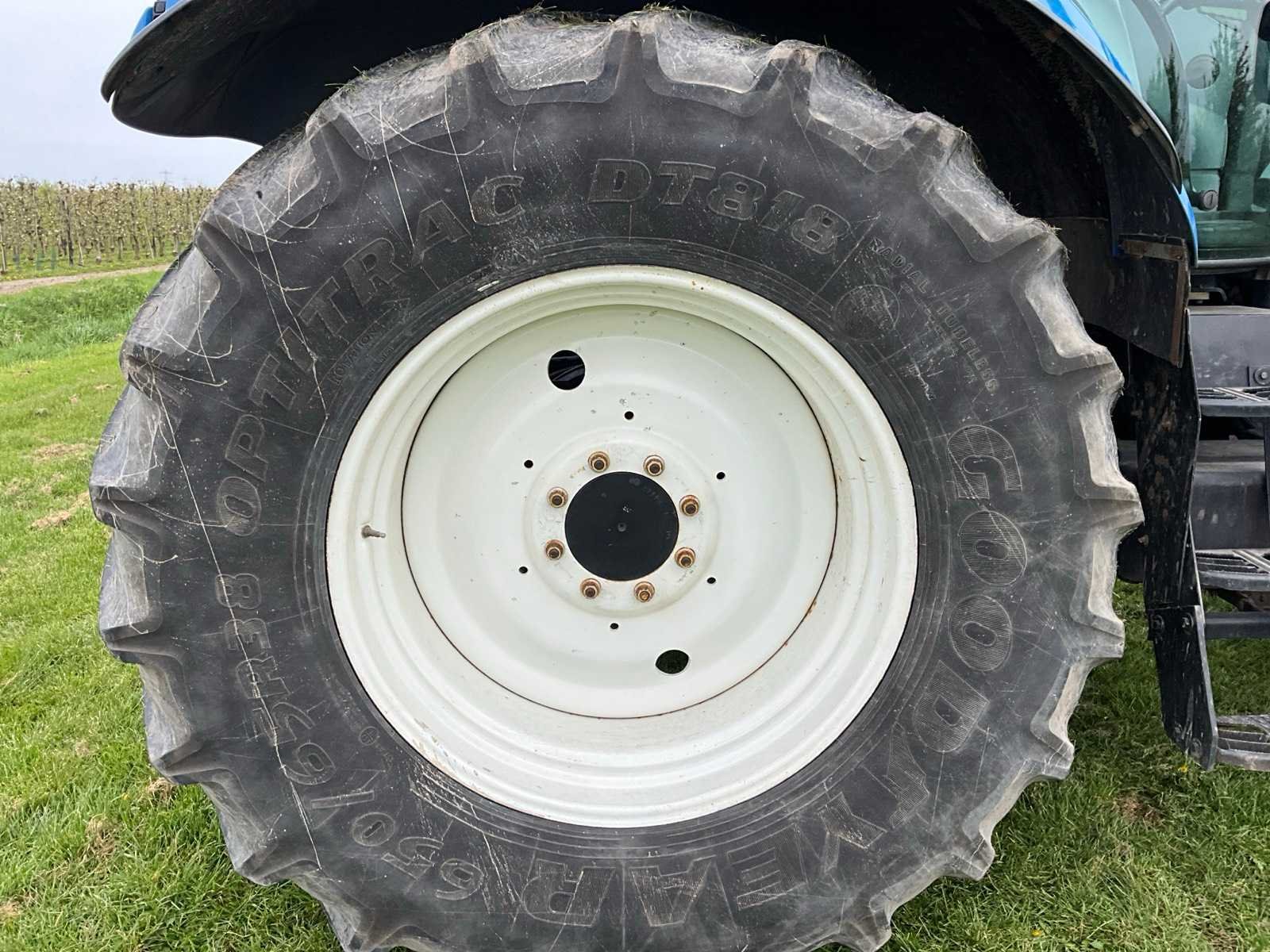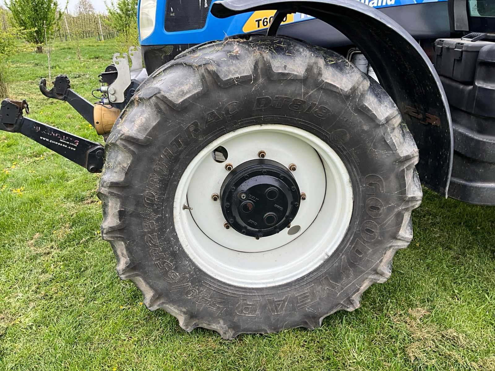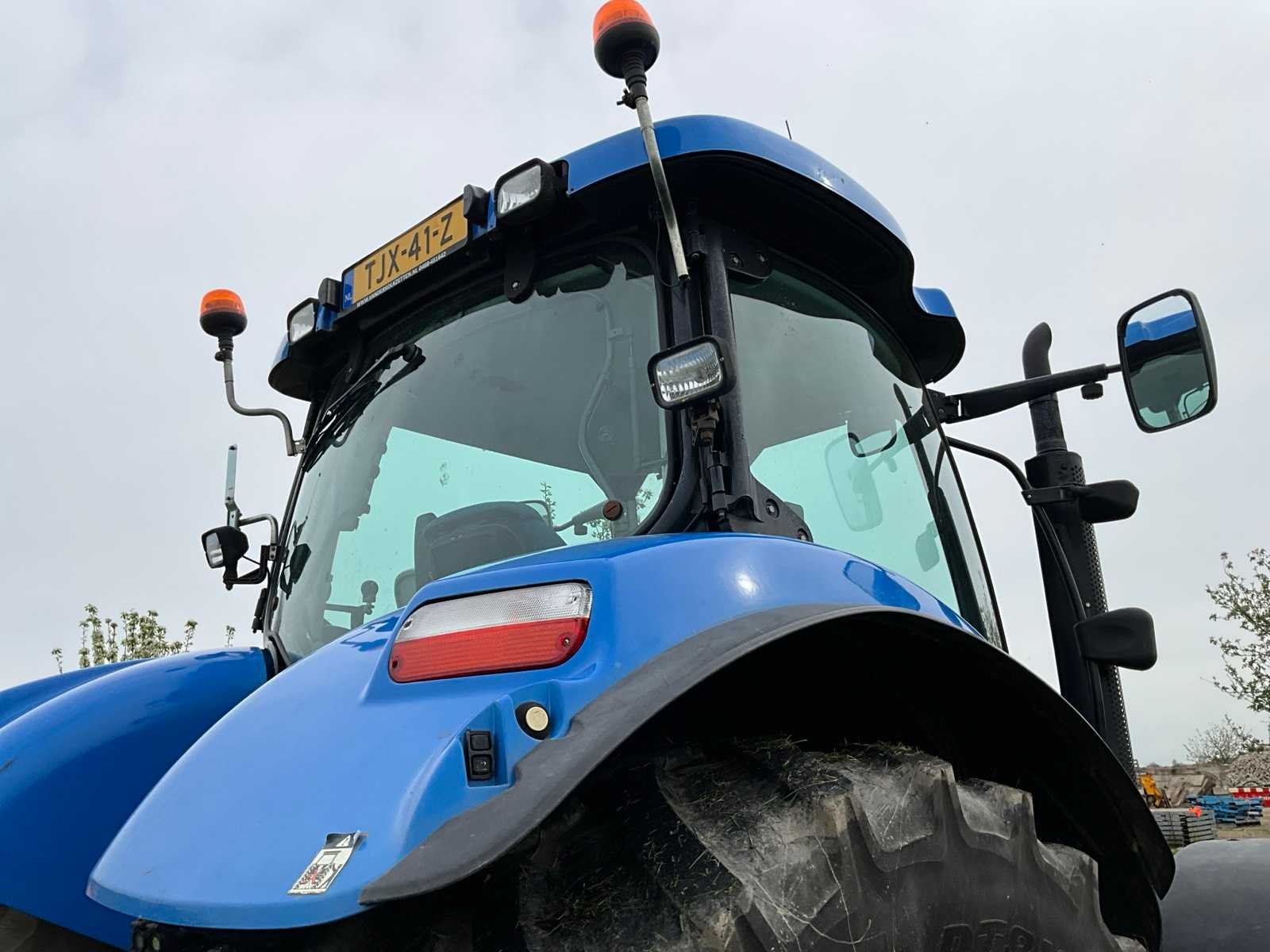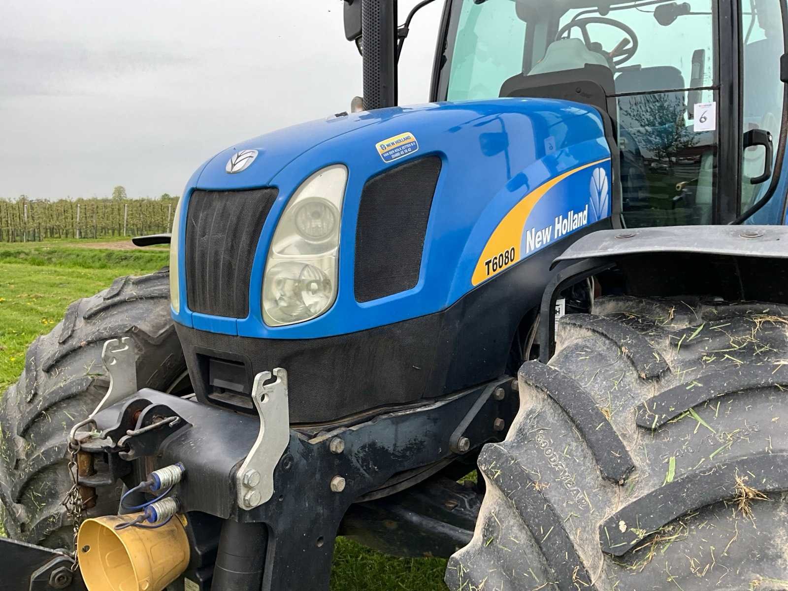 Voorzien van 540/540e/1000 rpm aftakas, geveerde cabine, hefinrichting, spatbord bediening, kipperknobbel, werkverlichting, Zuidberg fronthef, airco Merk: New Holland Type: T6080 Bouwjaar: 2008 Serienummer: Z8BK14580 Kenteken: TJX-41-Z Motorvermogen (kW): 118kW Afgelezen urenstand: 6408 Versnellingsbaktype: powershift (range command) Aantal hydraulische ventielen achter: 4 Bandenmaat voor: 540/65R28 Bandenmaat achter: 650/65R38 Fronthefinrichting: true Frontaftakas: true Cabine: true Luchtgeveerde stoel: true Totale afmeting L: 5000mm Totale afmeting Breedte: 2550mm Totale afmeting Hoogte: 3100mm Datum eerste toelating: 2008-06-30