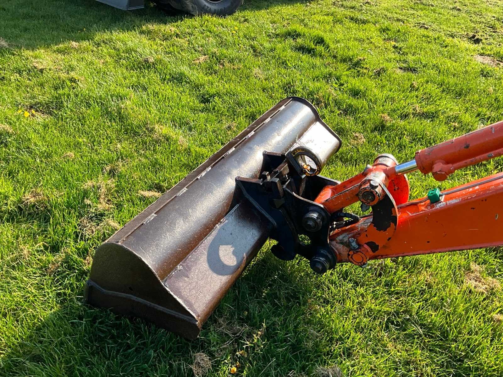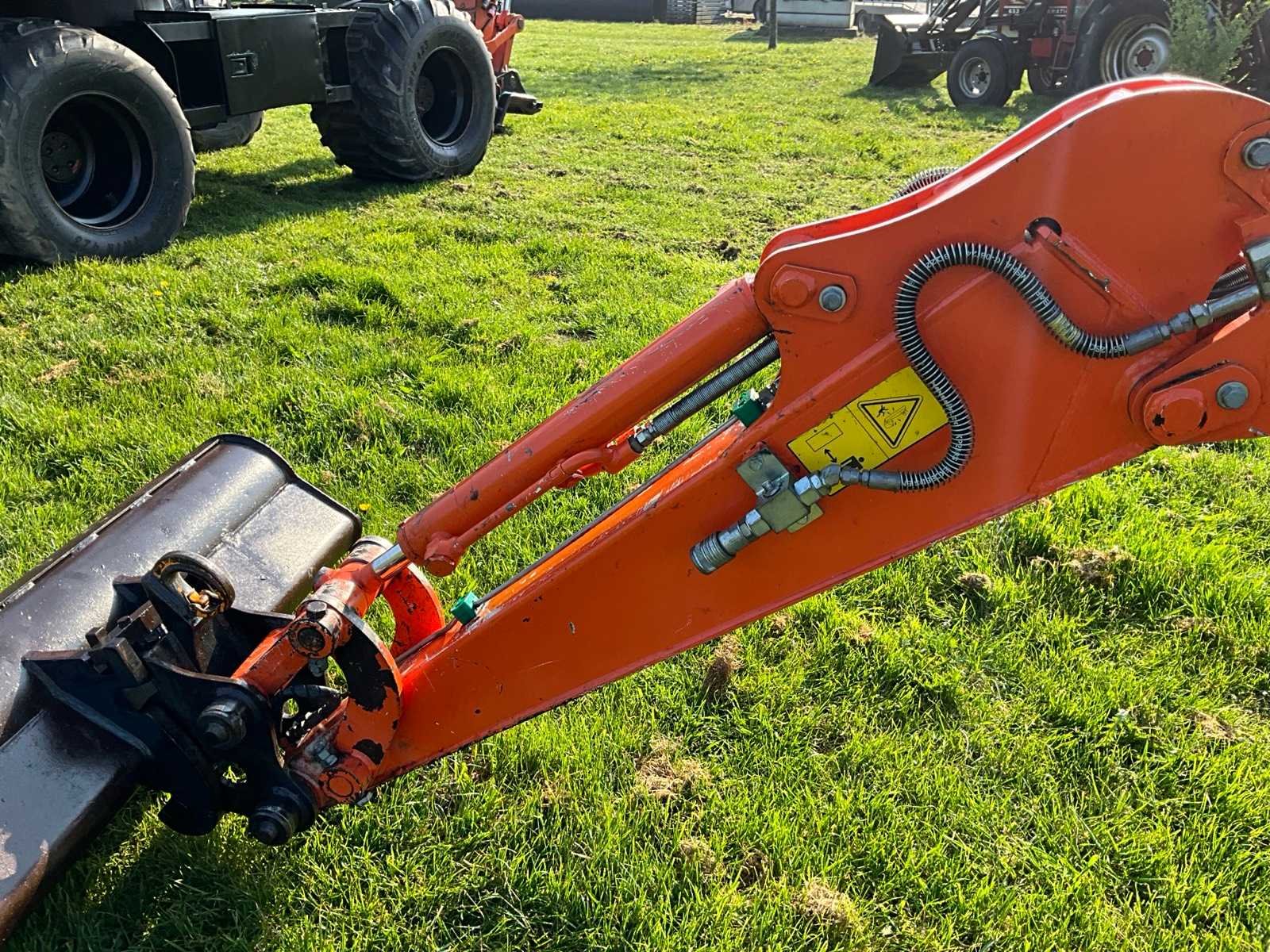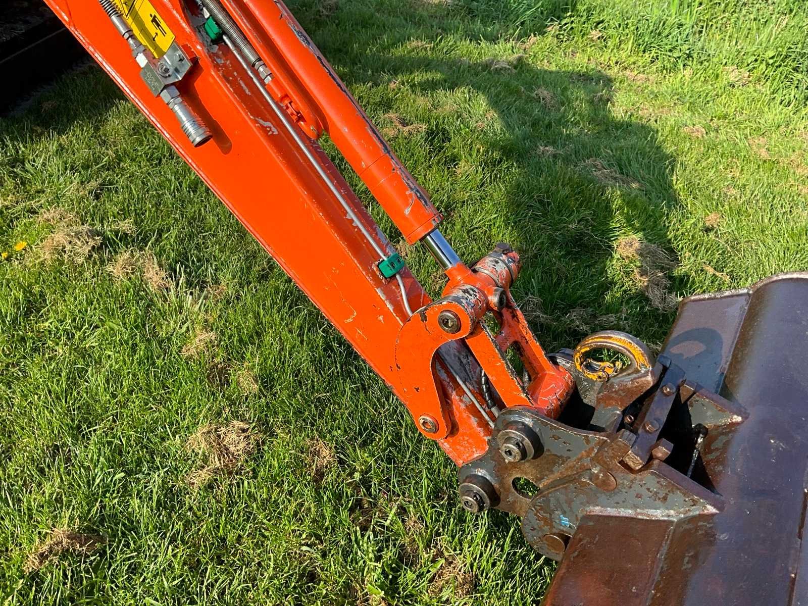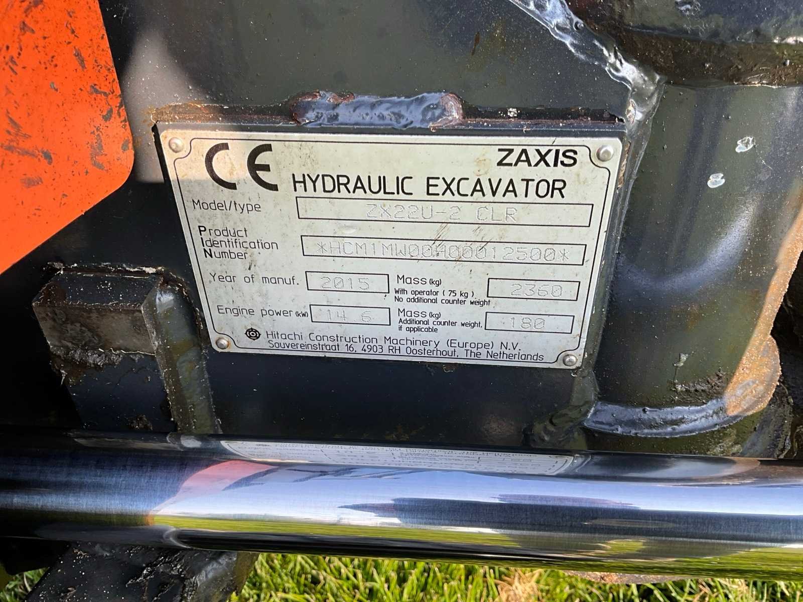 Voorzien van verstek giek, CW05 hydraulische snelwissel, schuifblad, extra functie op lepelsteel Merk: Hitachi Type: Zaxis 22U Bouwjaar: 2015 Serienummer: HCM1MW00H00012500 Motorvermogen (kW): 14.6kW Aantal cilinders: 3 Brandstof: Diesel Bedrijfsgewicht: 2360kg Gieklengte: 3000mm Inclusief graafbak: Yes Graafbak afm. b: 1180mm Rups breedte: 250mm Afgelezen urenstand: 4020 Totale afmeting Breedte: 1480mm Totale afmeting Hoogte: 2500mm