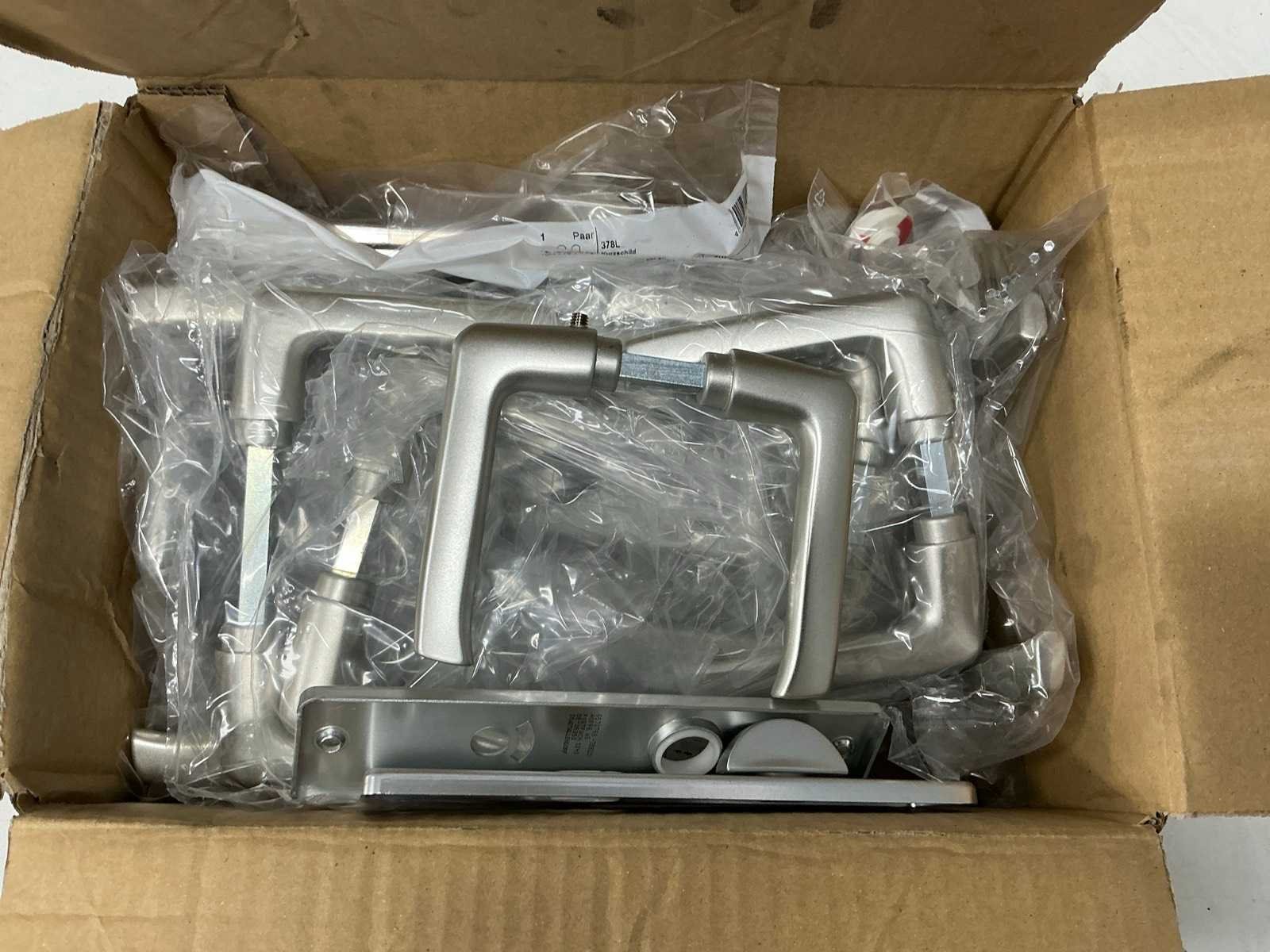 Compleet setje deurbeslag voor badkamer of toilet Merk: Hoppe - Buva Product type: 378L Kleur: Zilver Materiaal: Aluminium