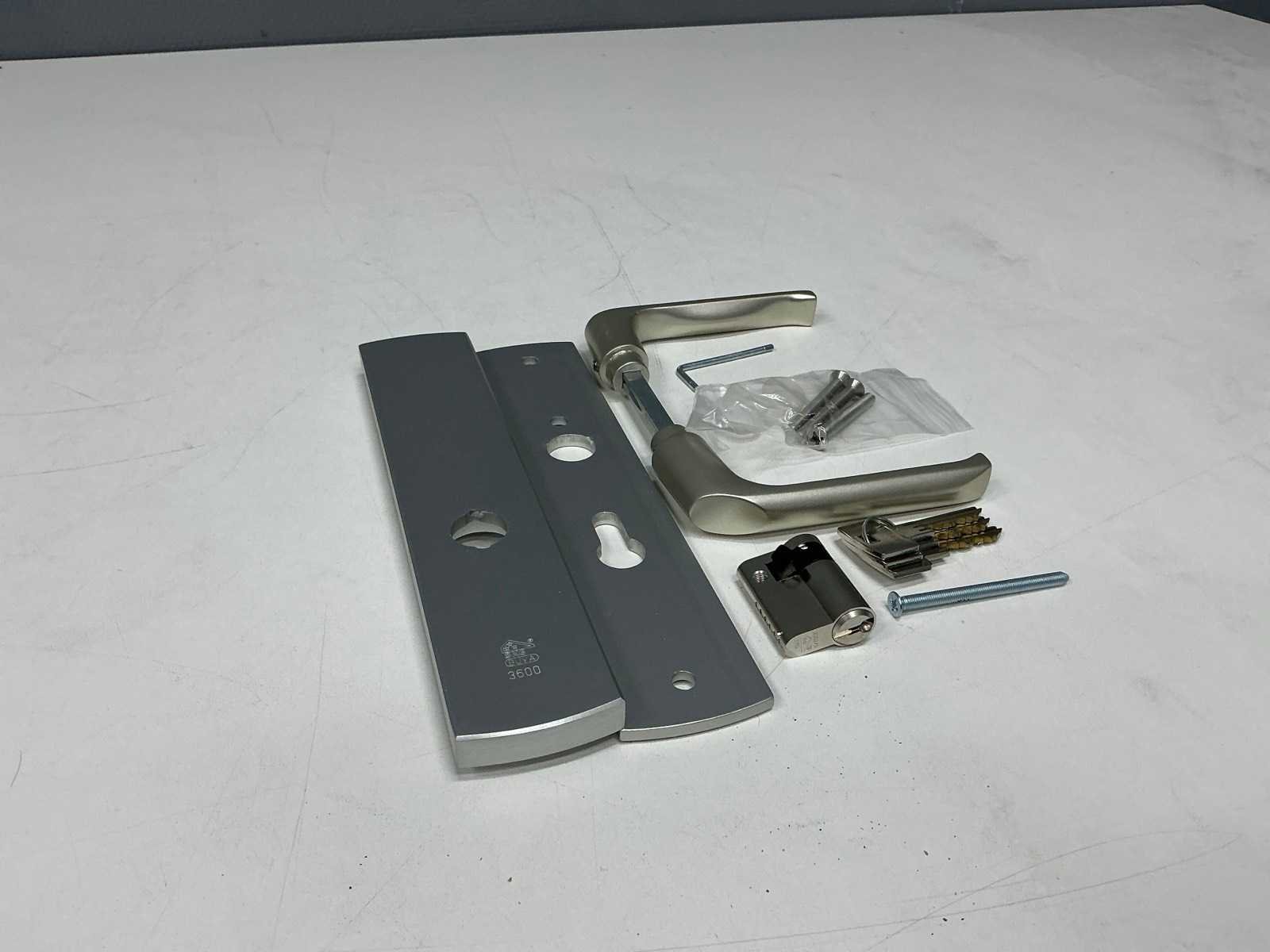 Compleet set met deurschild,klink,slot Merk: Buva Model: 1736009 Product type: 3600SEN Kleur: Zilver