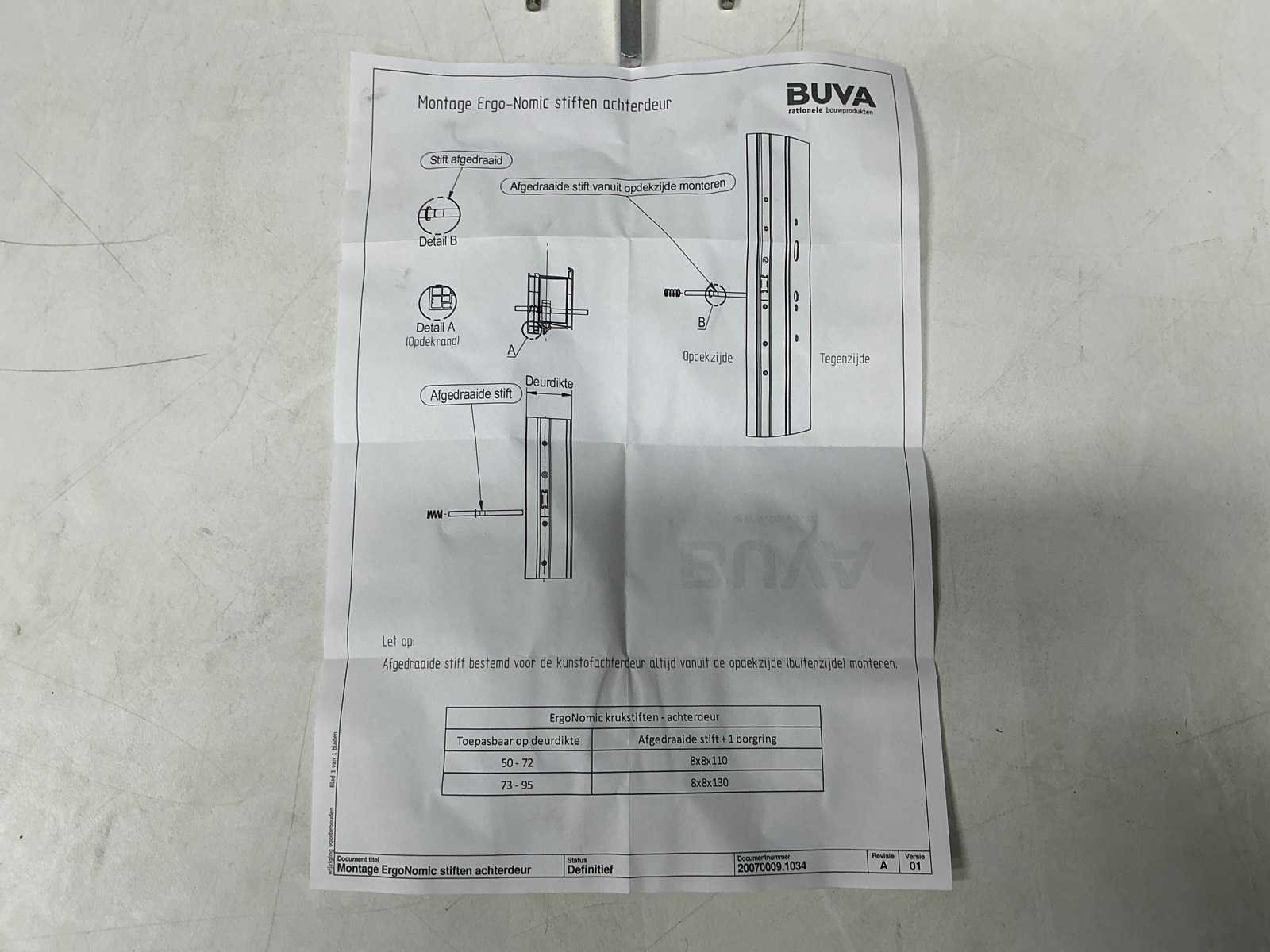 Montage ergo-nomic stiften achterdeur Merk: Buva