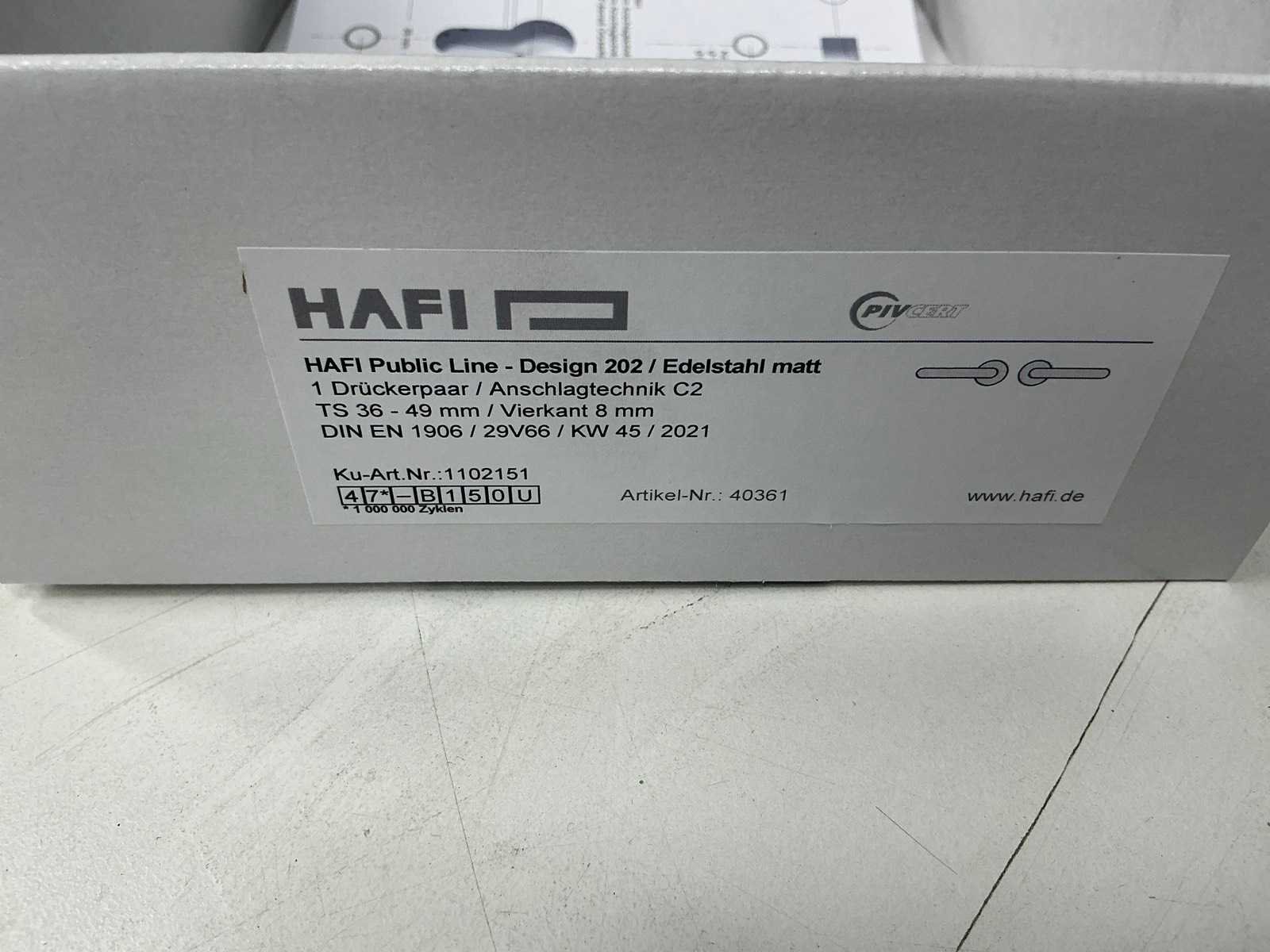 Alleen een deurklink Merk: Hafi Model: Public line Product type: Design 202 Kleur: Staal mat
